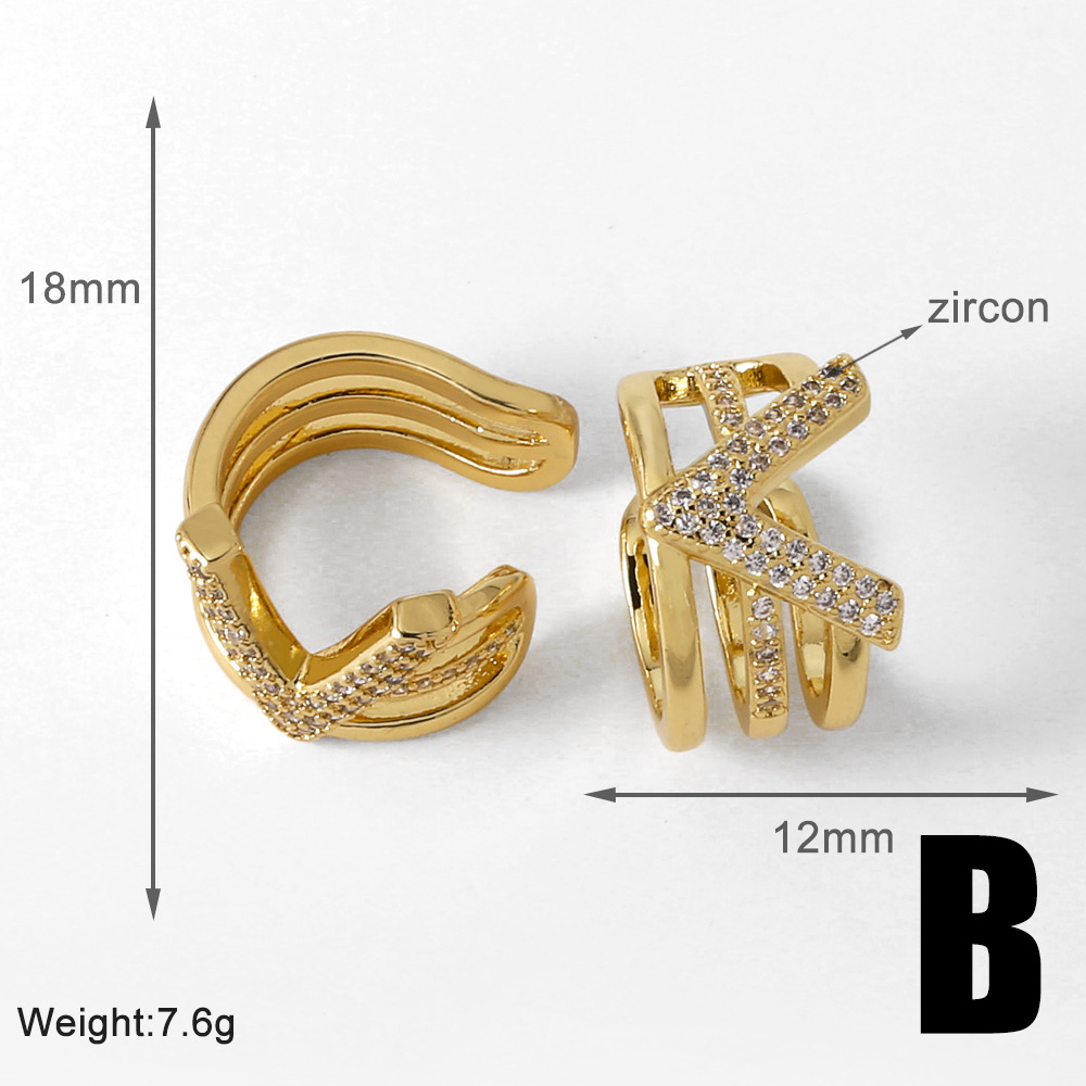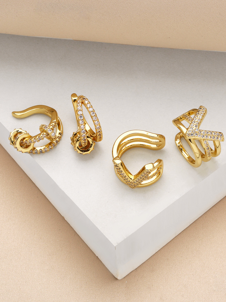 European and American hot-selling letter V ear clip high-end inlaid zircon copper plated real gold earrings earrings for women erz27