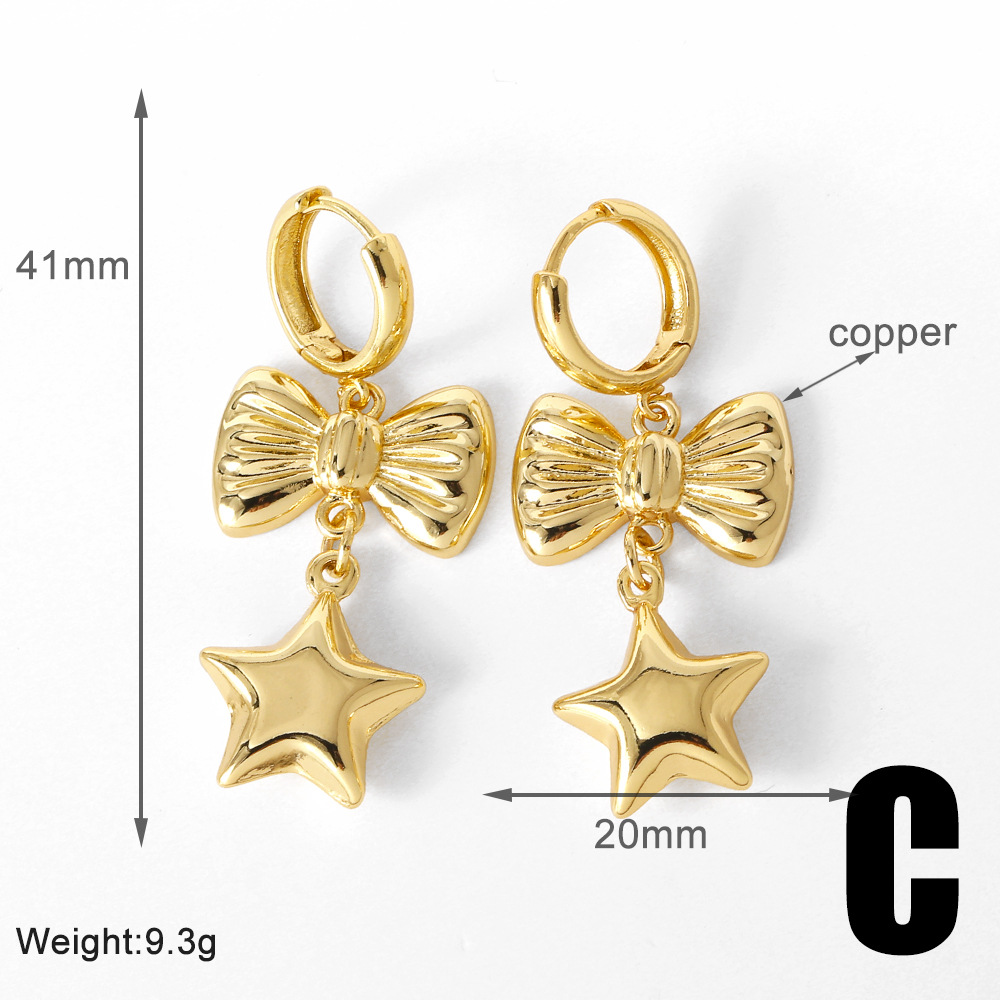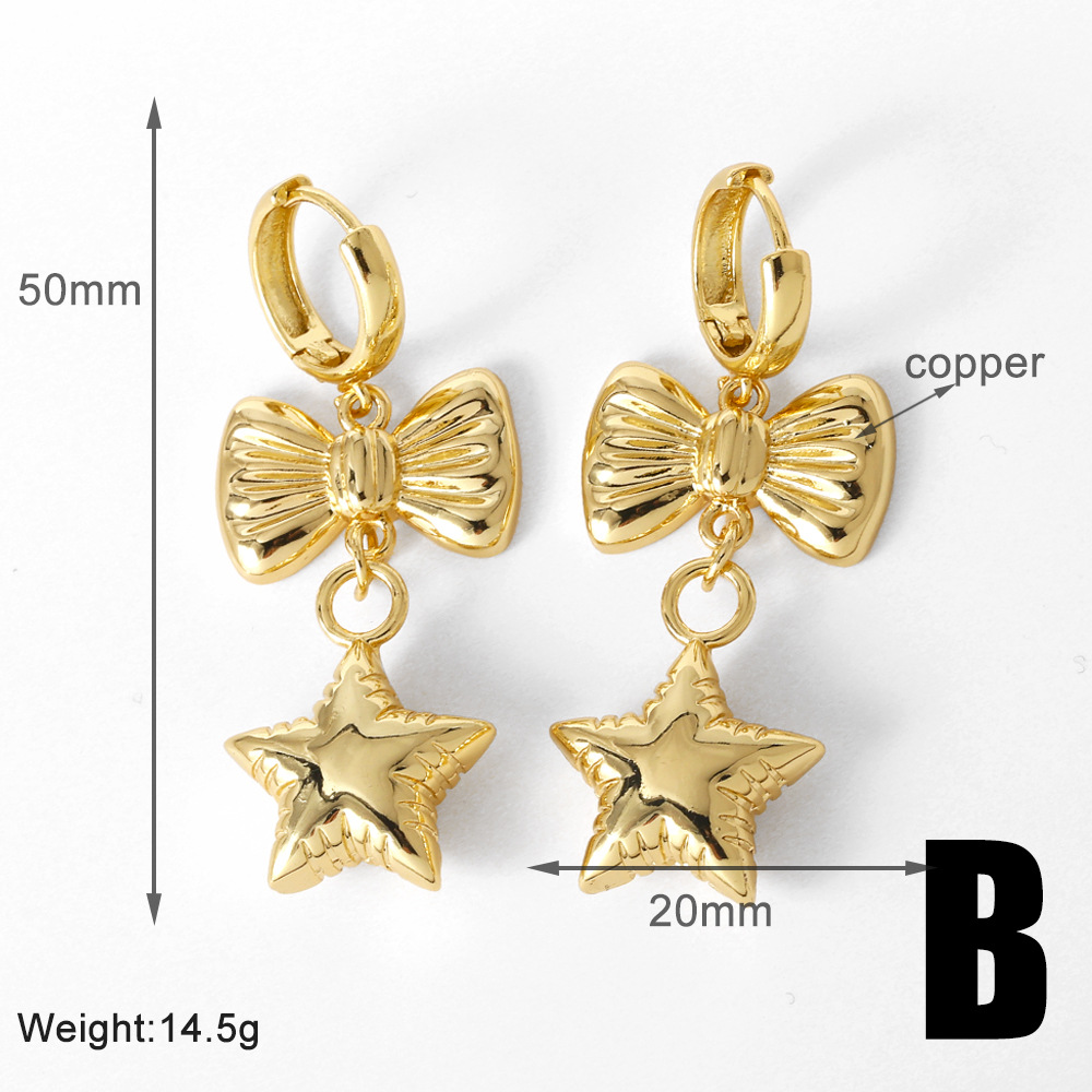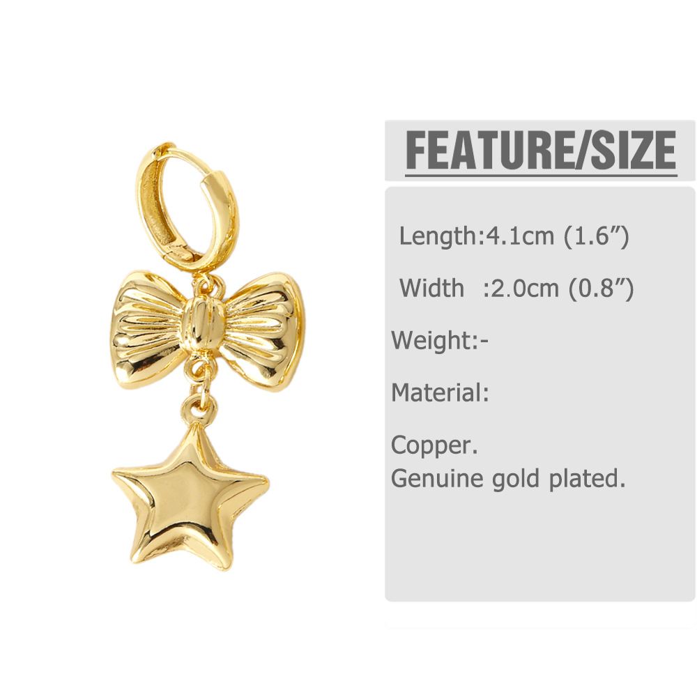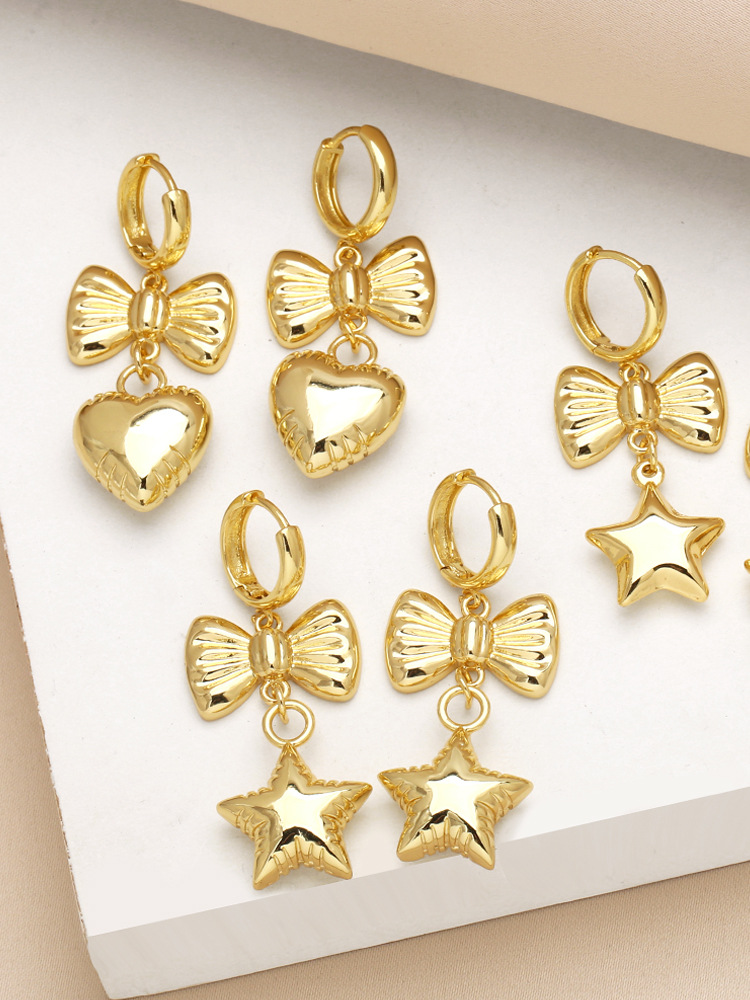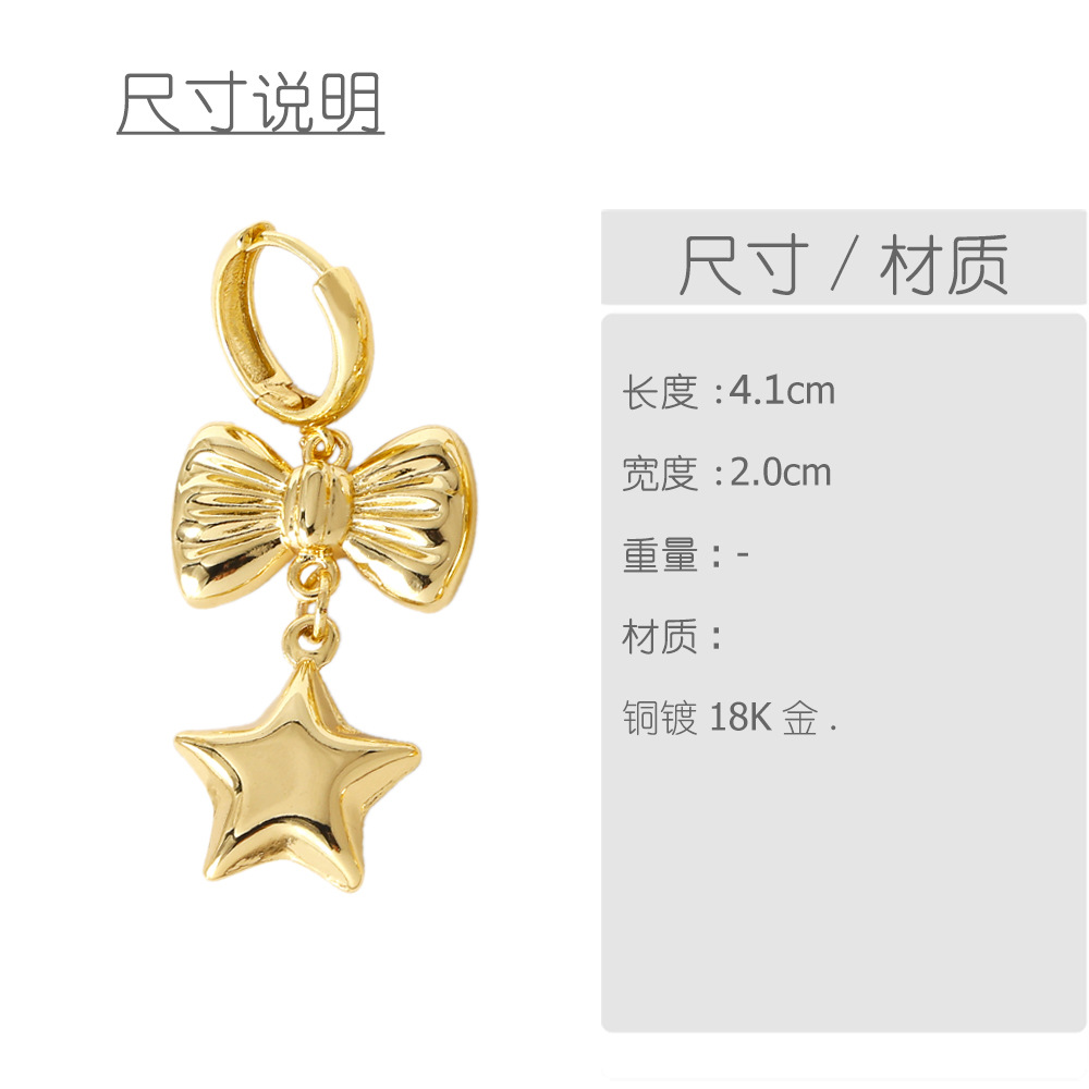 European and American hot selling love earrings women's gold-plated glossy bow five-pointed star pendant earrings ert83
