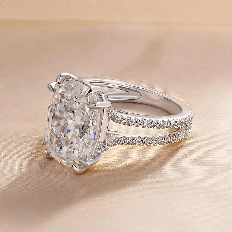 Classic four-claw imitation zircon micro-inlaid ring women's double row two-color twist arm ring engagement wedding ring women