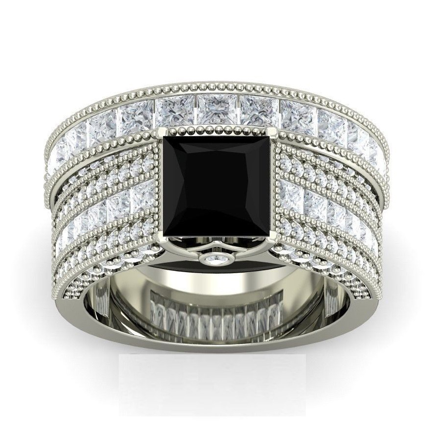 European and American hot-selling luxury women's black square diamond zircon ring silver-plated couple ring jewelry wholesale