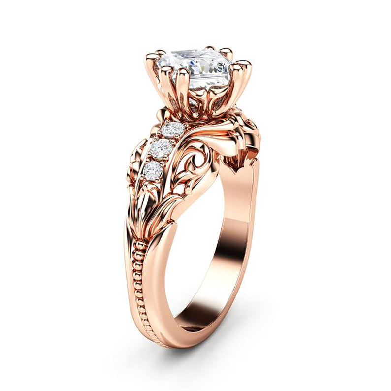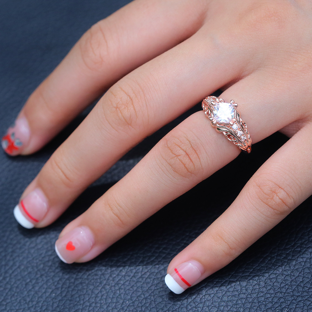 European and American hot selling new classic hollow carved rose gold claw inlaid zircon ring ring fashion style