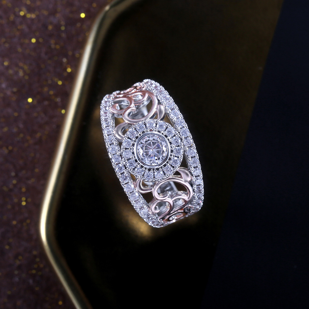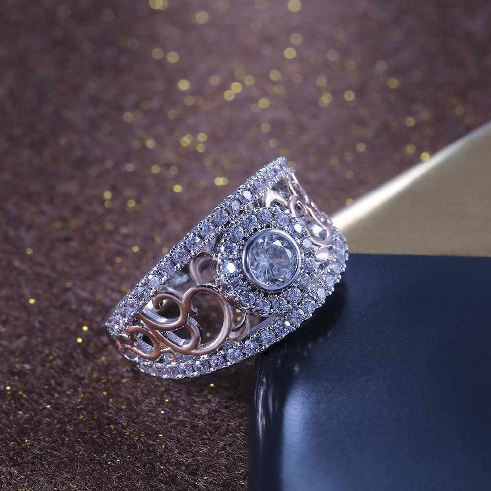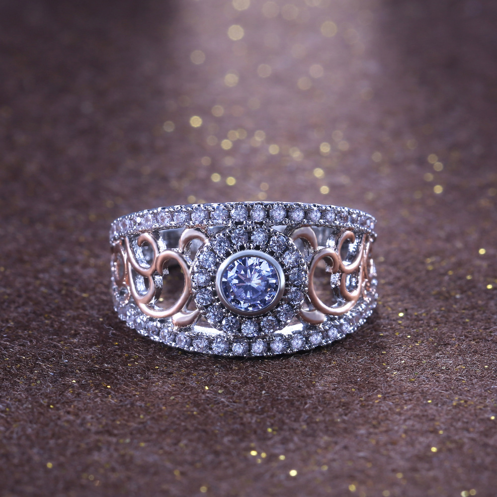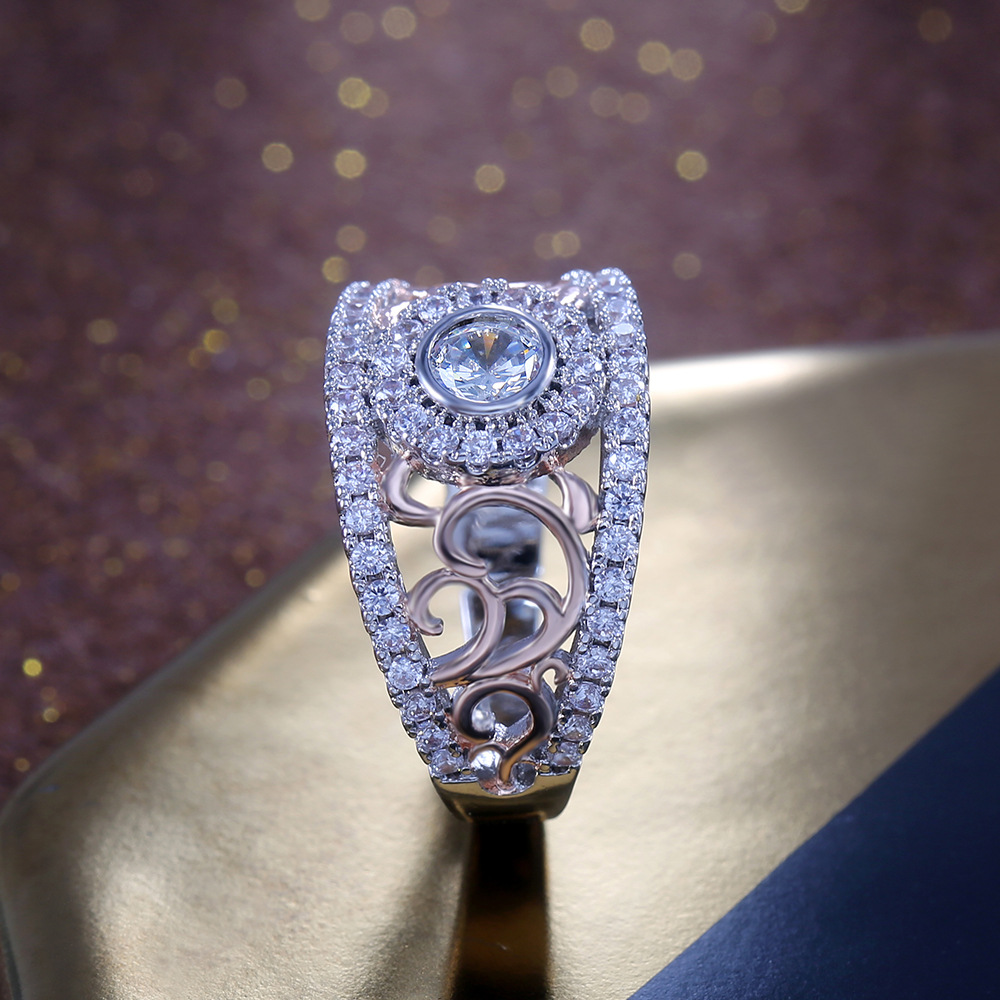 European and American hot selling new classical style hollow inlaid round zircon diamond ring female engagement wedding party ring