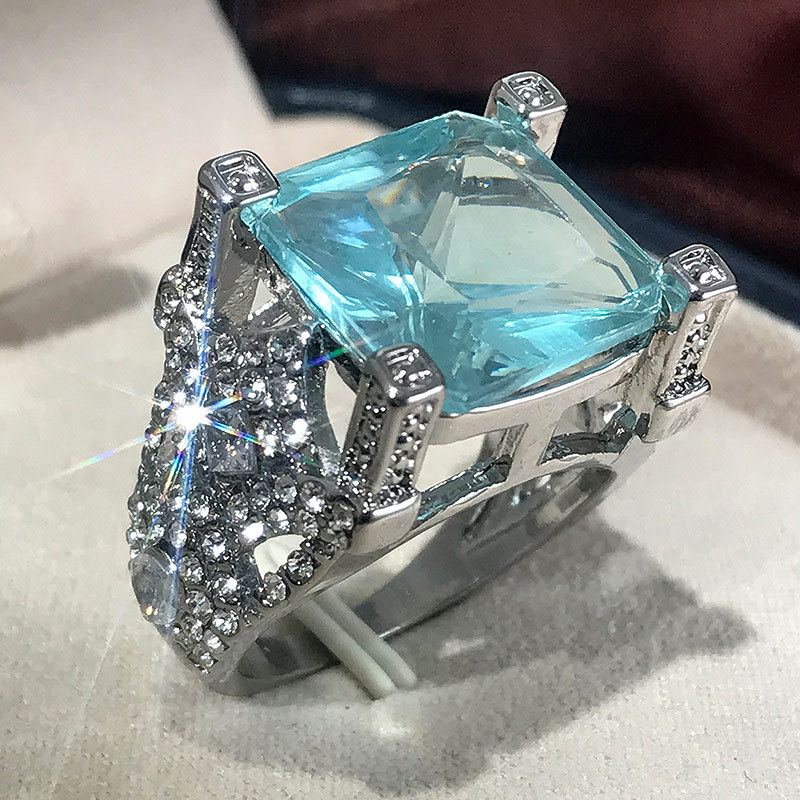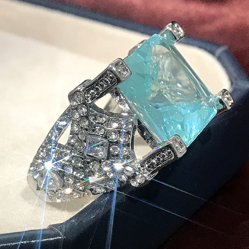 Hot selling new princess square ring European and American hot style inlaid zircon women's jewelry engagement proposal ring