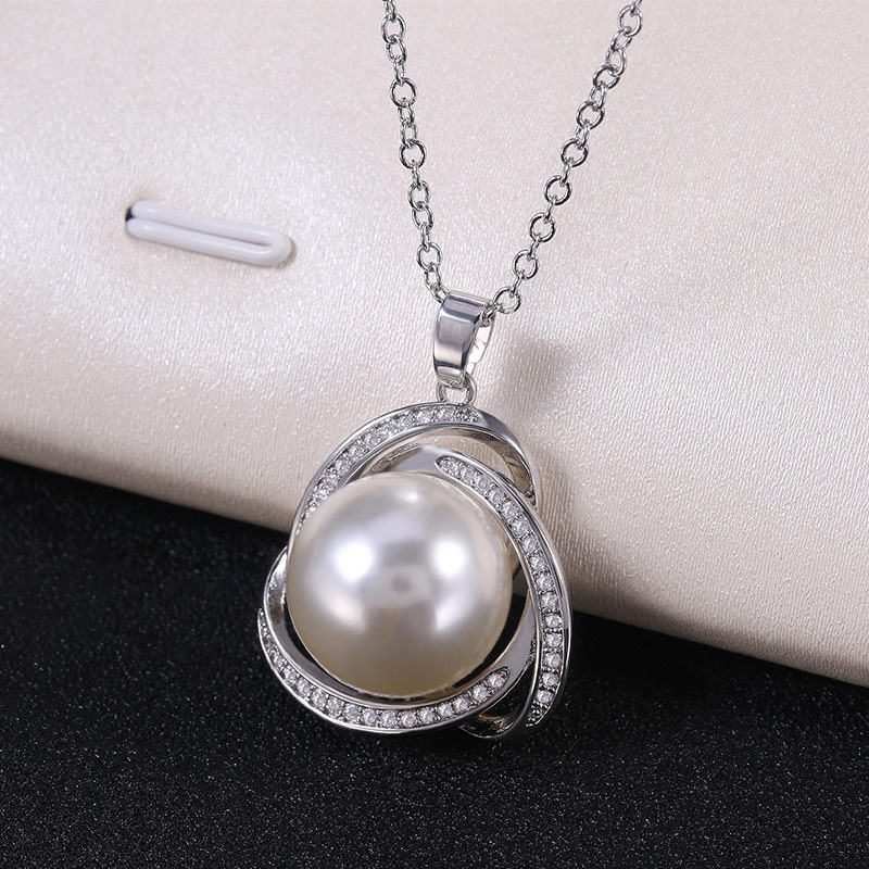 European and American hot selling new fashion simple artificial pearl flower necklace women's zircon jewelry spot