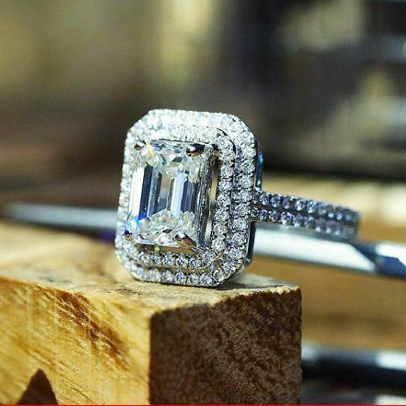 European and American hot selling new imitation rectangular zircon engagement ring female romantic Valentine's Day proposal ring
