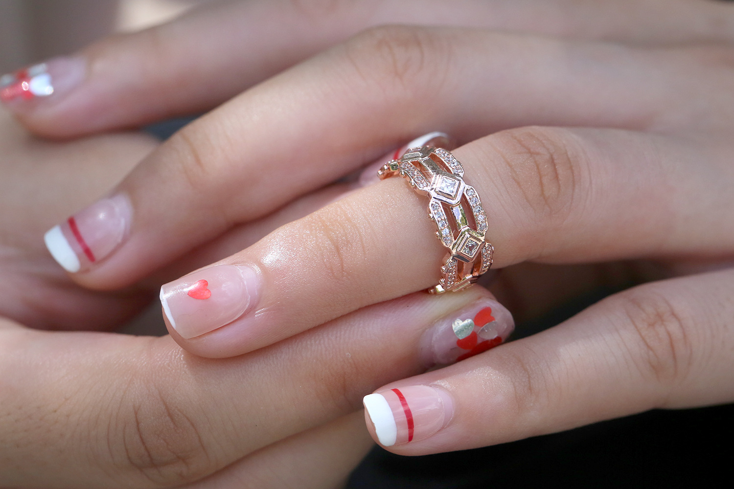 European and American luxury design ring fashionable temperament horse eye zircon ring multi-layer hollow design index finger ring