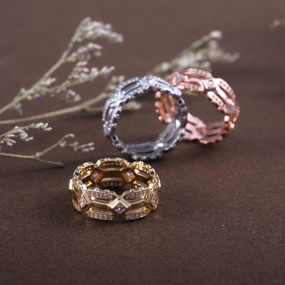 New zircon ring hollow cross four claws fashion design proposal wedding ring birthday gift ring