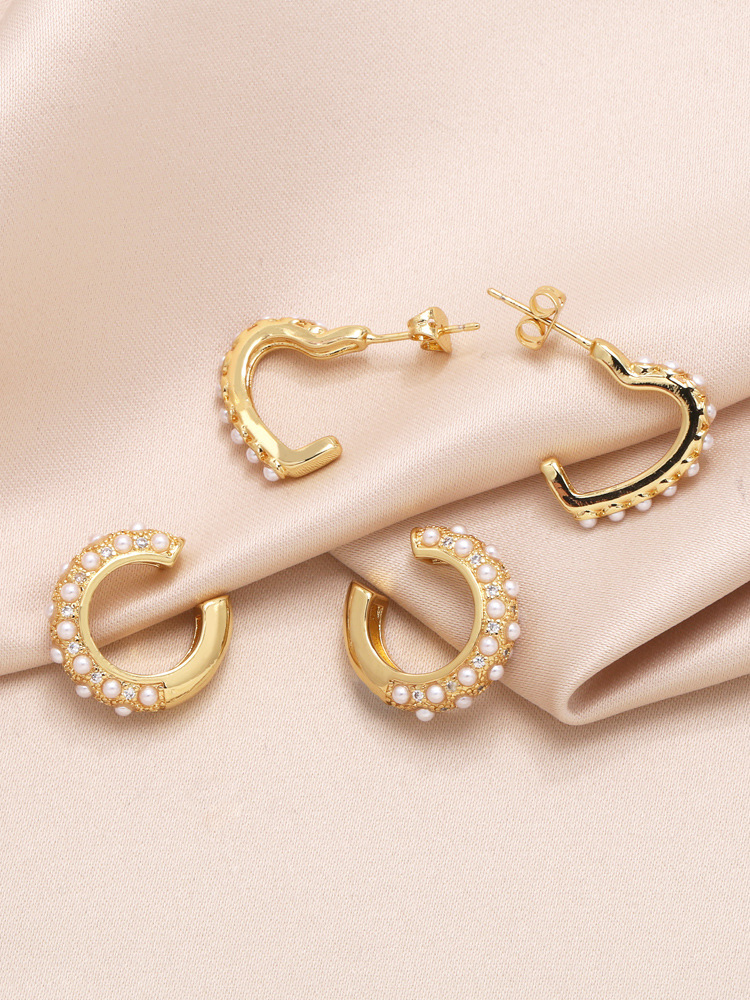 European and American hot-selling pearl heart earrings for women, versatile and high-end gold-plated earrings, ear studs erw02