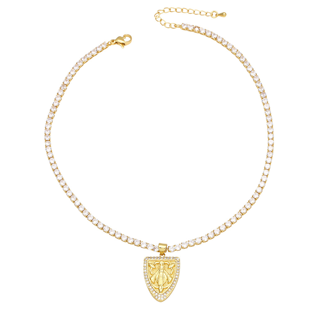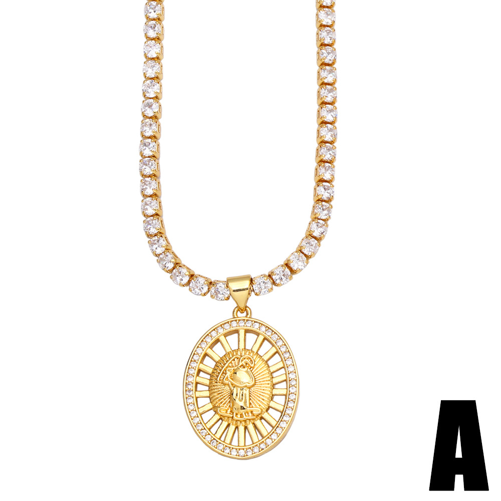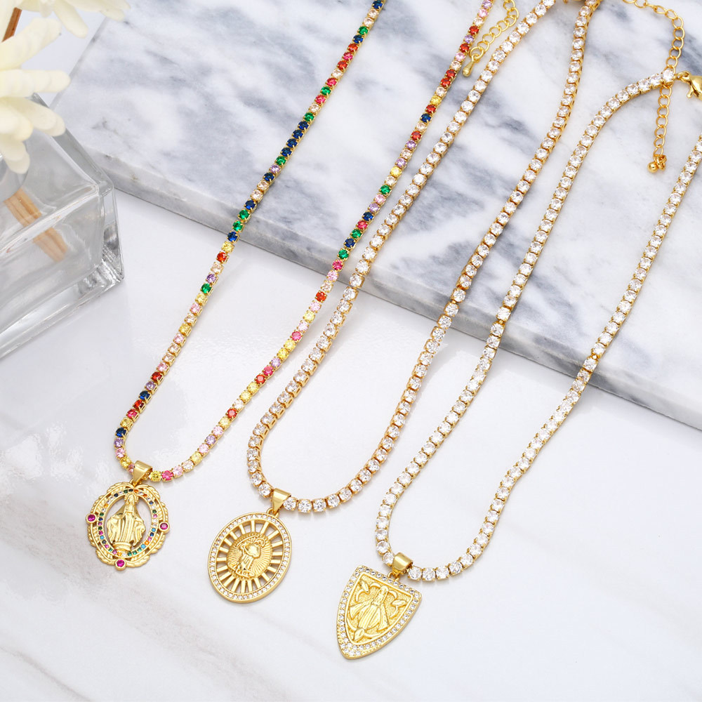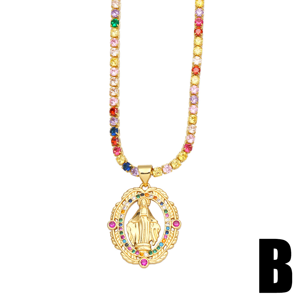 European and American hot selling religious jewelry personality color zircon geometric Madonna pendant necklace clavicle chain female nka043