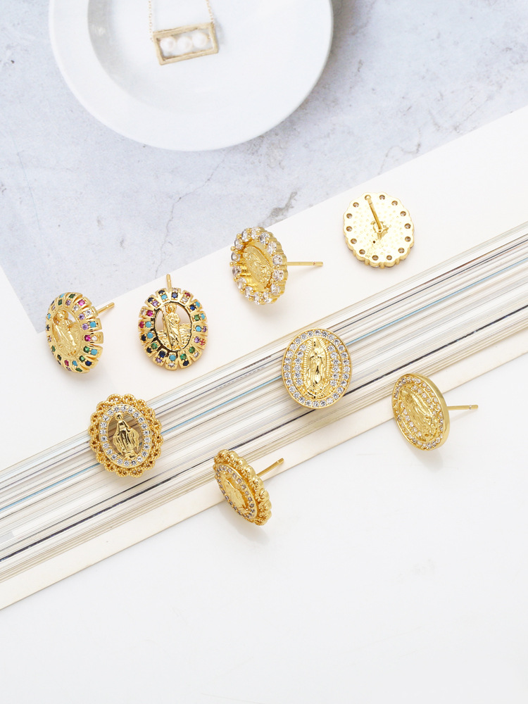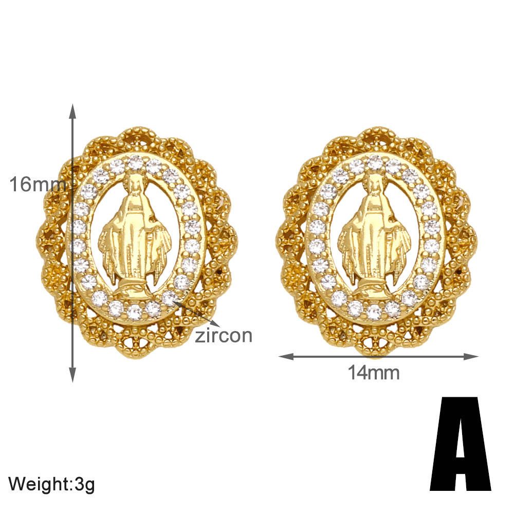 European and American hot selling retro Virgin Mary earrings personality hollow inlaid zircon flower holder earrings eru91