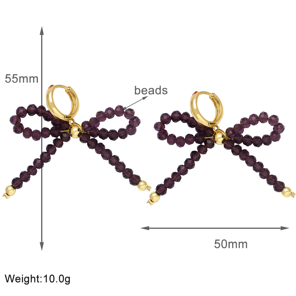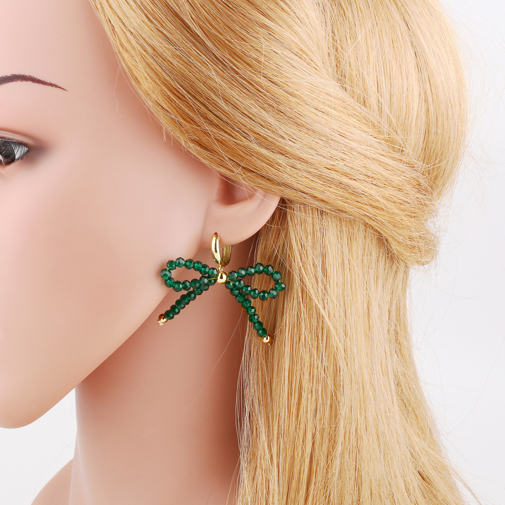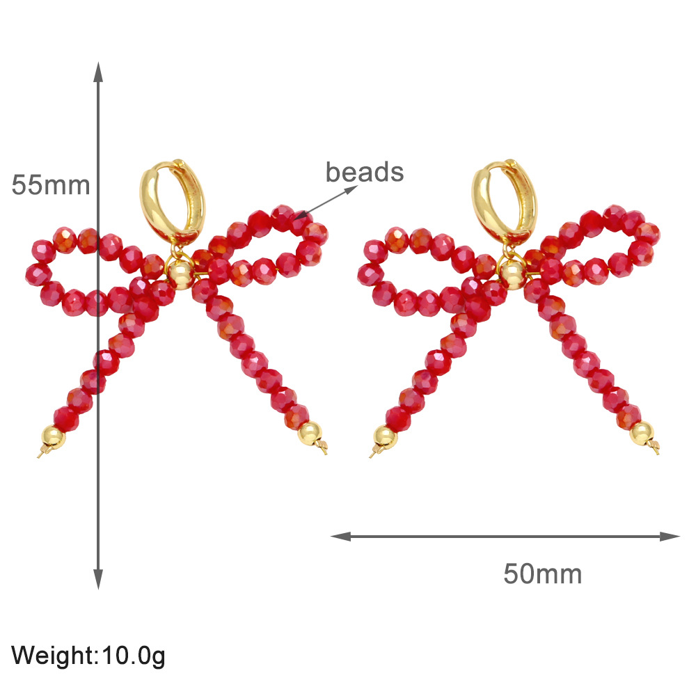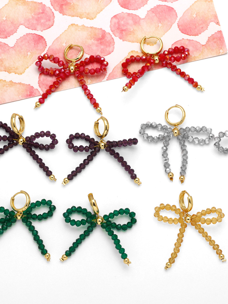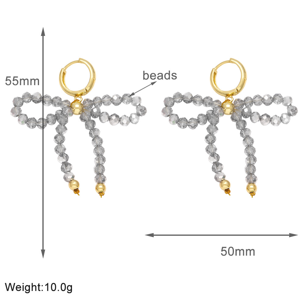European and American hot selling rice bead earrings women's gold-plated crystal bow earrings earrings jewelry wholesale erw46