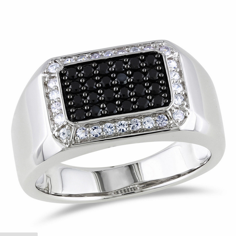 European and American hot-selling ring fashion ring for men and women black zircon silver-plated jewelry wholesale