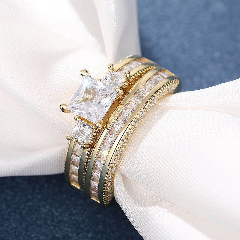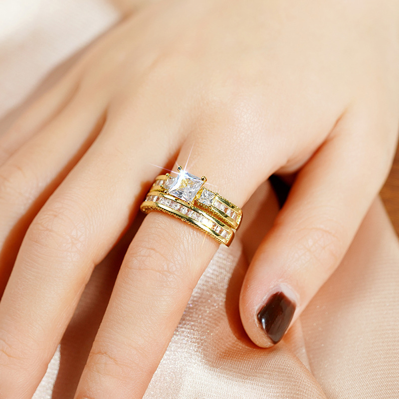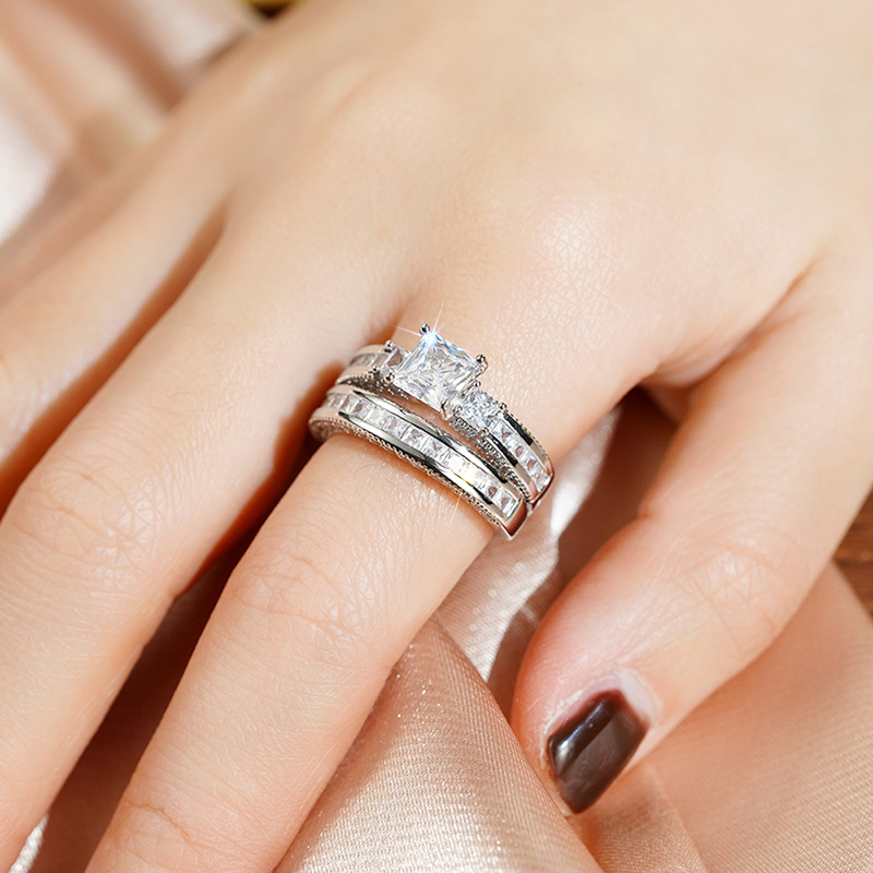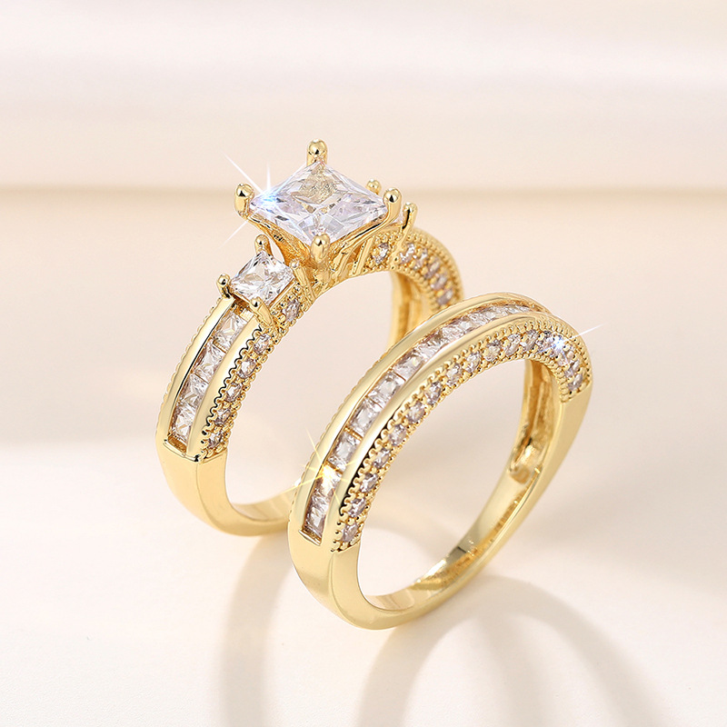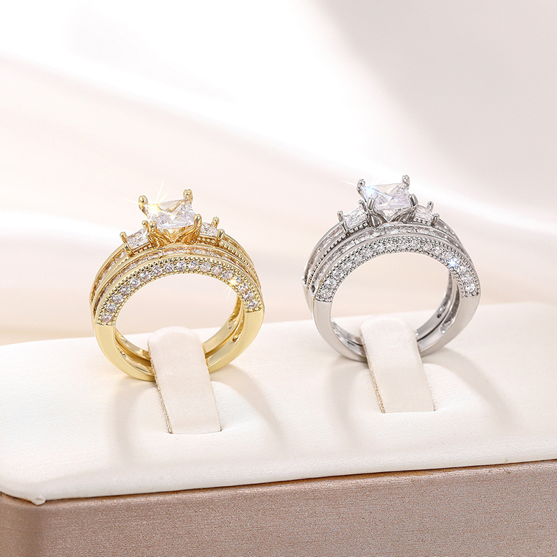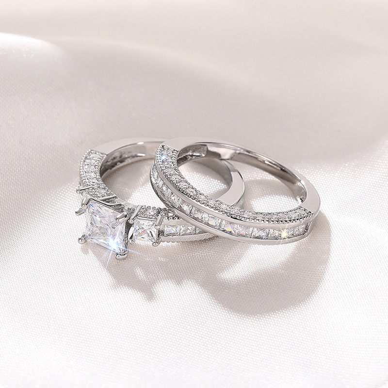 Hot selling new princess square ring European and American hot style inlaid zircon women's jewelry engagement proposal ring