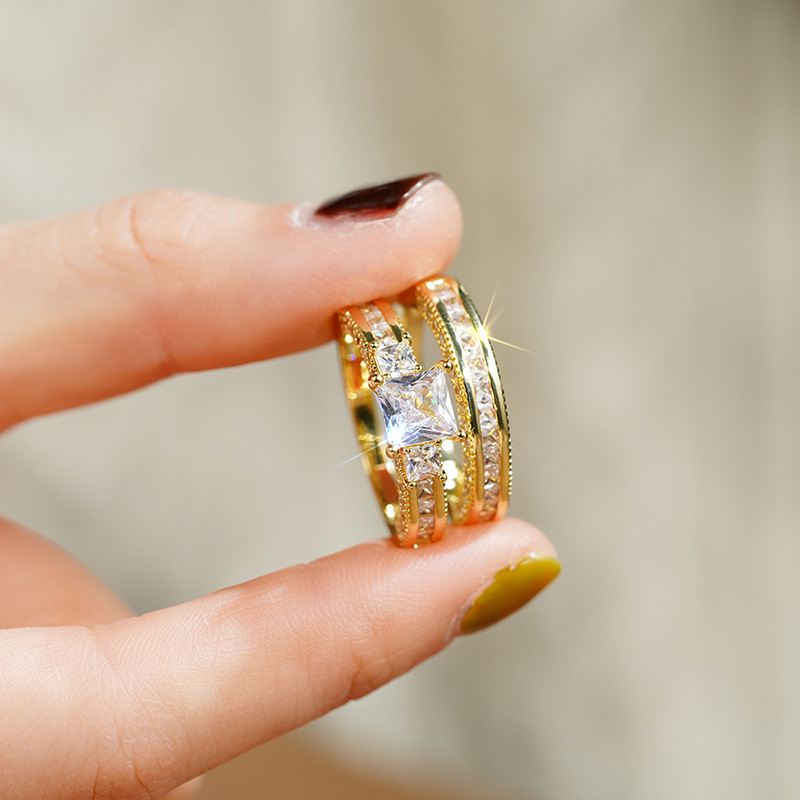 European and American hot-selling rings, exquisite and fashionable, exquisite diamond couple rings, geometric quadrilateral rings