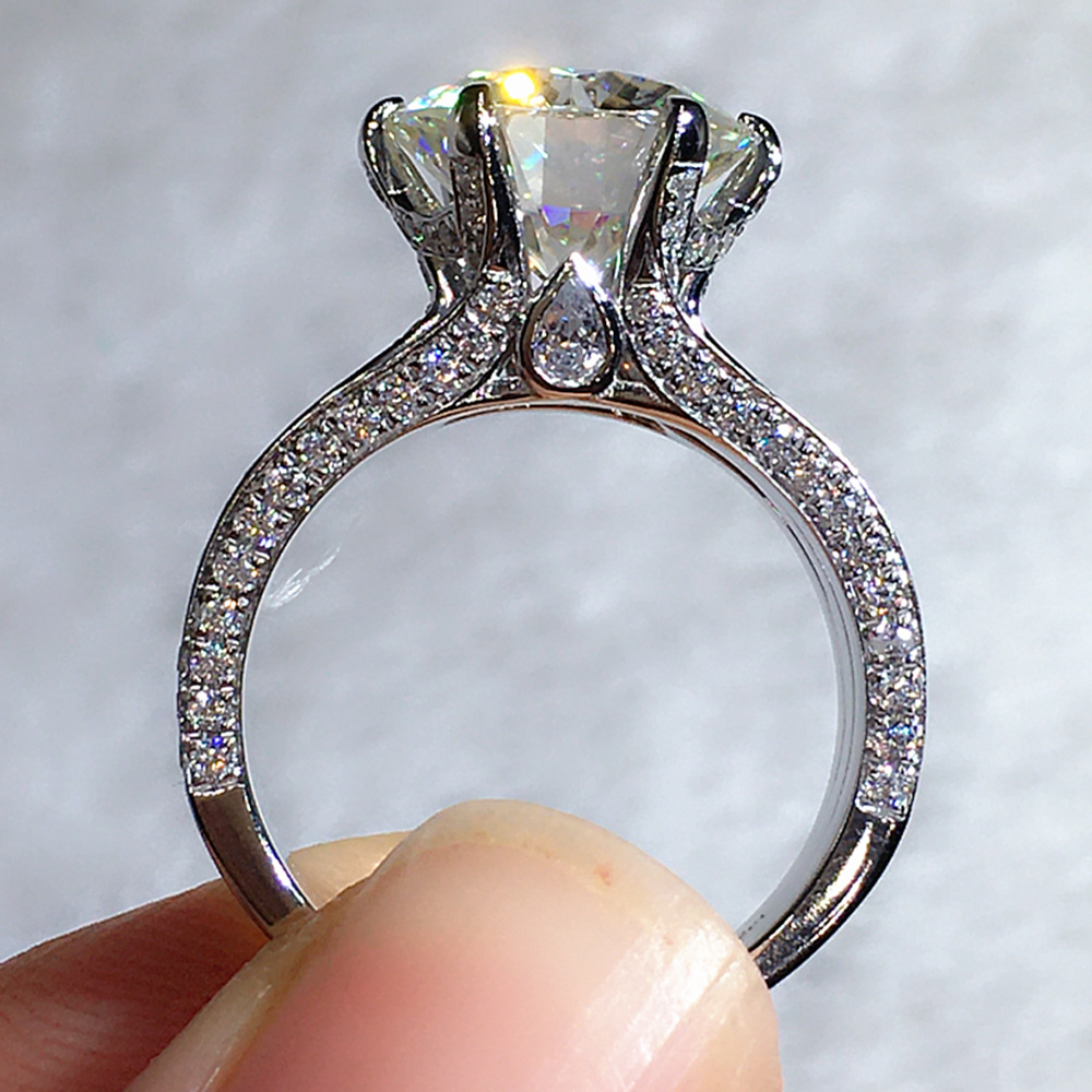 Micro-inlaid celebrity style classic all-match popular ring six-claw zircon wedding ring European and American style light luxury ring