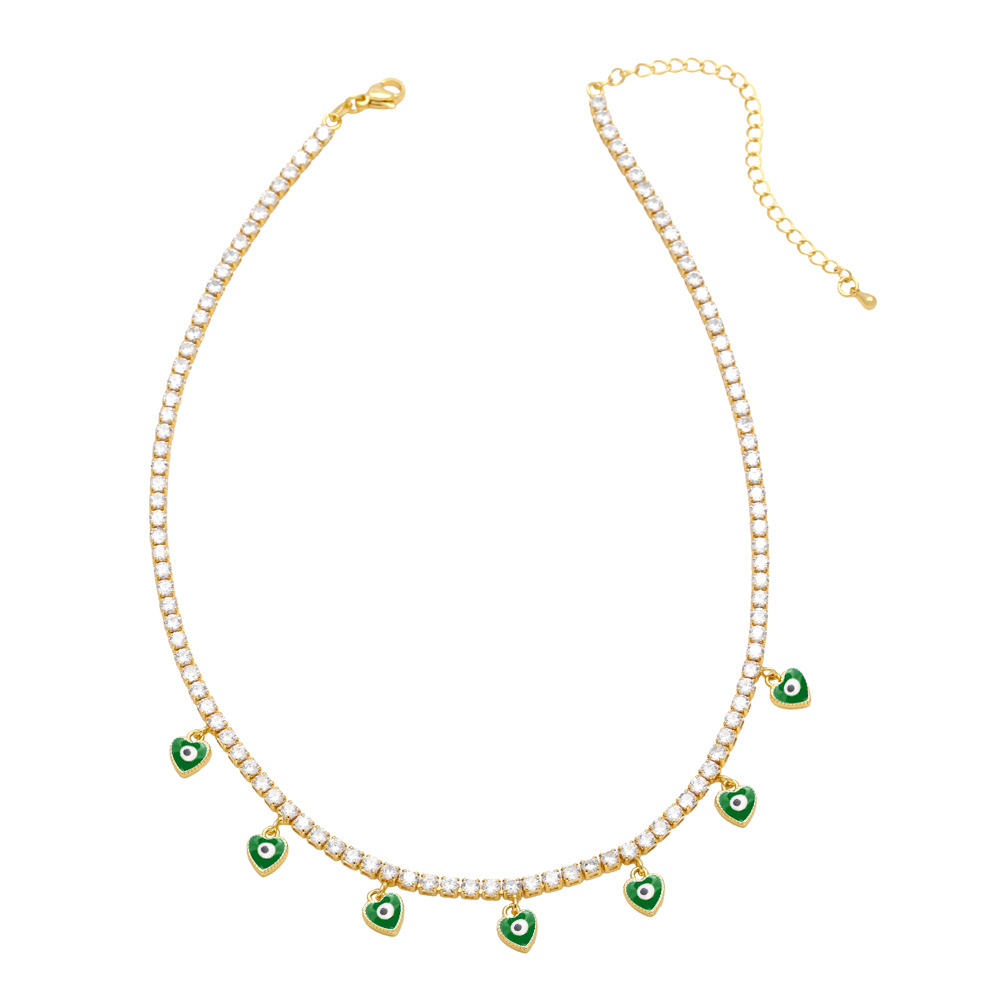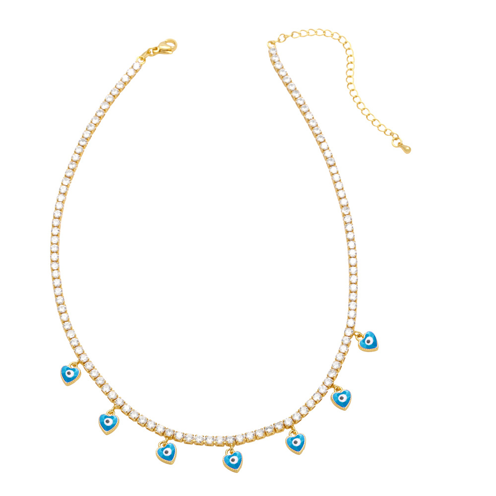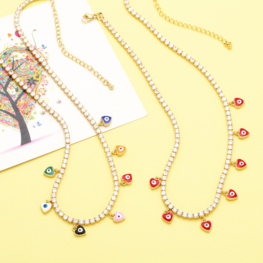 European and American hot-selling zircon tennis chain women's fashion niche oil drop heart-shaped devil eye pendant clavicle chain nkb034
