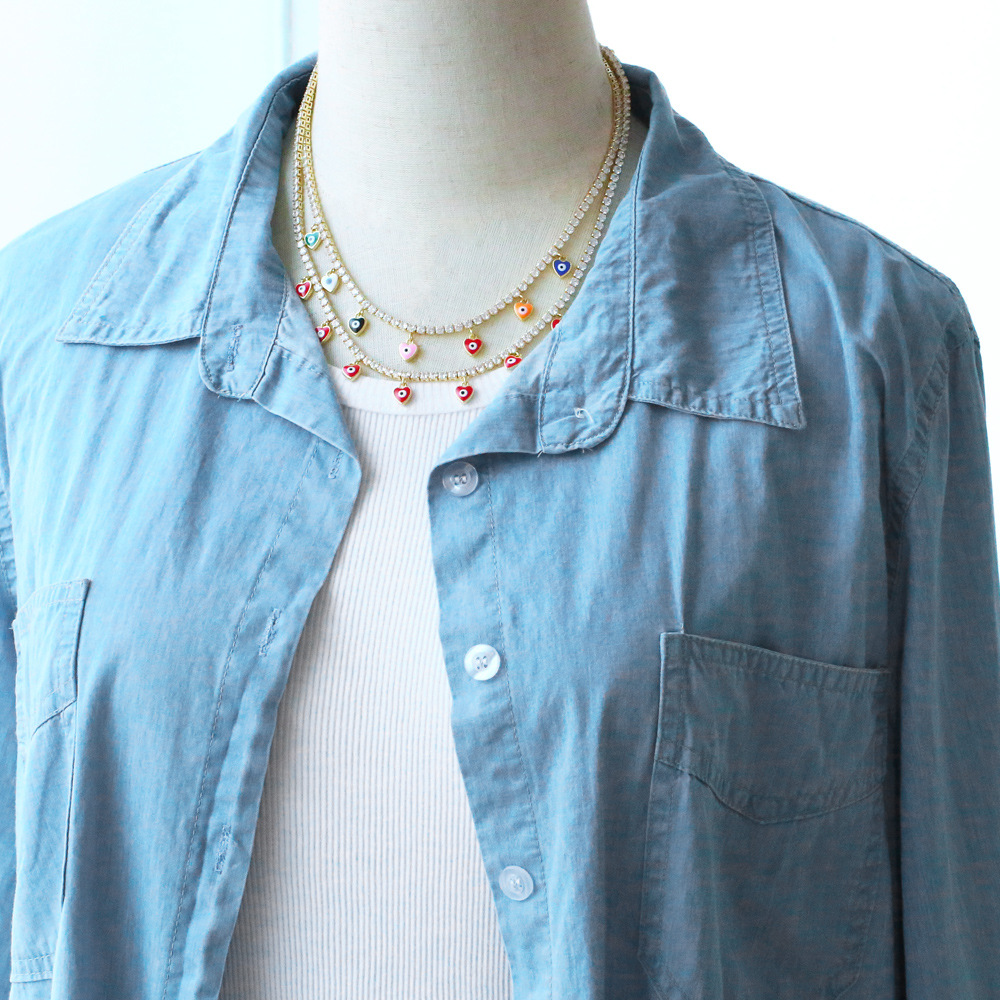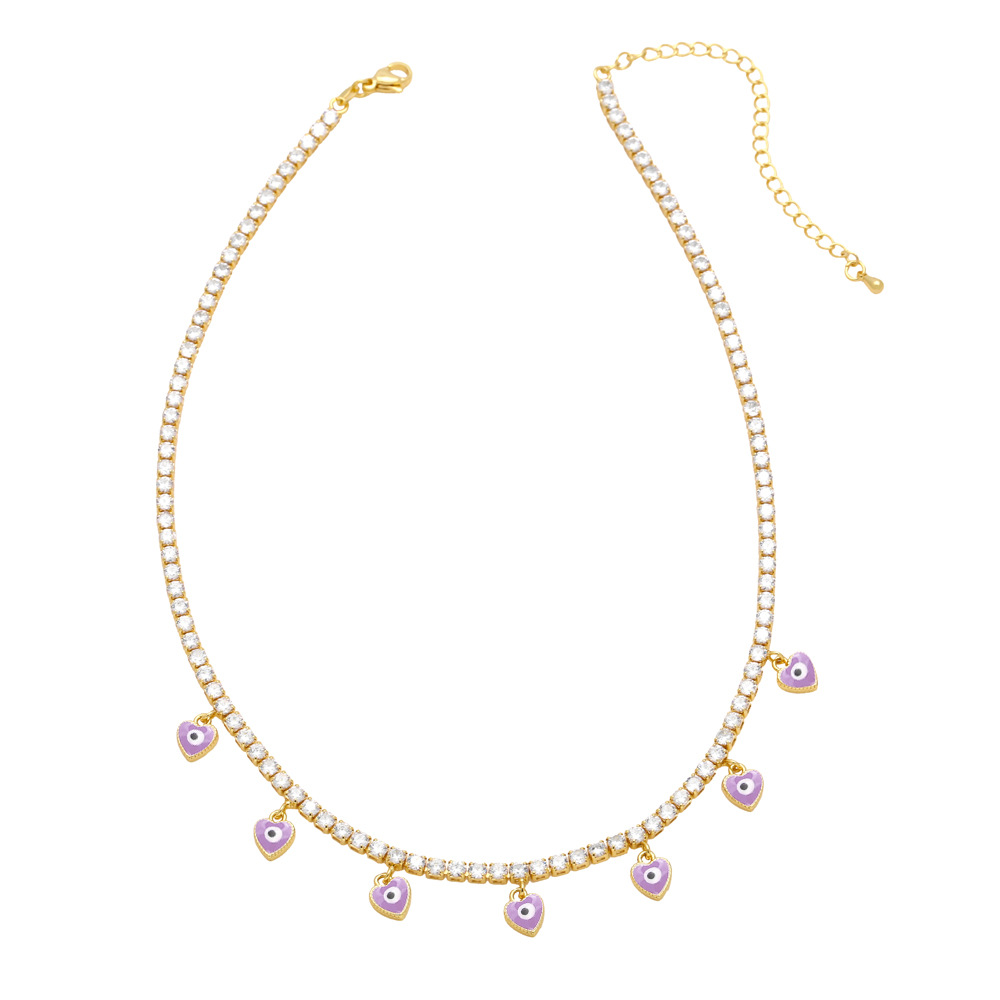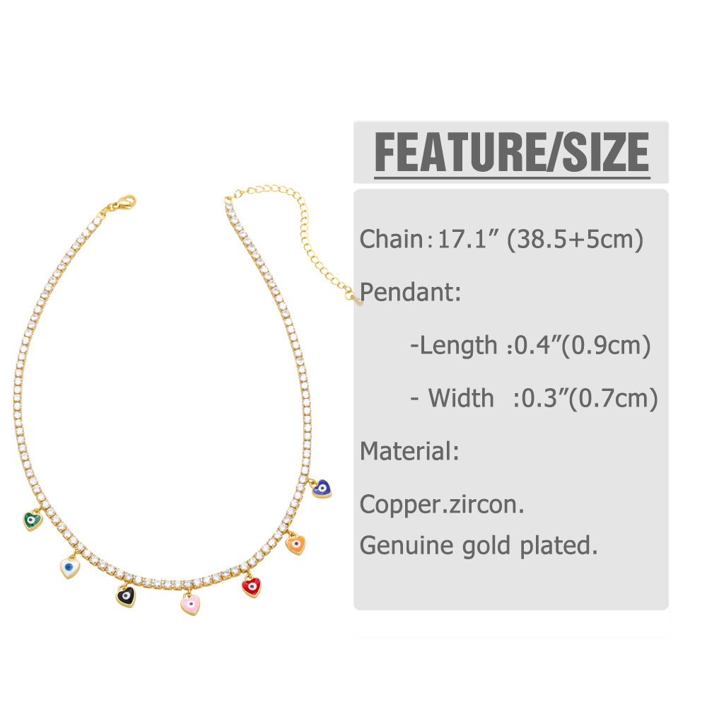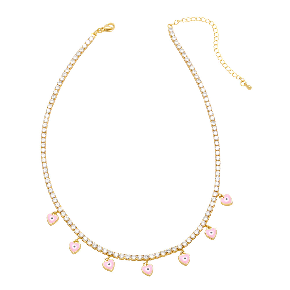 European and American hot-selling zircon tennis chain women's fashion niche oil drop heart-shaped devil eye pendant clavicle chain nkb034