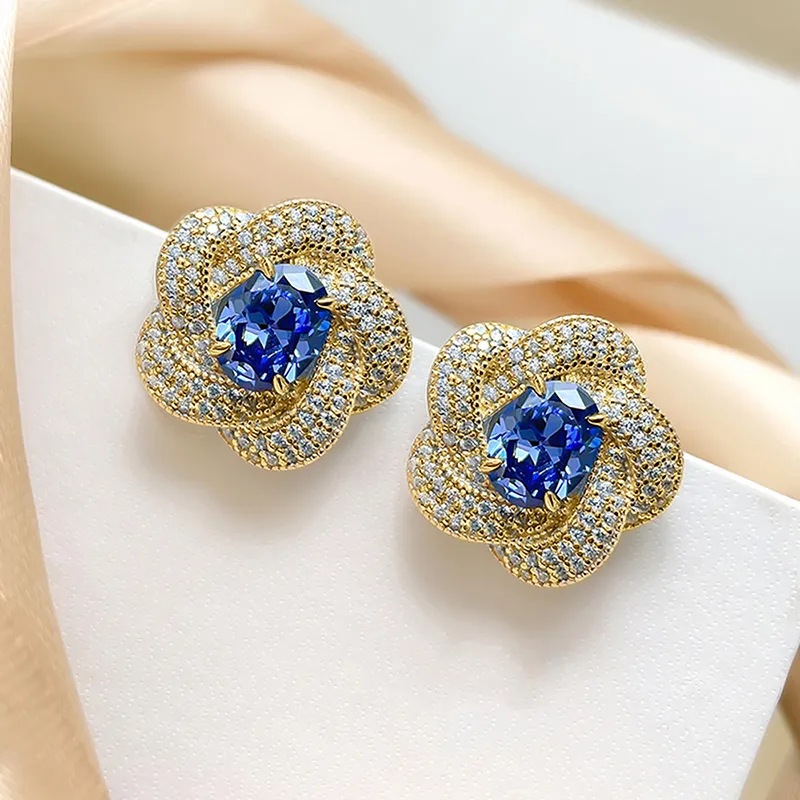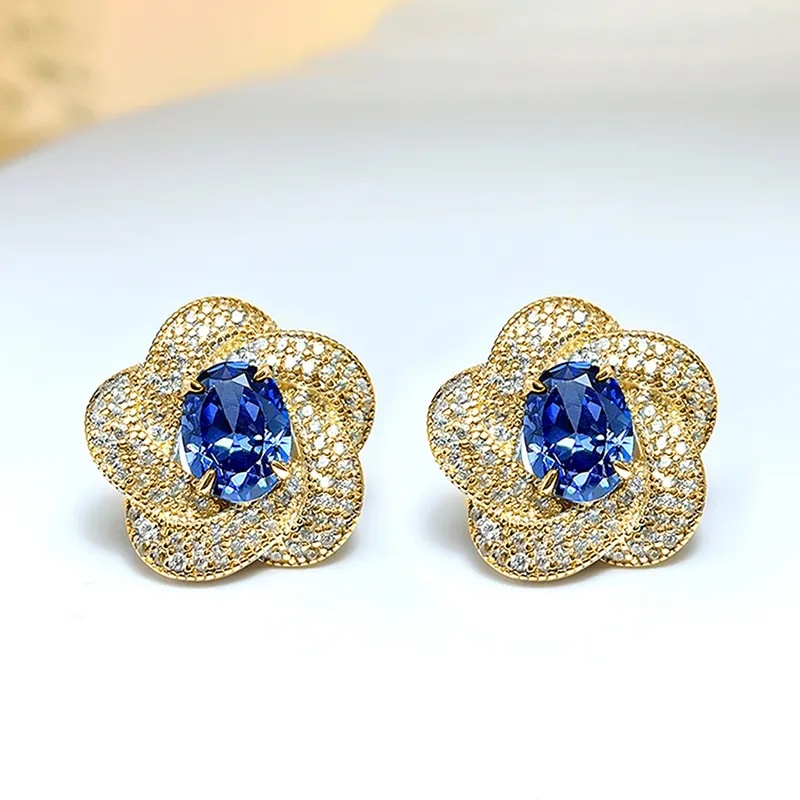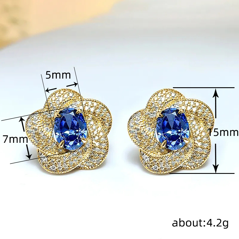 European and American imitation Tanzanite blue earrings egg-shaped temperament celebrity round face flower earrings retro style earrings