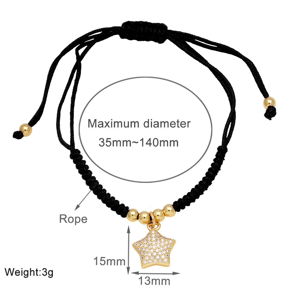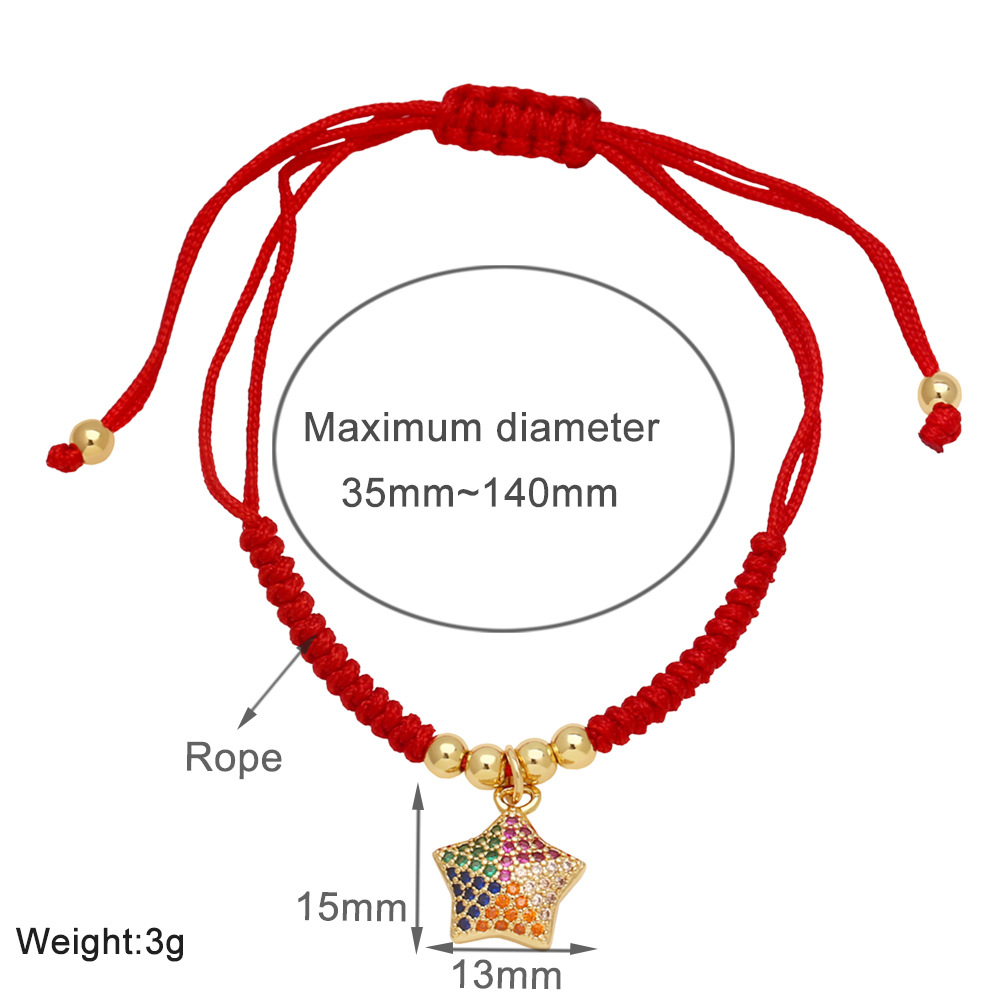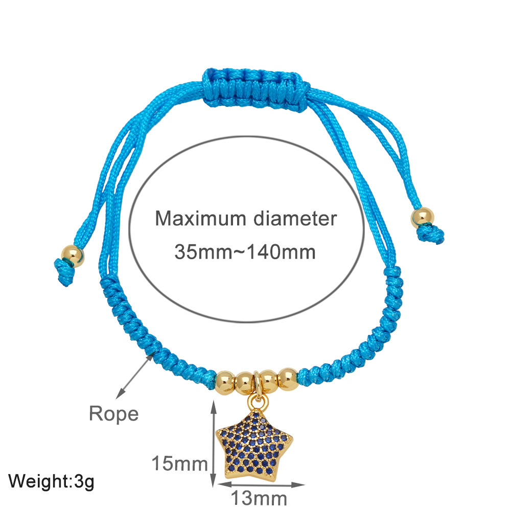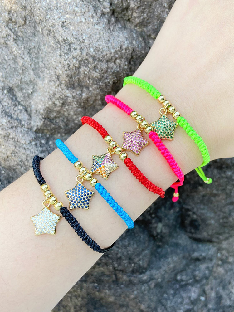 European and American inlaid colored zircon five-pointed star bracelet female personality creative versatile braided rope bracelet brm52