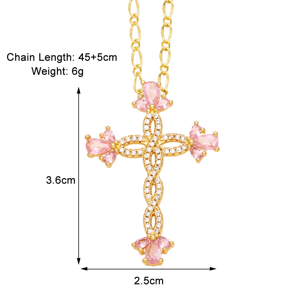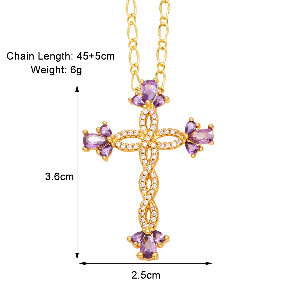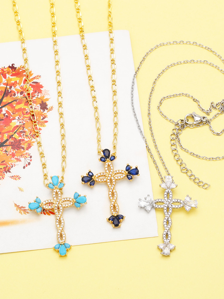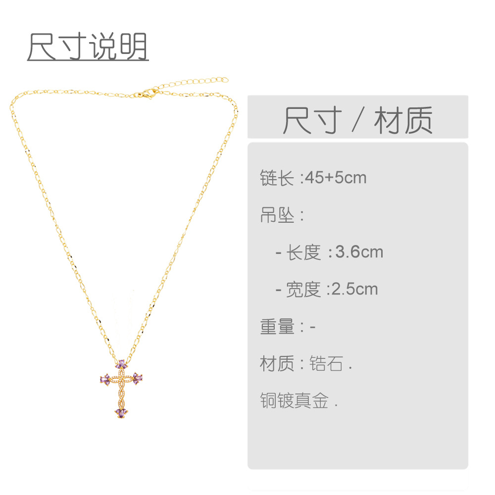 European and American inlaid colored zircon pendant necklace creative personality cross necklace female clavicle chain nkb807