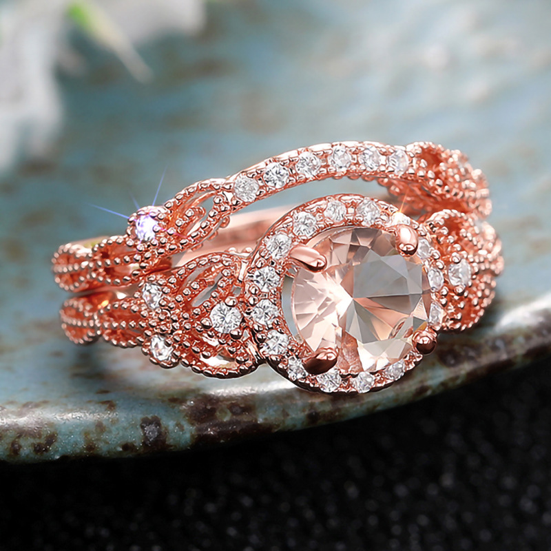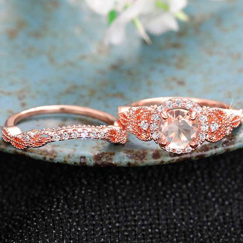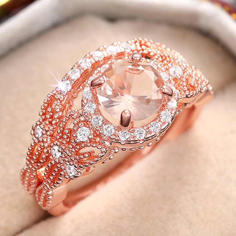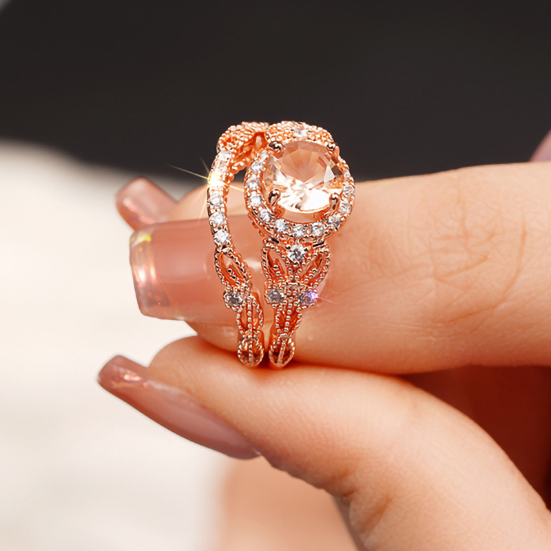 European and American inlaid zircon couple rings women's fashionable and shiny design ring wedding high-end two-piece set