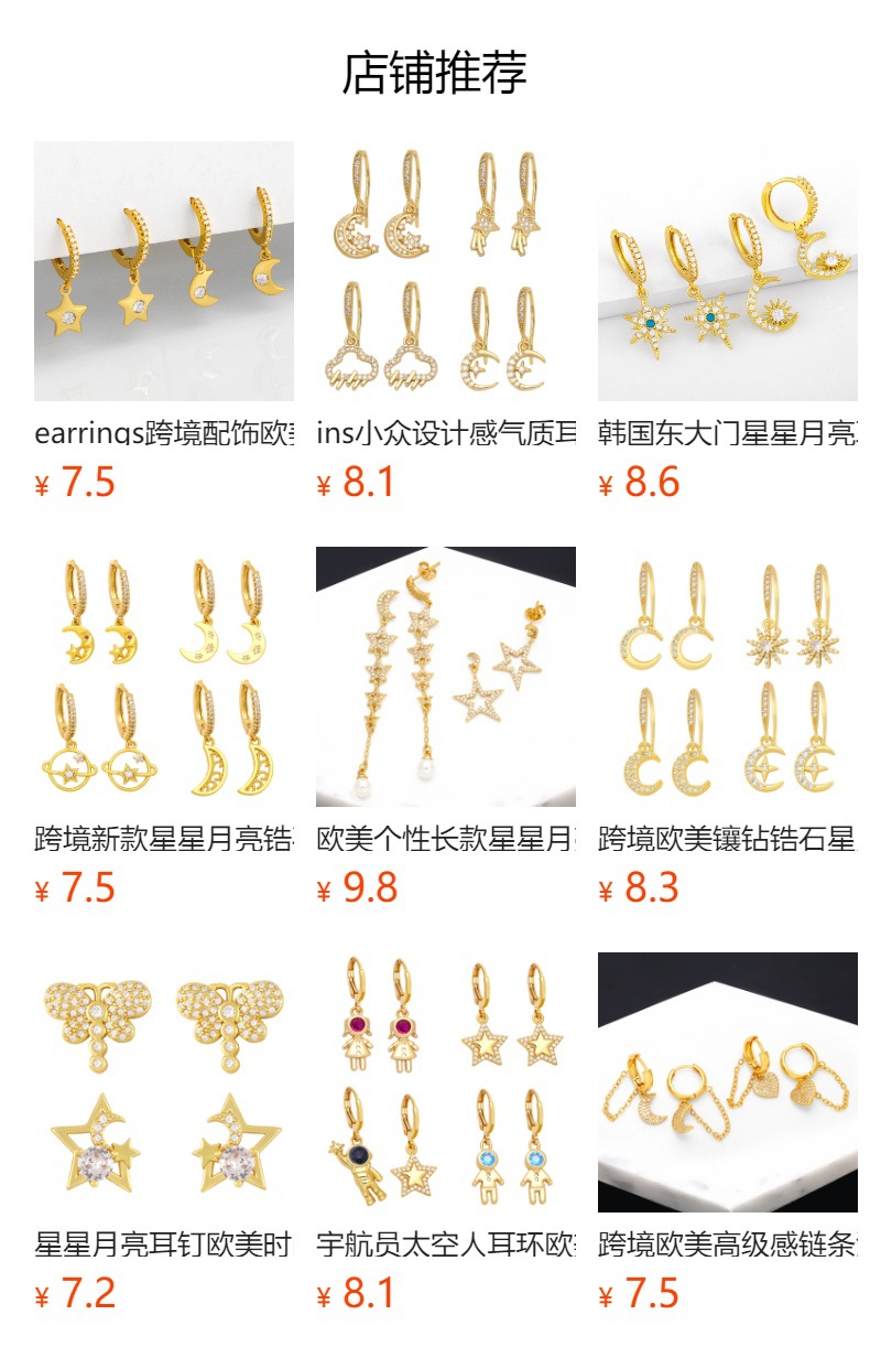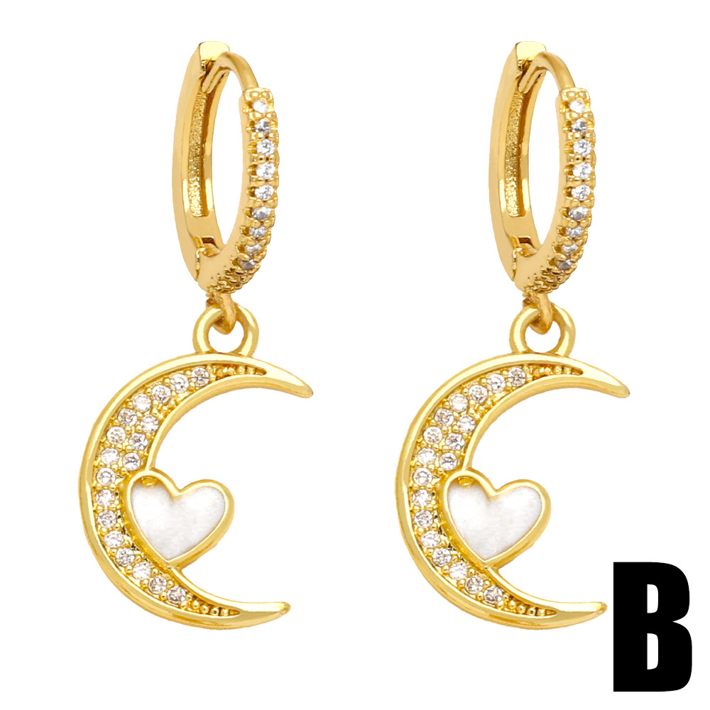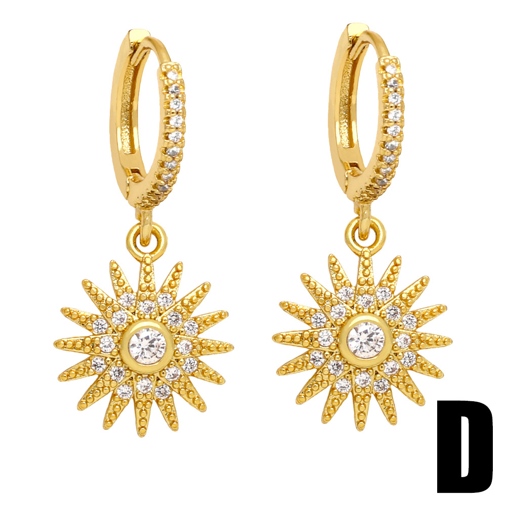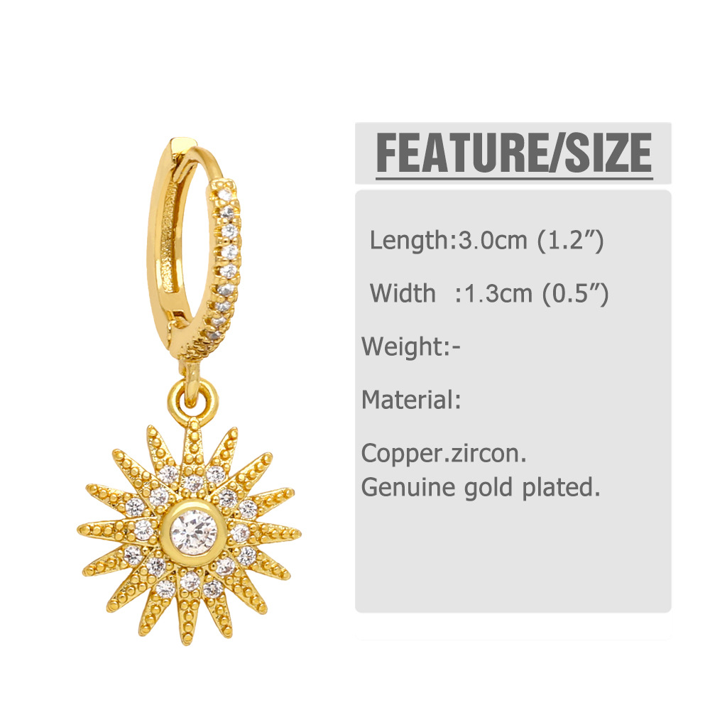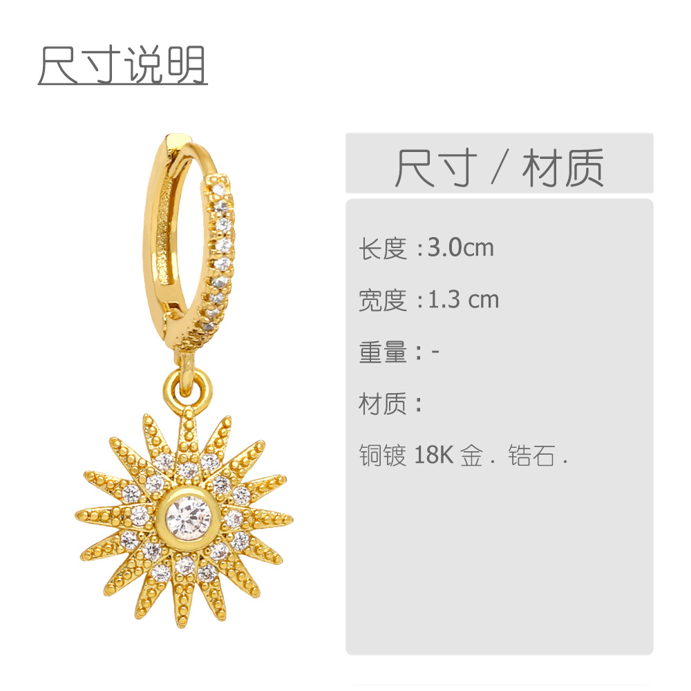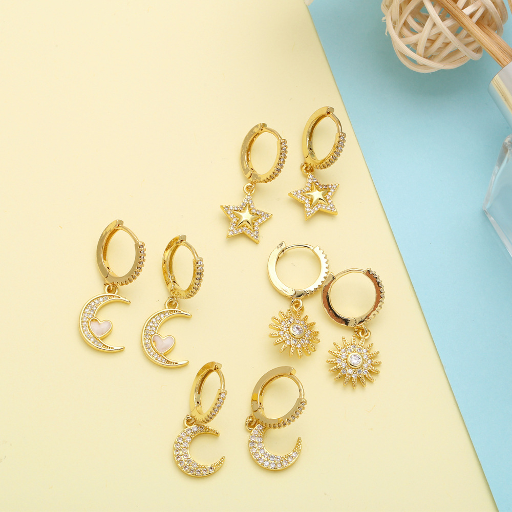 European and American inlaid zircon five-pointed star moon earrings women's fashion retro sun earrings earrings wholesale ers25