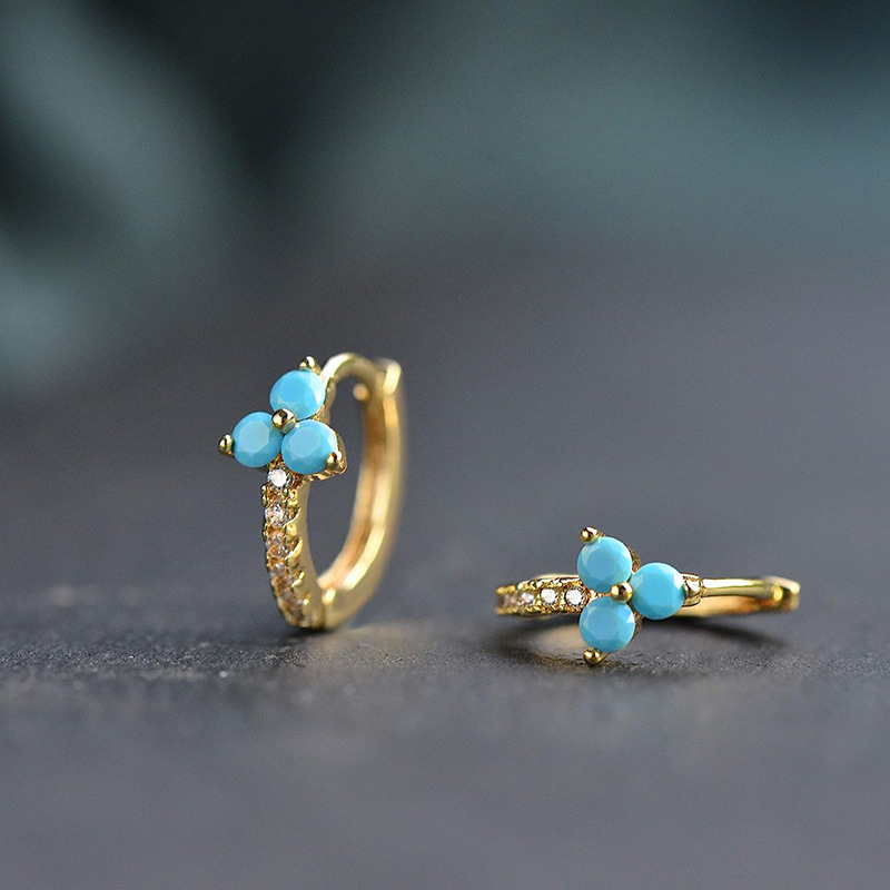 European and American fashion personality micro-inlaid colored zircon love earrings earrings women's trendy flower earrings earrings ert89