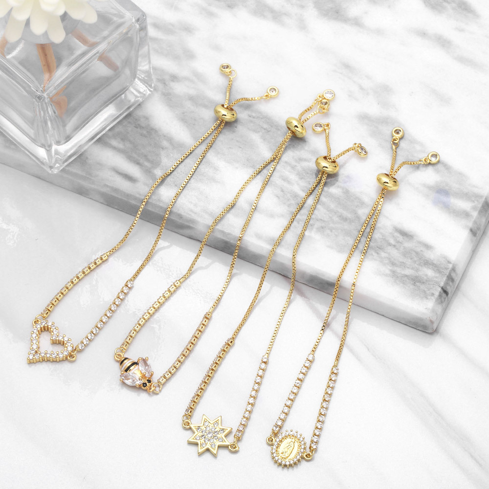 European and American Internet celebrity niche light luxury design micro-inlaid zircon chain love eight-pointed star pull-out bracelet female brf35