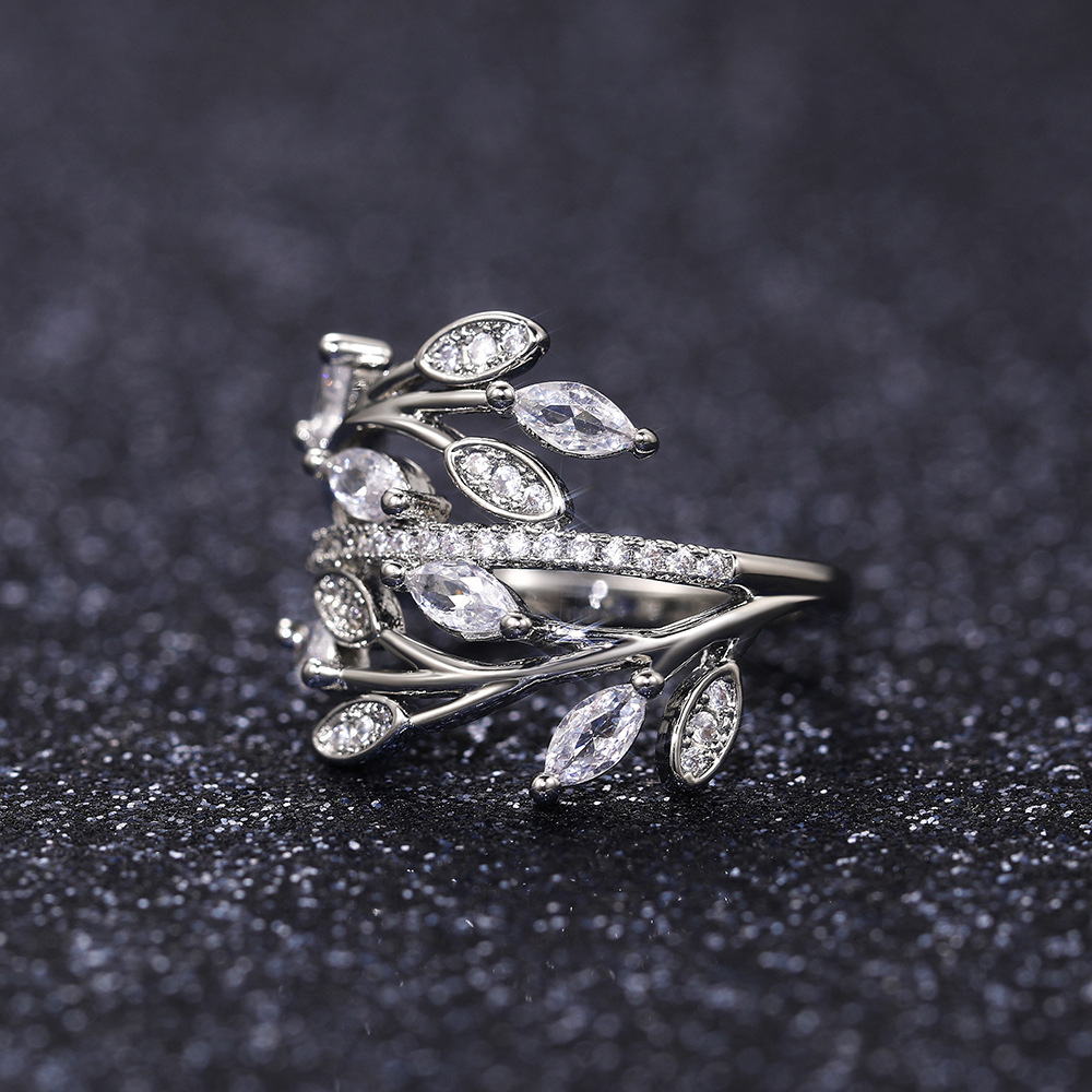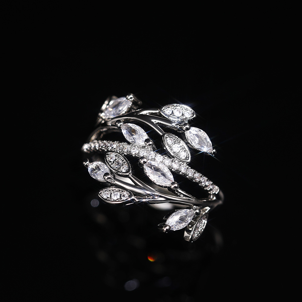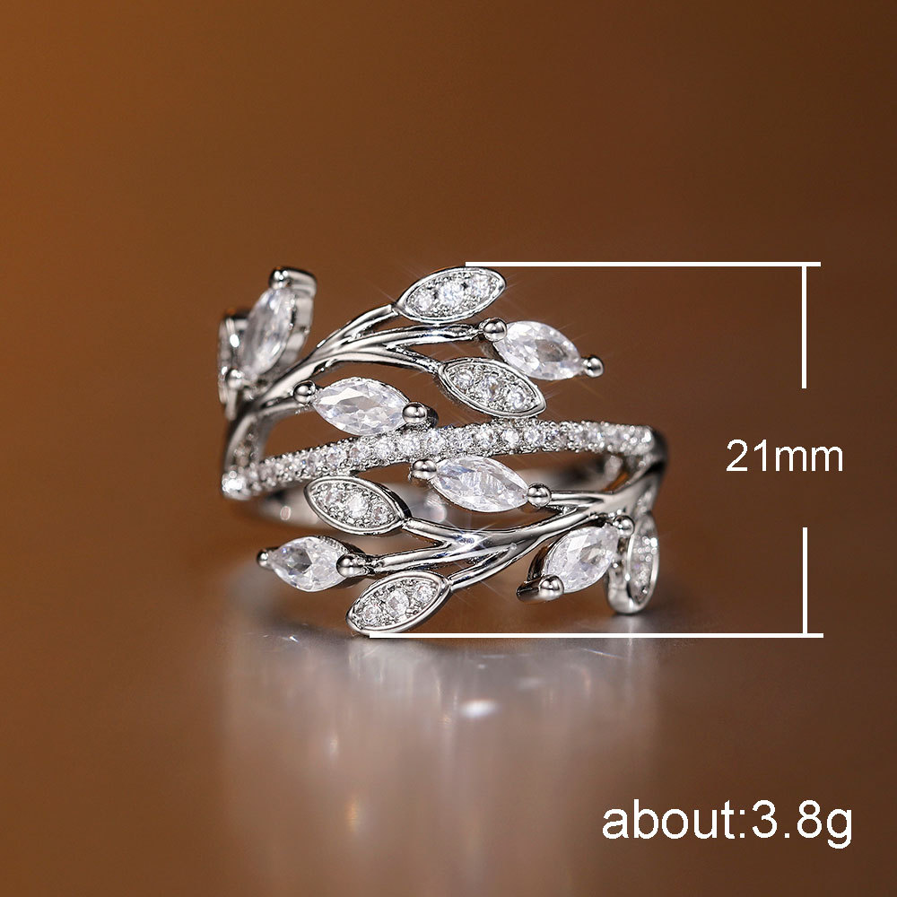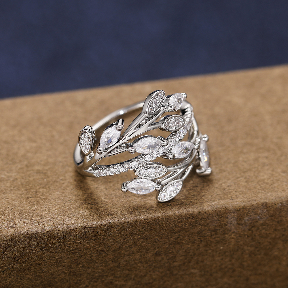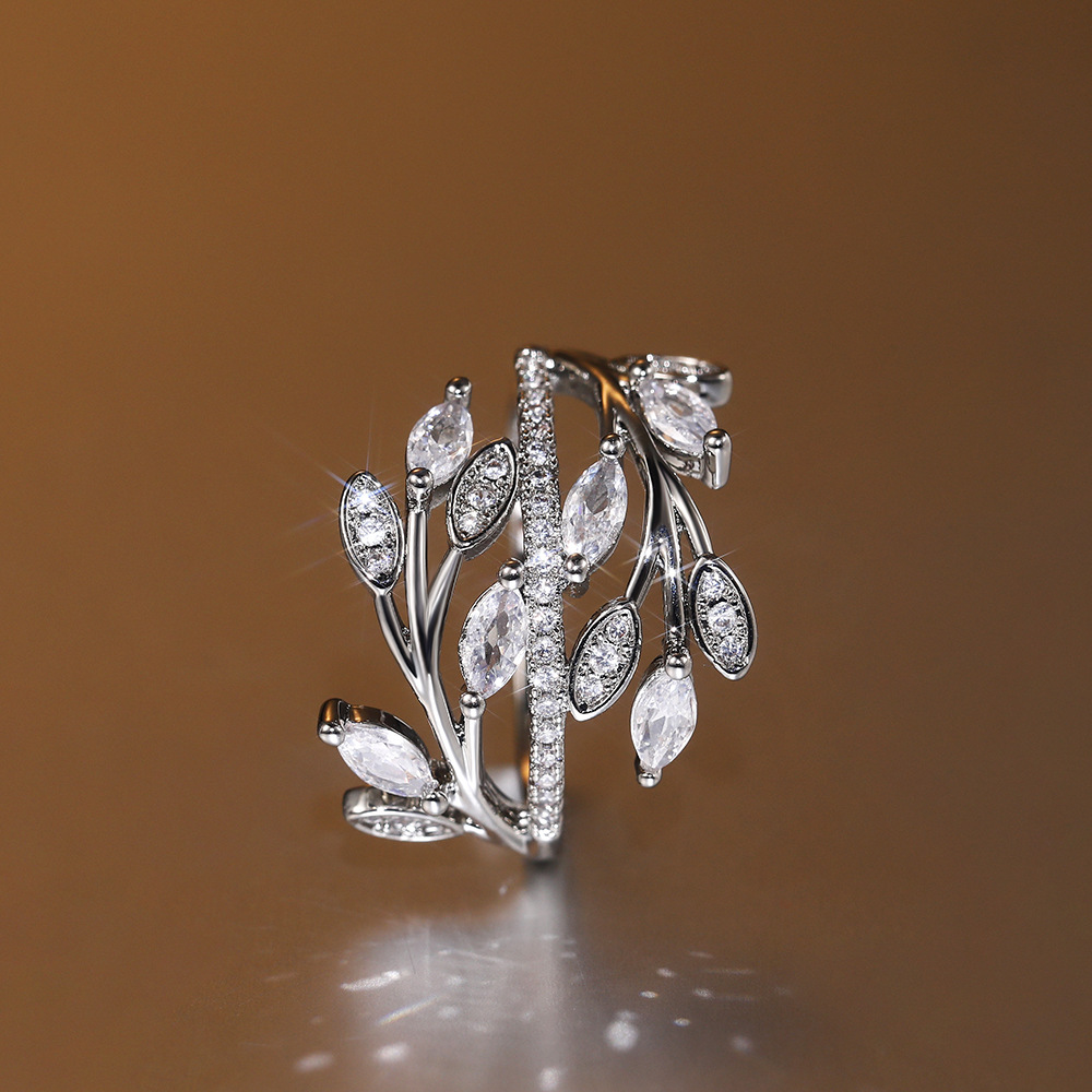 European and American interwoven leaf ring female creative personality flower leaf vine octagonal flower zircon ring