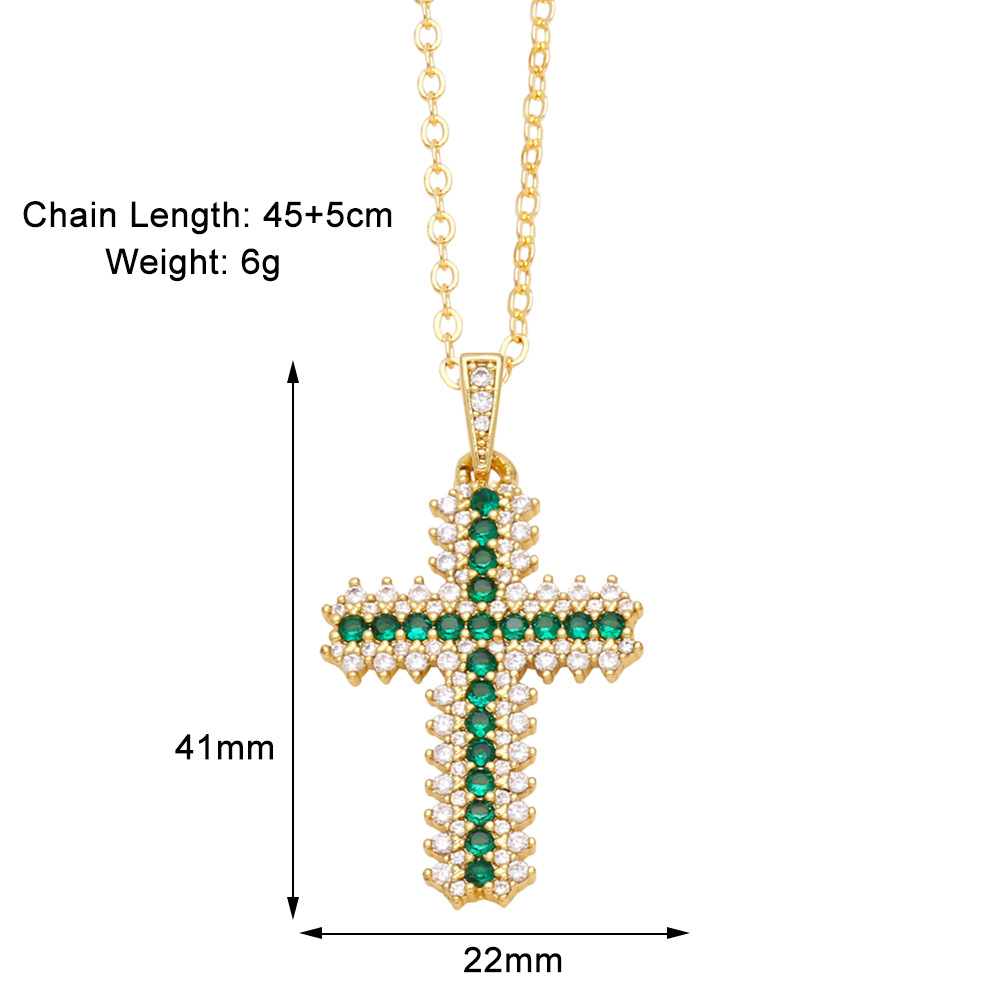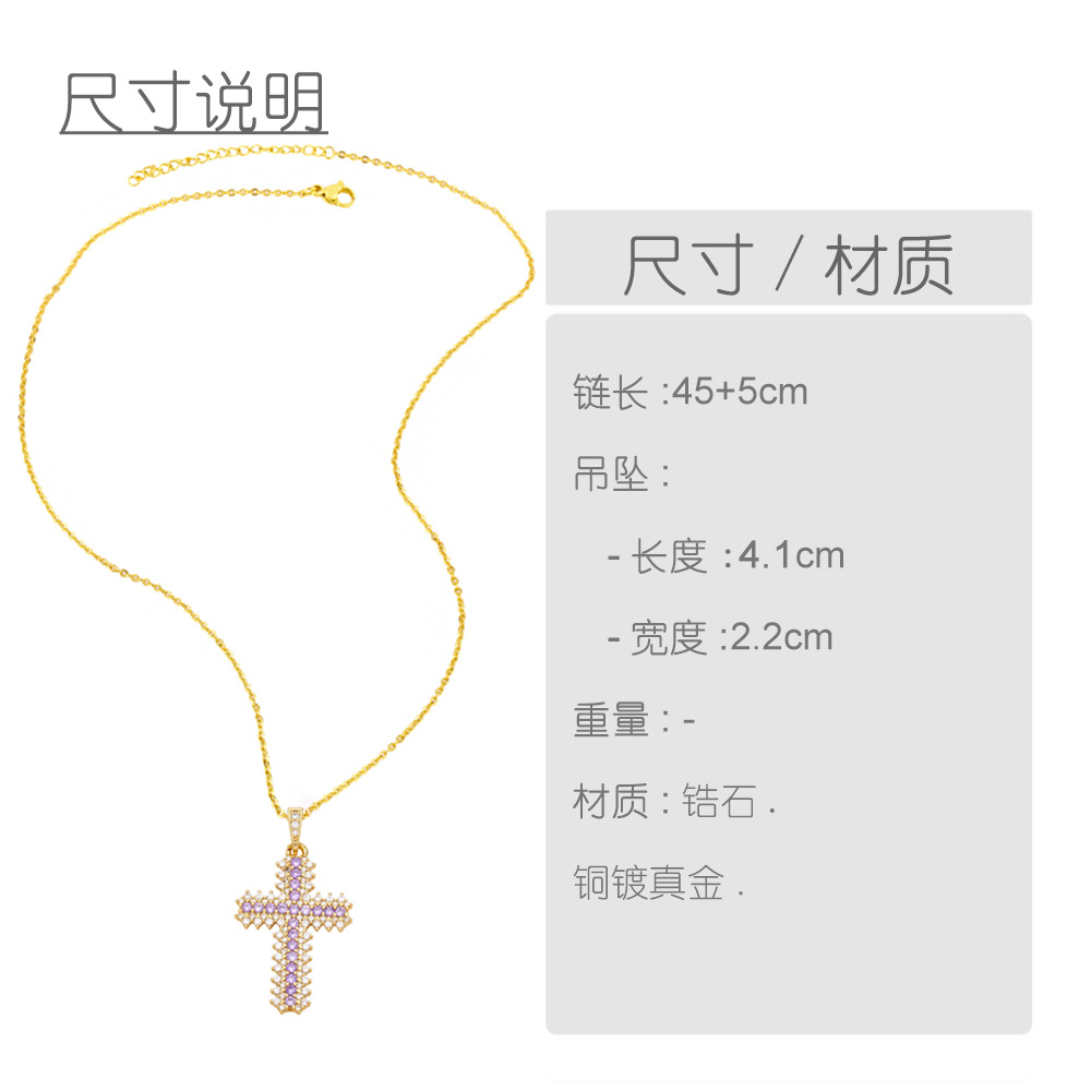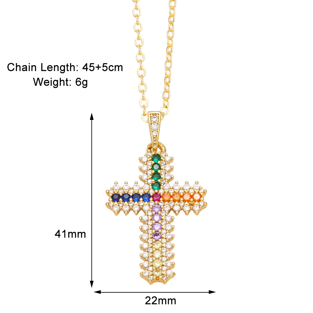 European and American jewelry cross necklace niche design inlaid with colored zircon gold-plated clavicle chain accessories nkb864