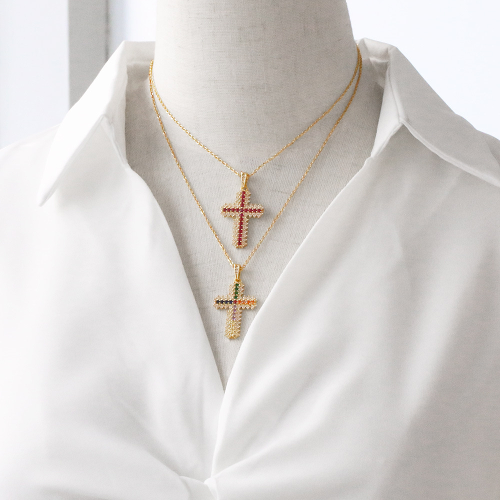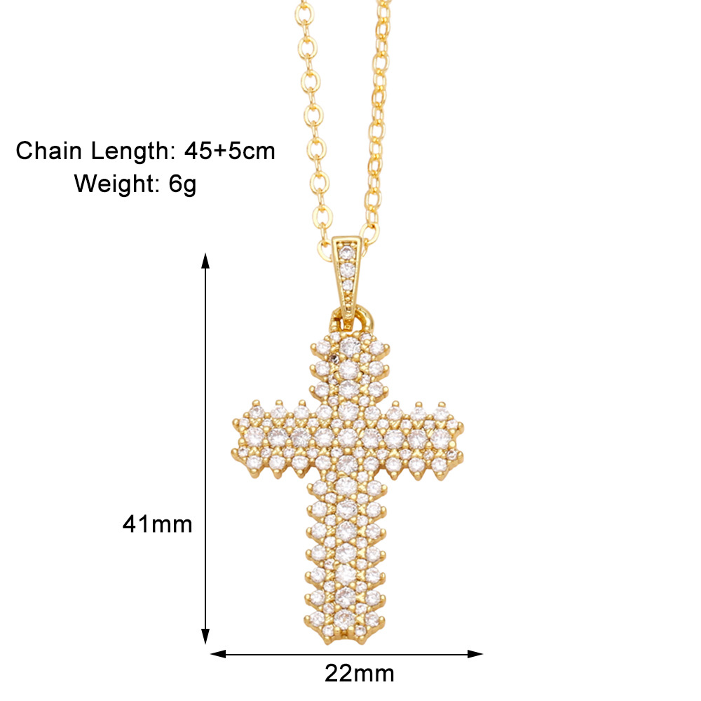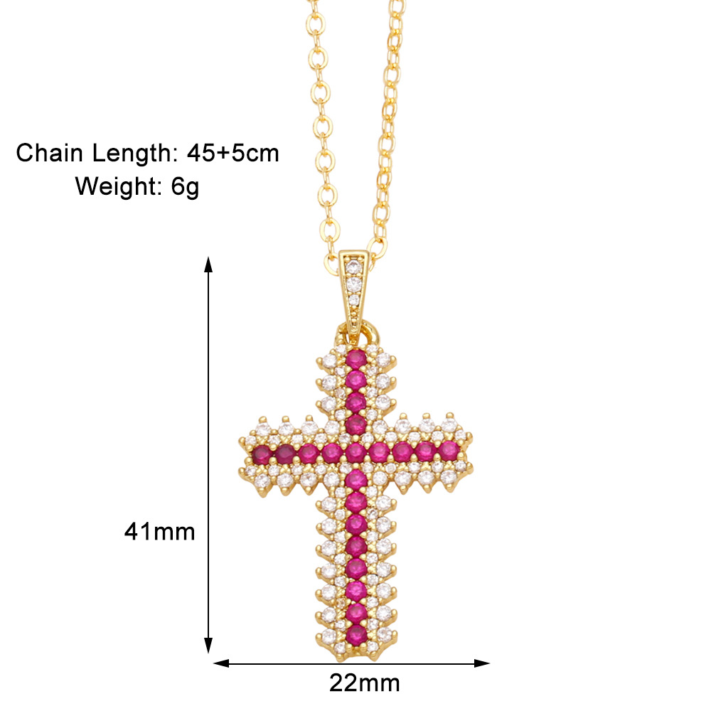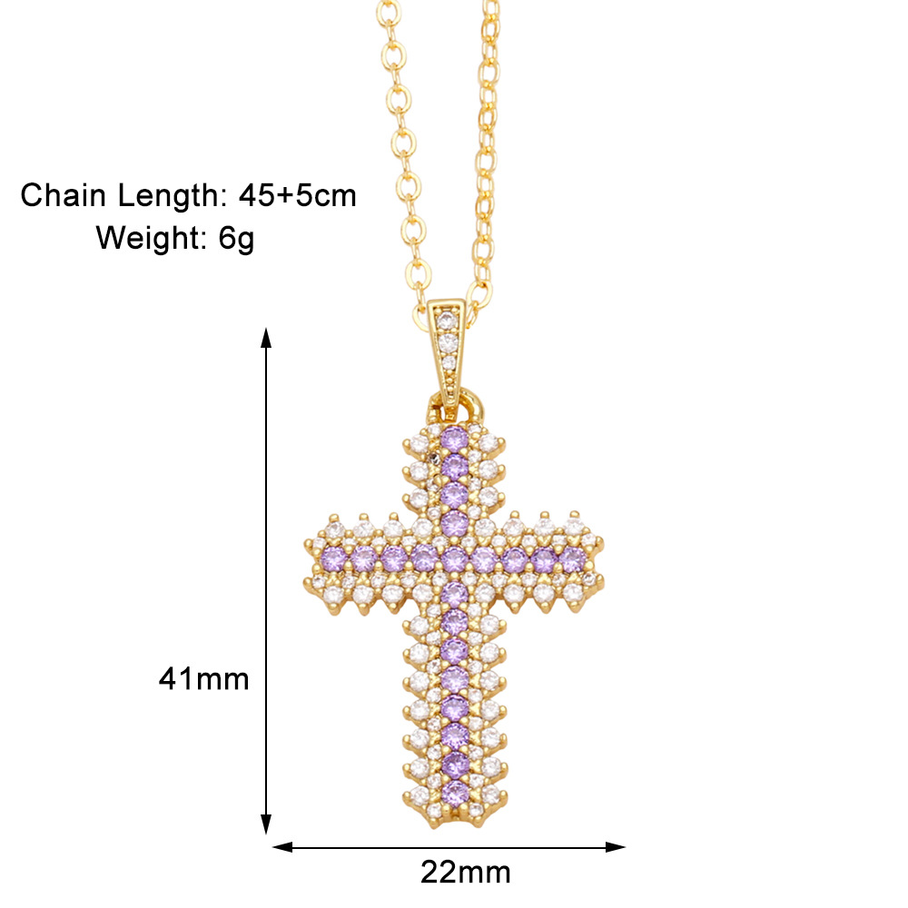 European and American jewelry cross necklace niche design inlaid with colored zircon gold-plated clavicle chain accessories nkb864