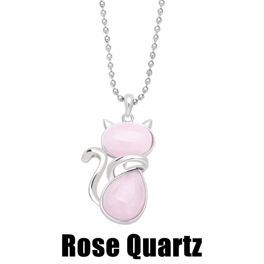 European and American jewelry crystal agate cute cat pendant necklace female retro fashion sweater chain nkb609