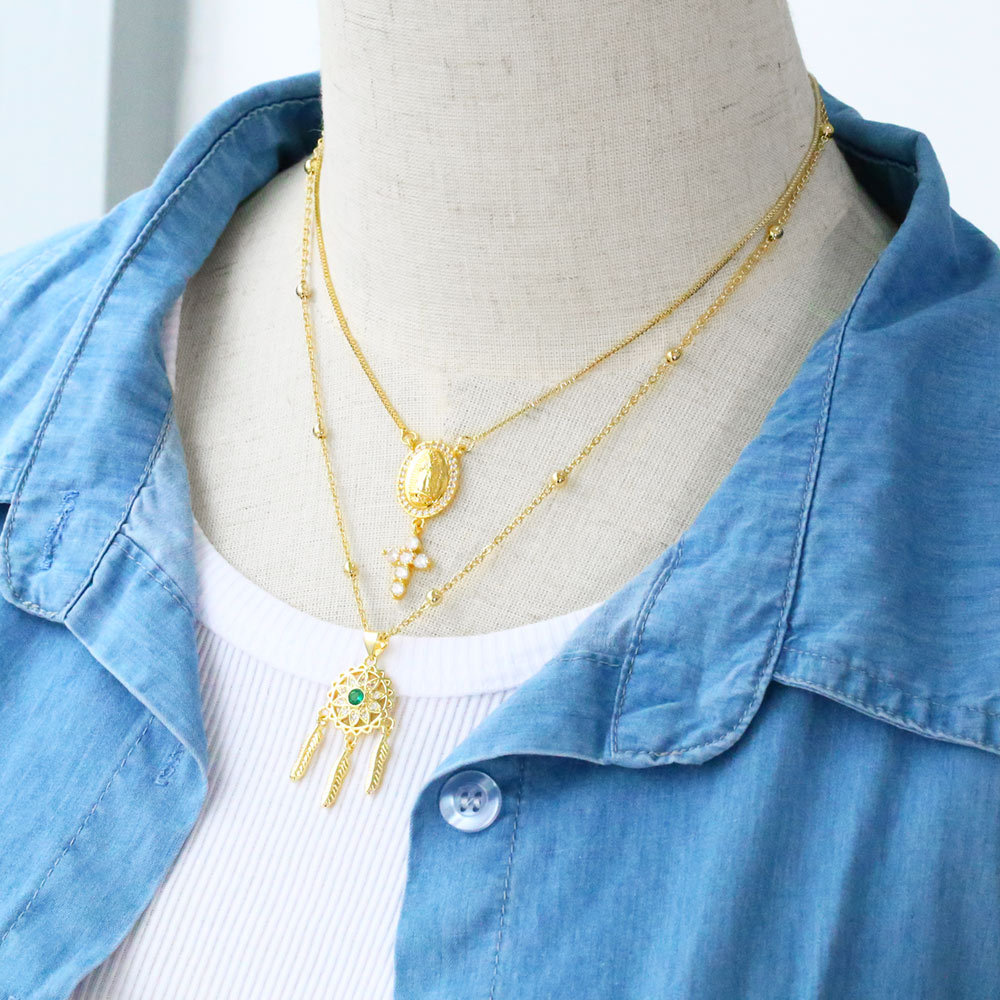European and American jewelry dream catcher necklace female creative personality Our Lady cross stitching pendant necklace nkb614