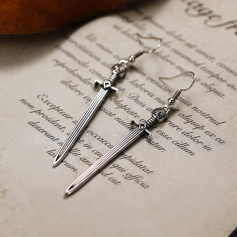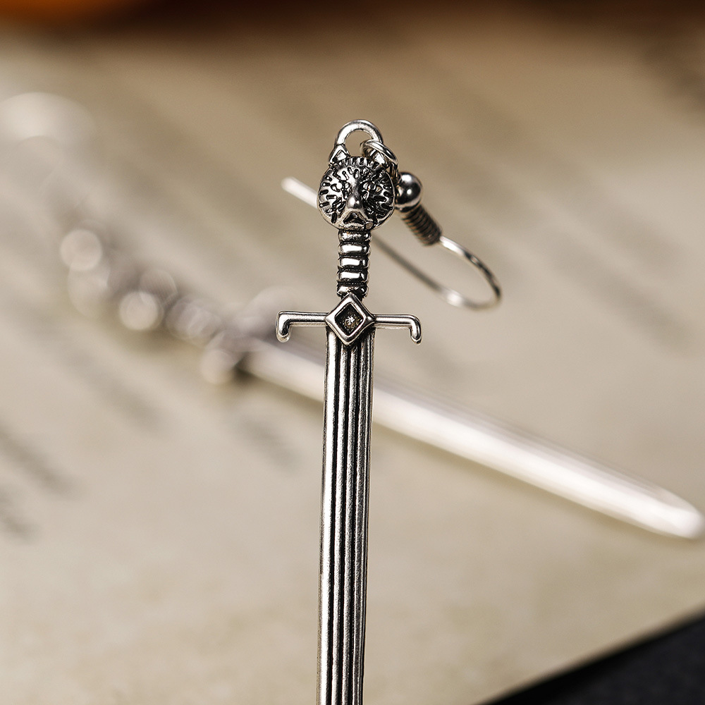 European and American jewelry European medieval Gothic long sword earrings cat head creative weapon sword earrings