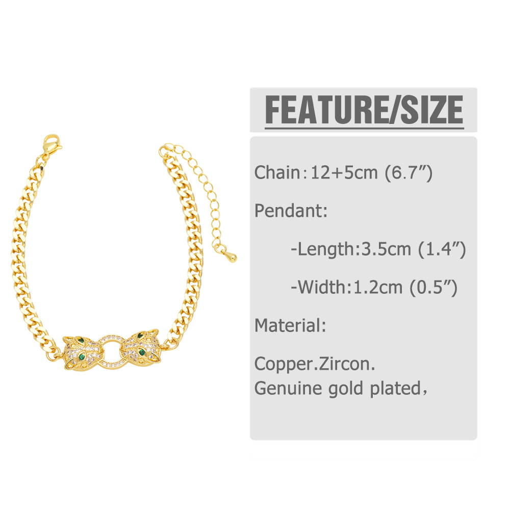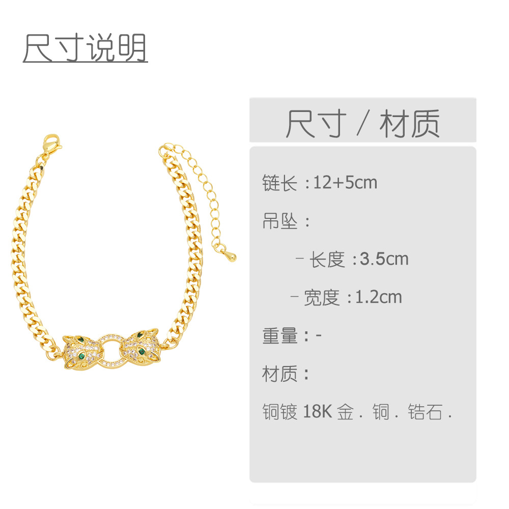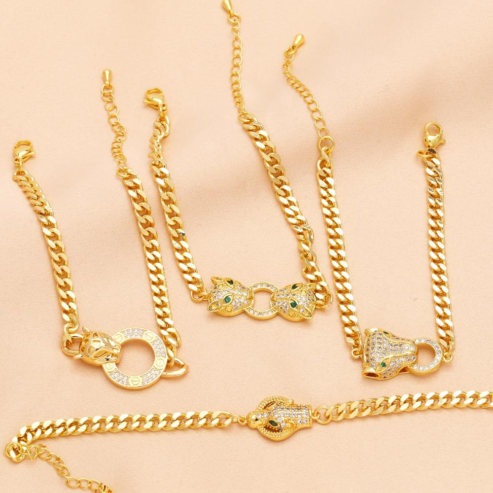 European and American jewelry exaggerated punk leopard bracelet niche light luxury inlaid zircon gold-plated hand jewelry bracelet brm33