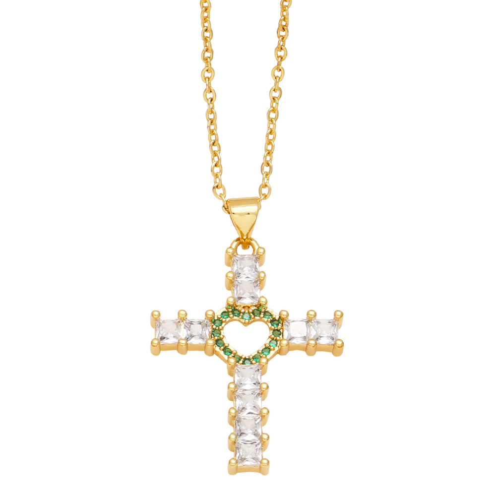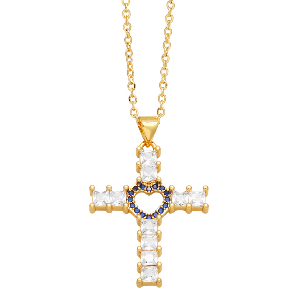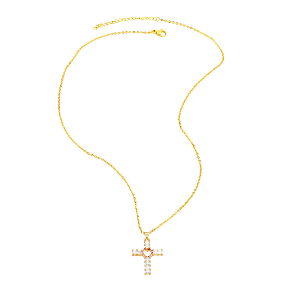 European and American jewelry fashion hip-hop love cross necklace female retro temperament versatile sweater chain nkq72