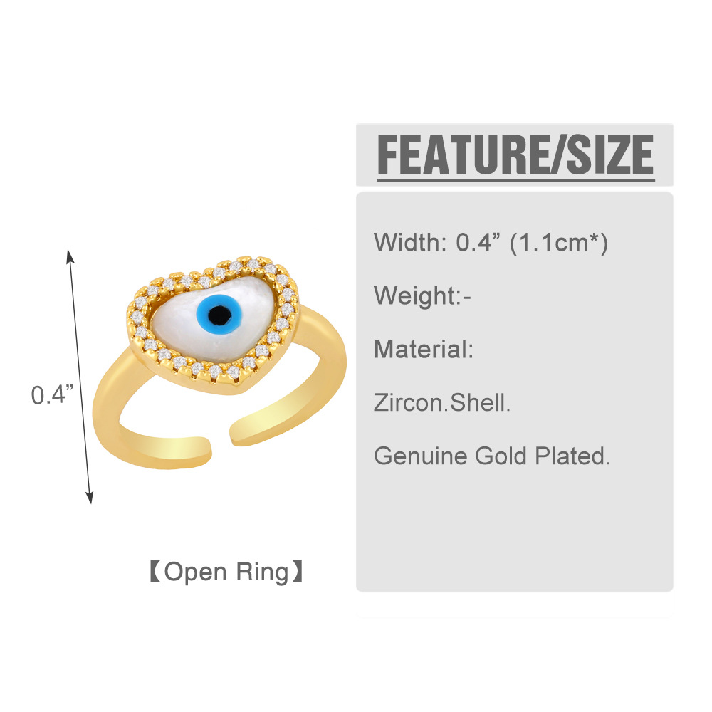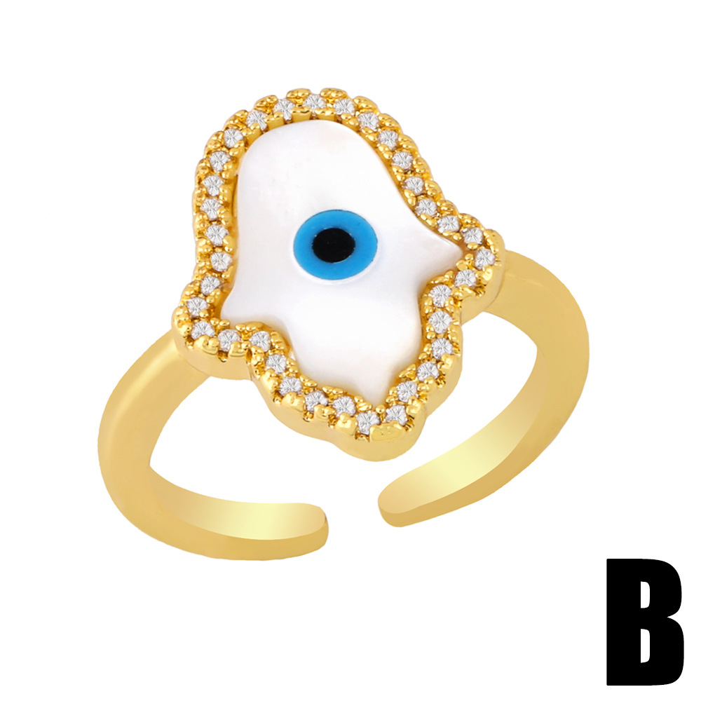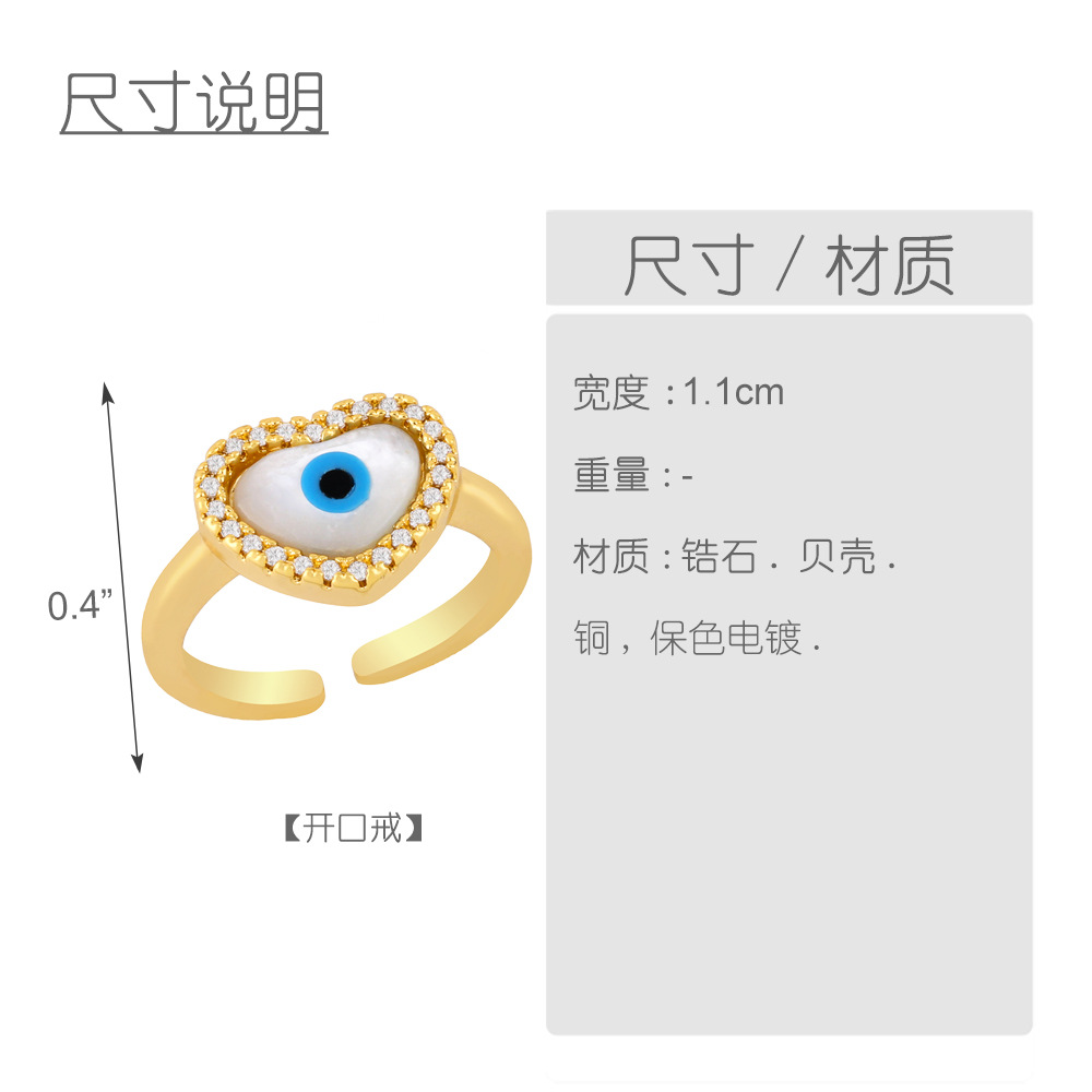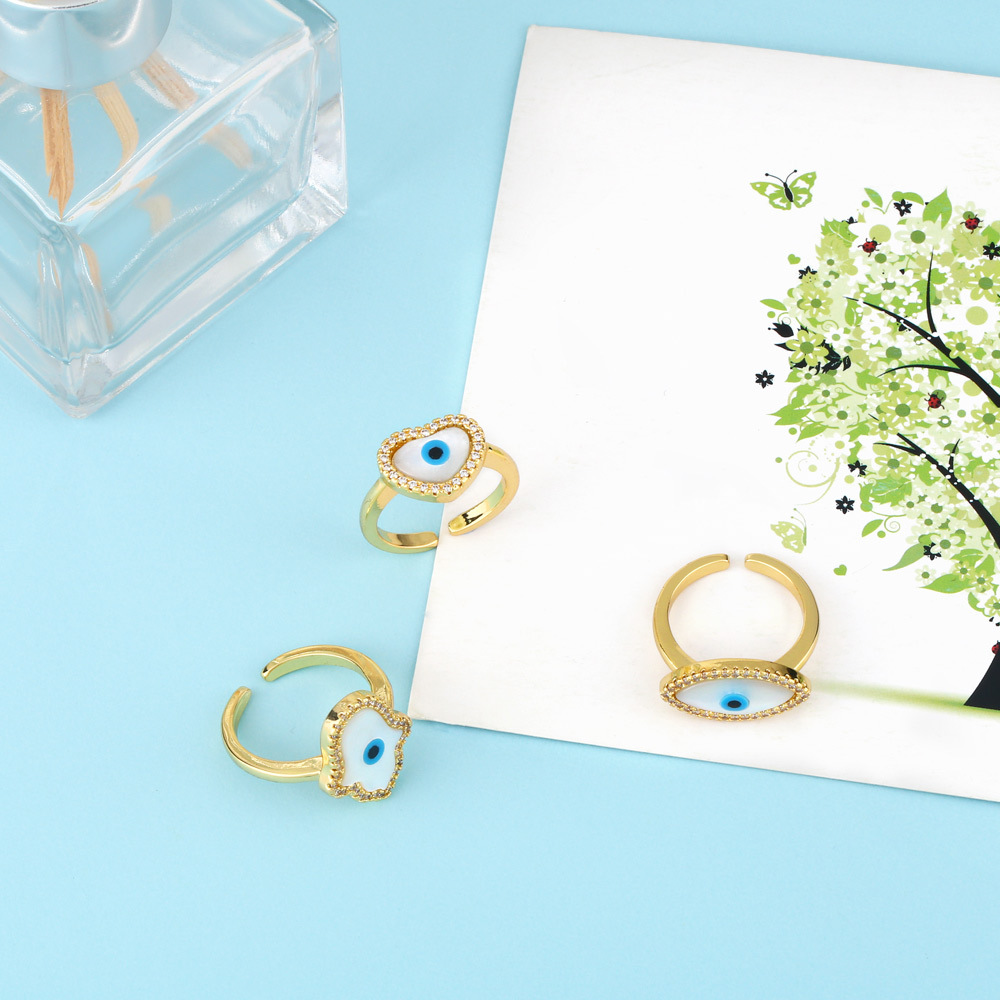 European and American jewelry geometric shell eye ring devil eye zircon open ring rin54