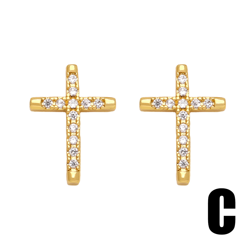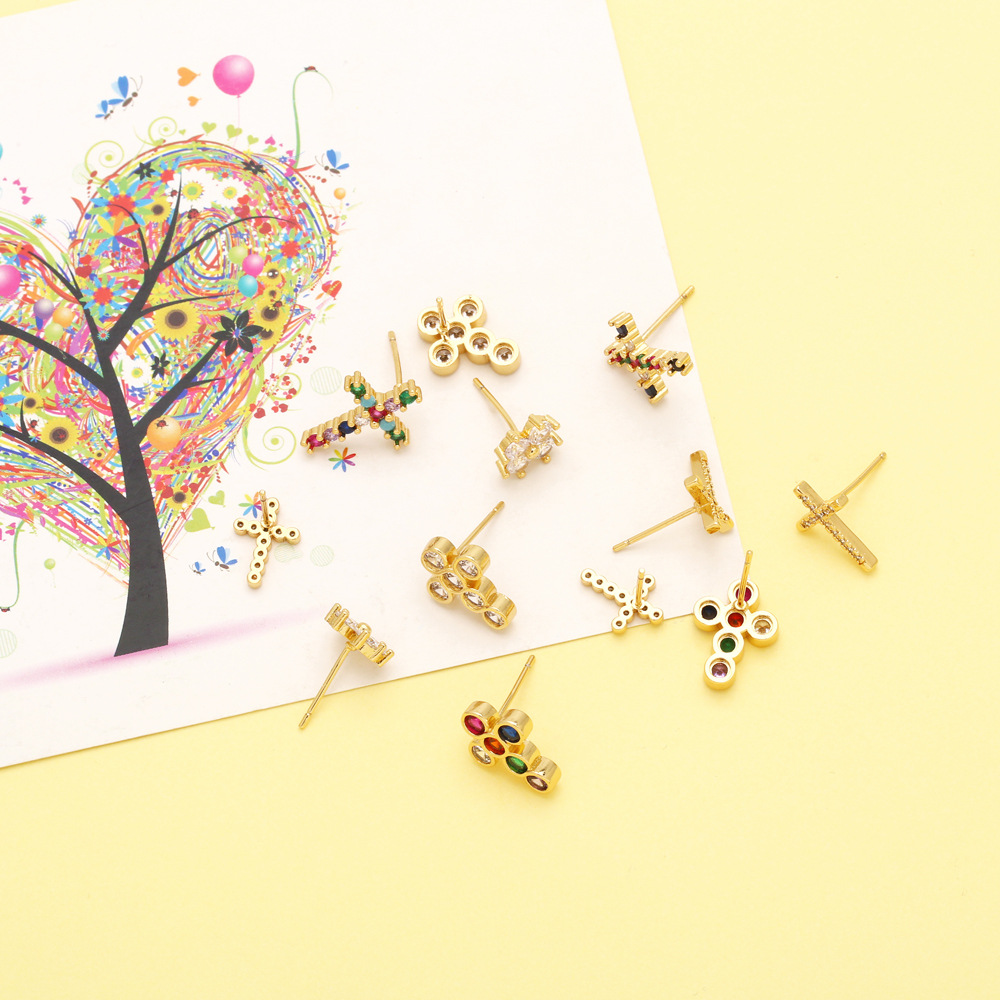European and American jewelry inlaid with colored zircon cross earrings female European and American fashion personality versatile earrings ert40
