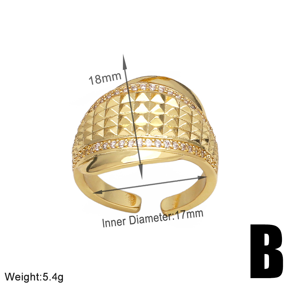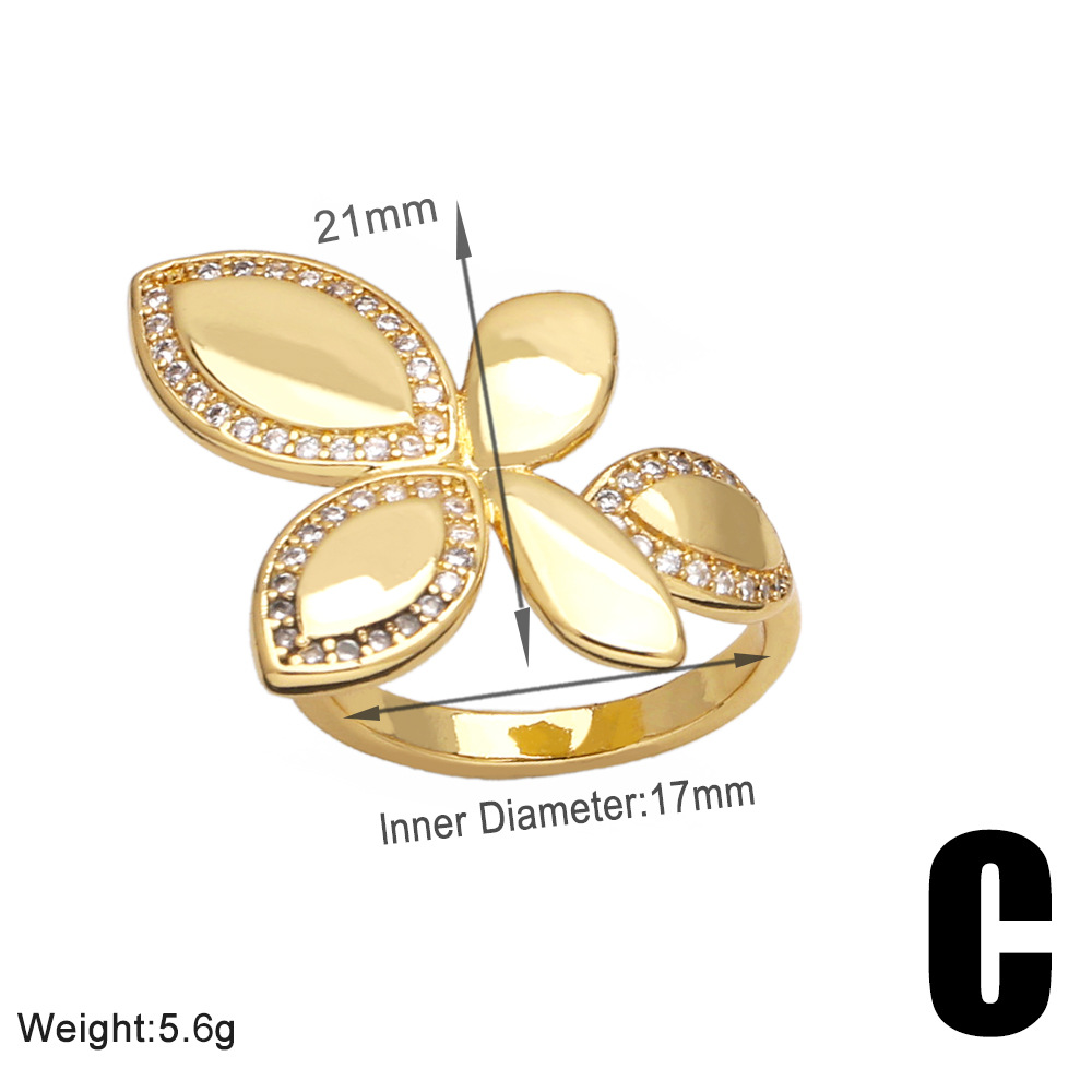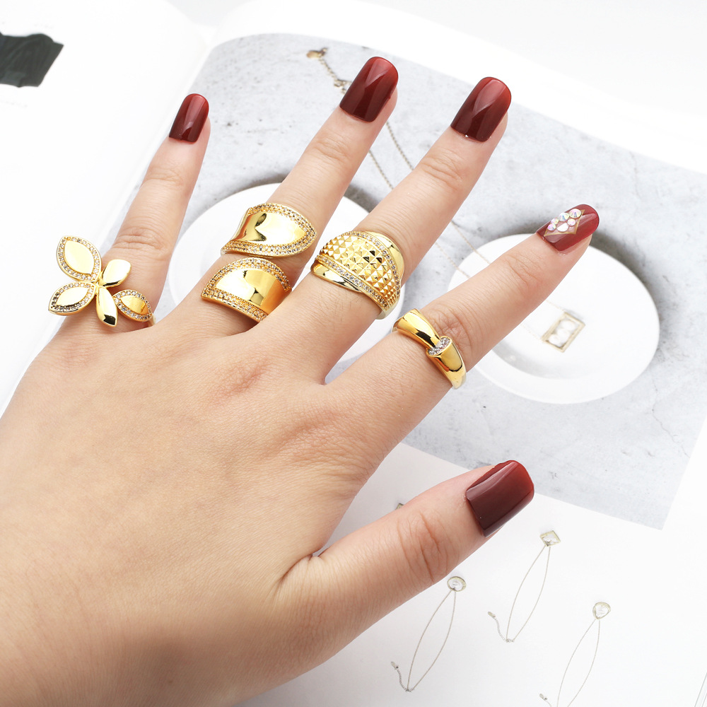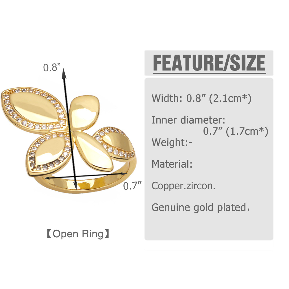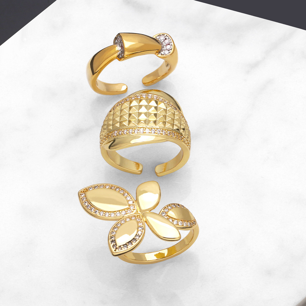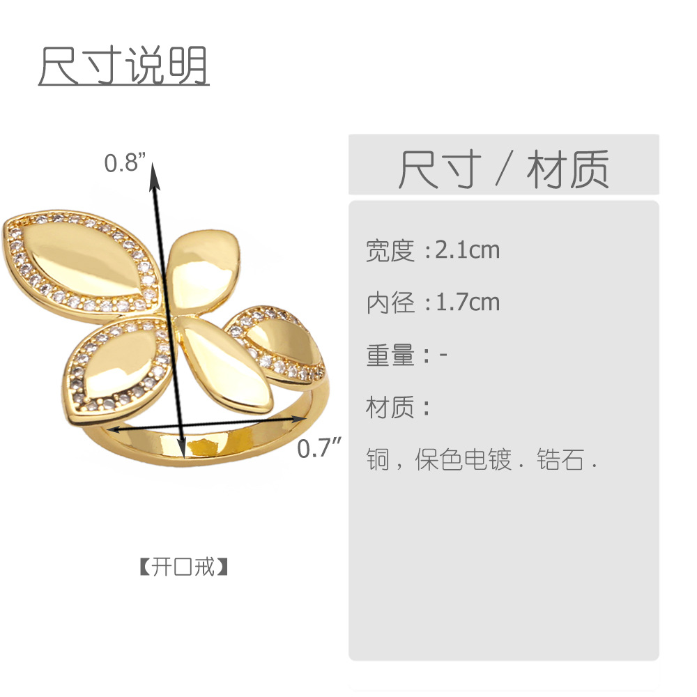 European and American jewelry inlaid zircon flower ring female personality versatile copper plated 18k open ring rij57