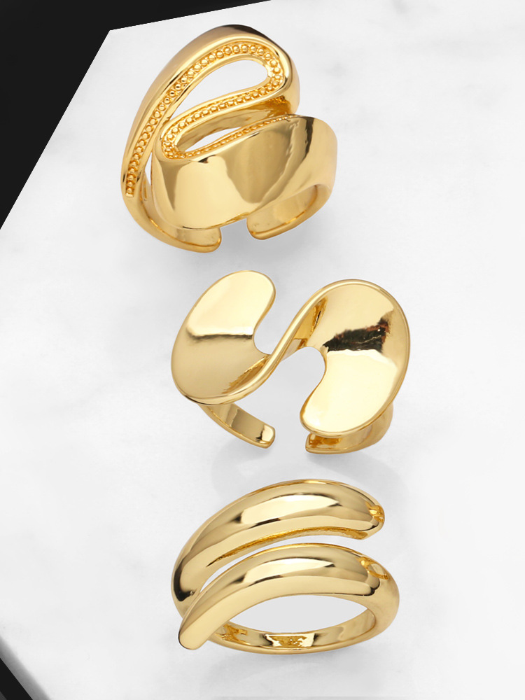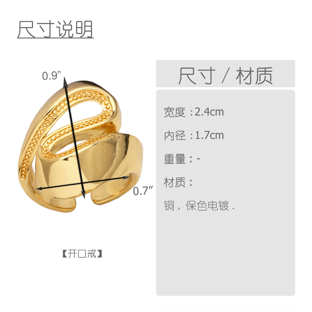 European and American jewelry irregular open ring female niche retro smooth copper plated 18k gold ring ring ris71