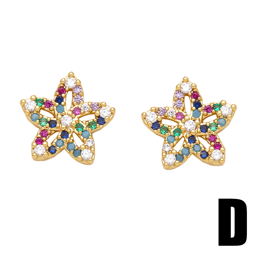 European and American jewelry love flower star earrings women's fashion personality micro-inlaid colored zircon earrings ert18