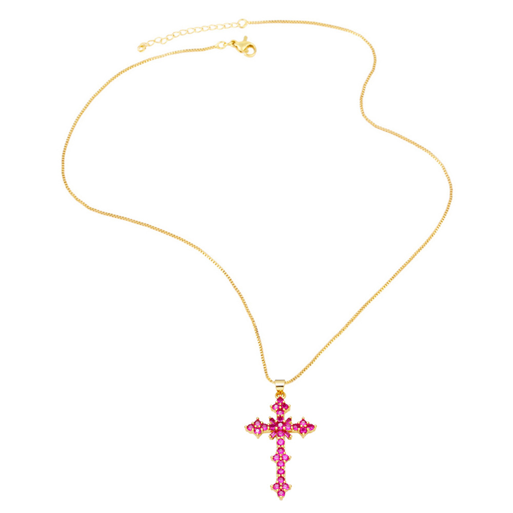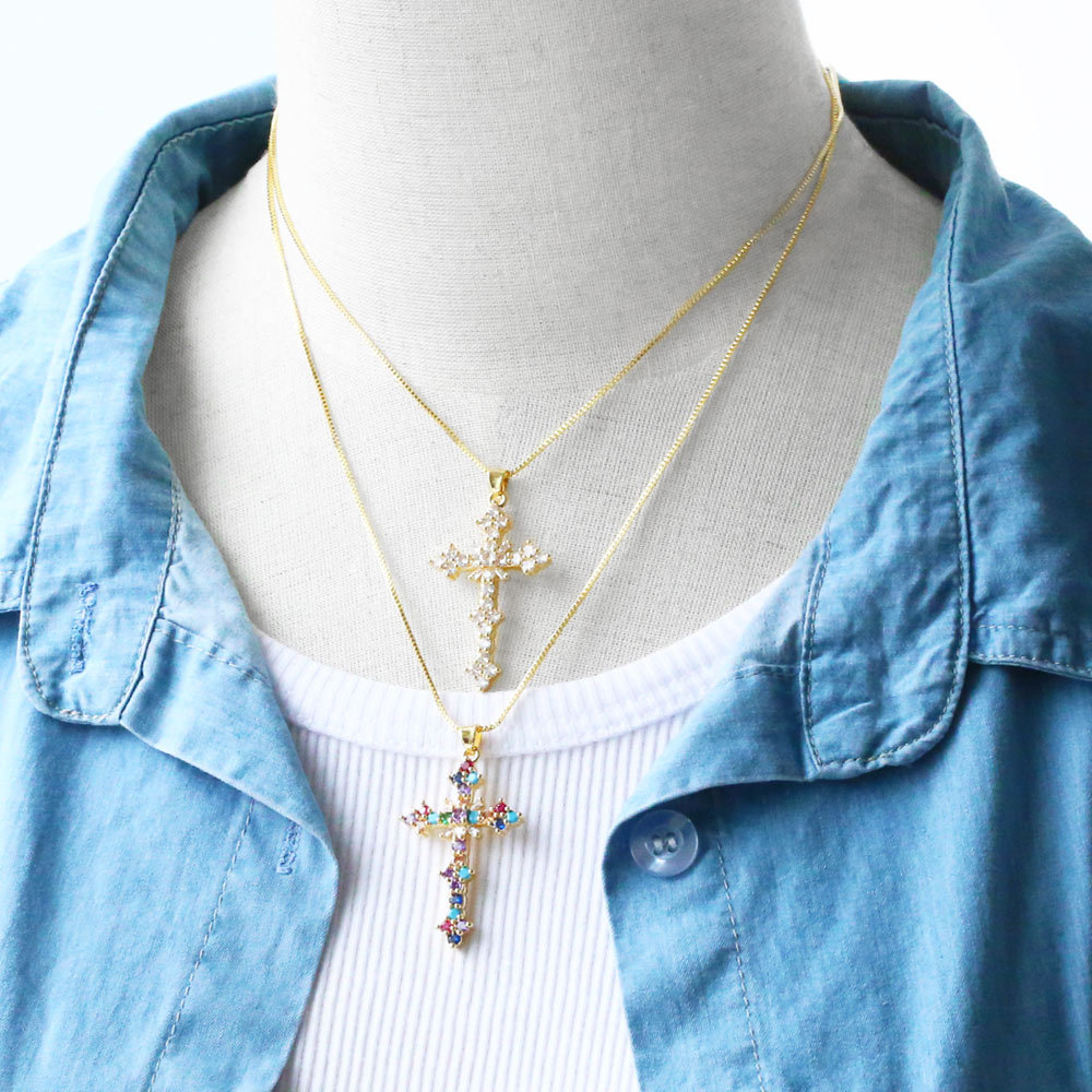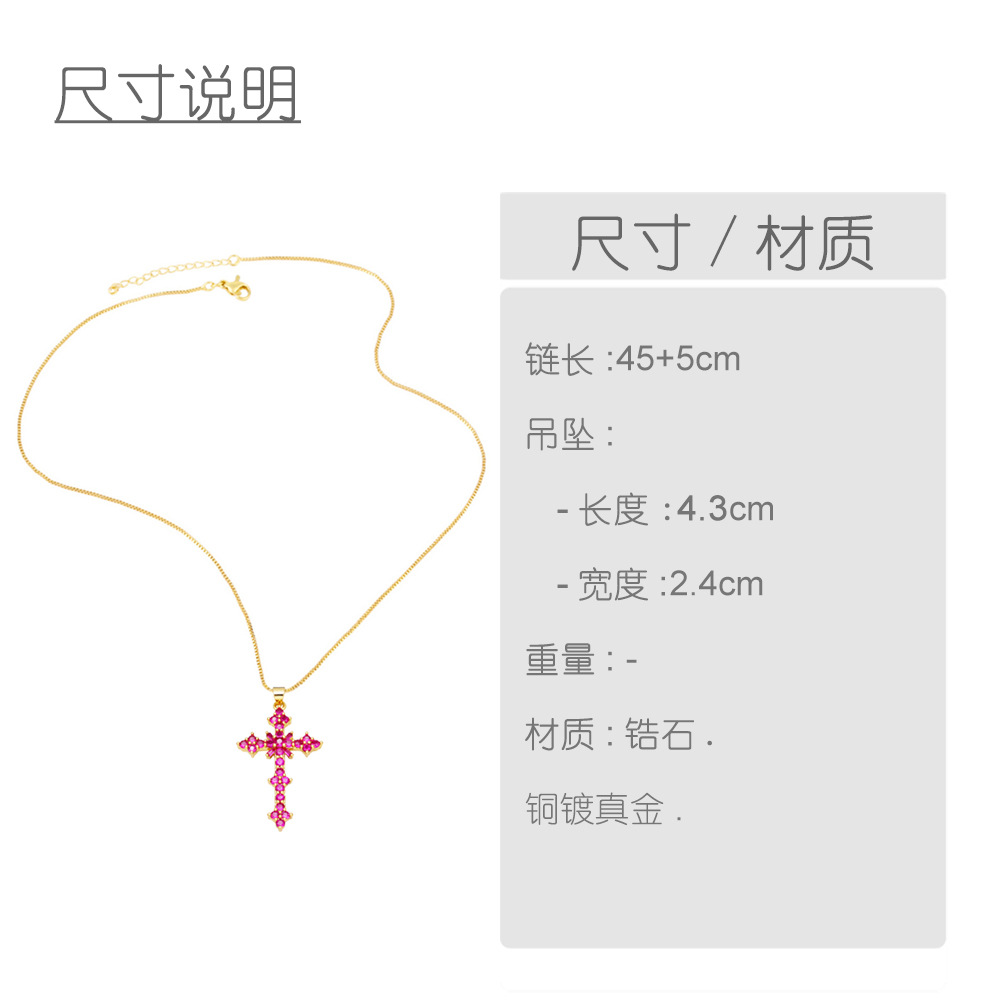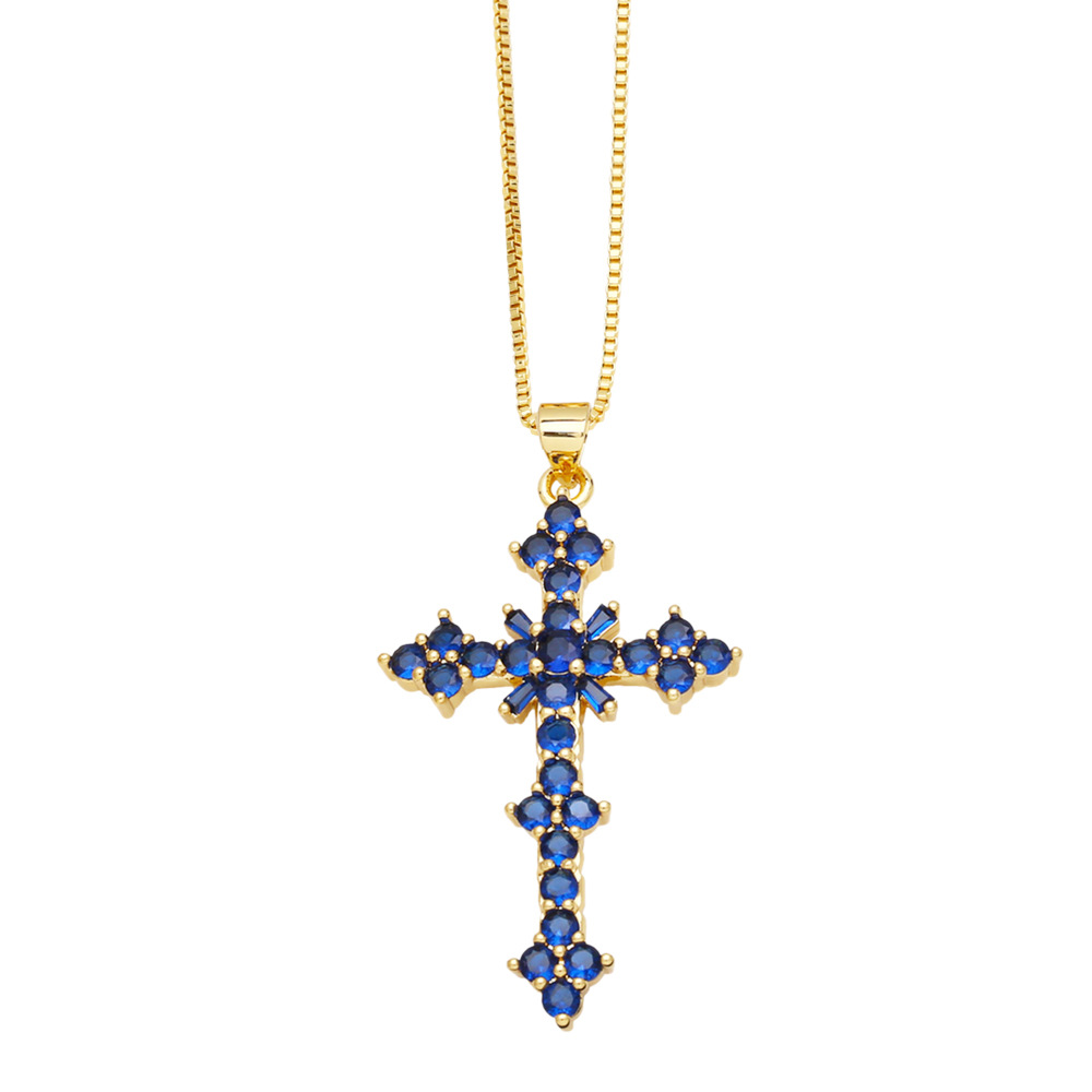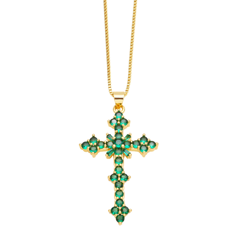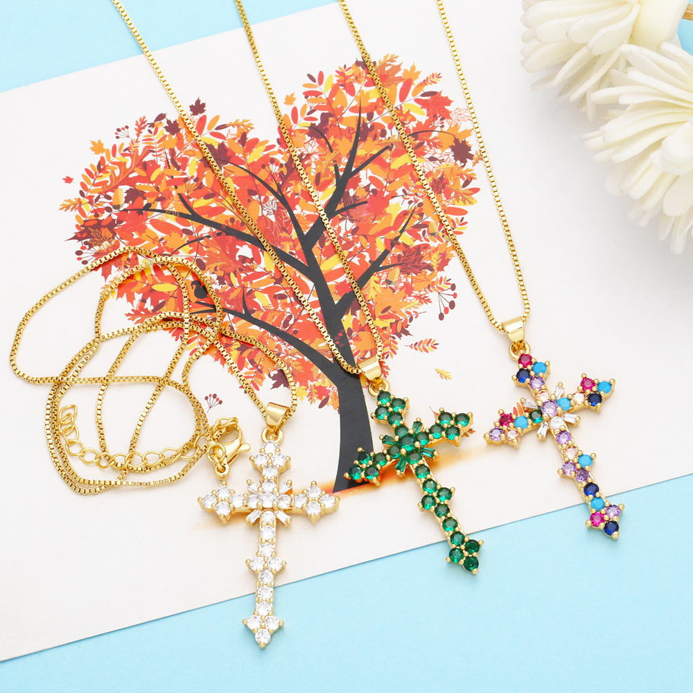 European and American jewelry micro-inlaid colored zircon cross pendant necklace hip hop retro clavicle chain nks87