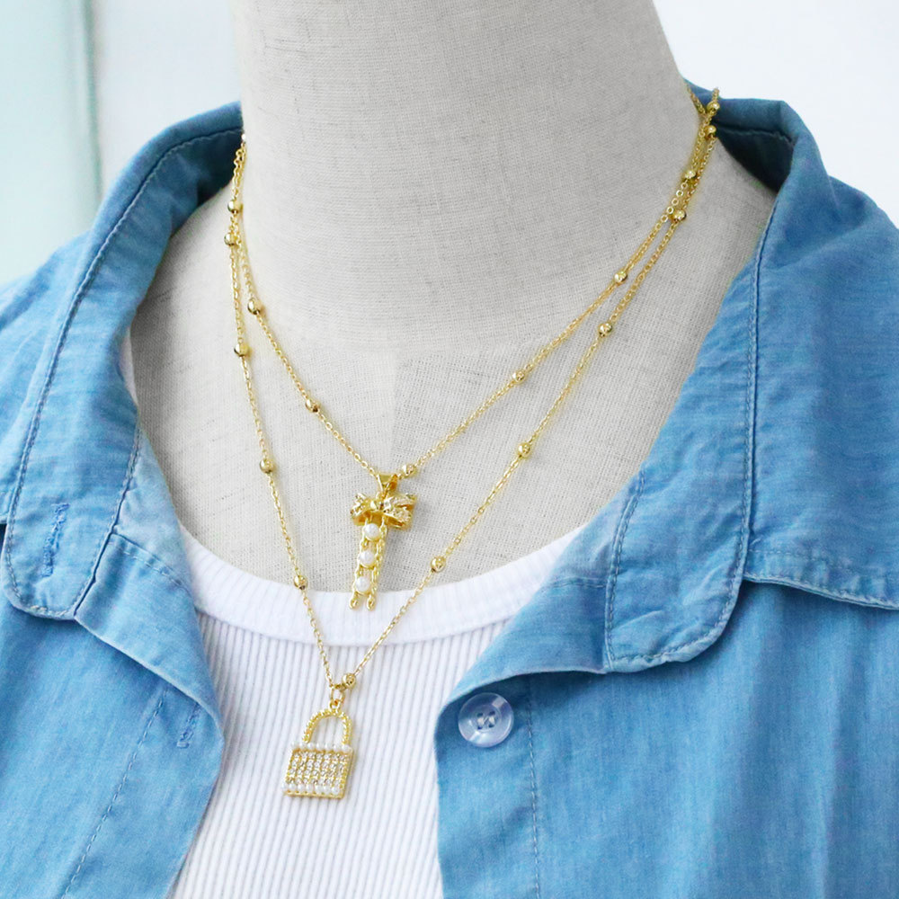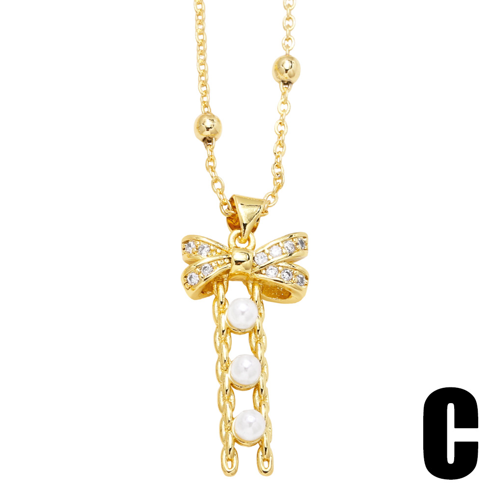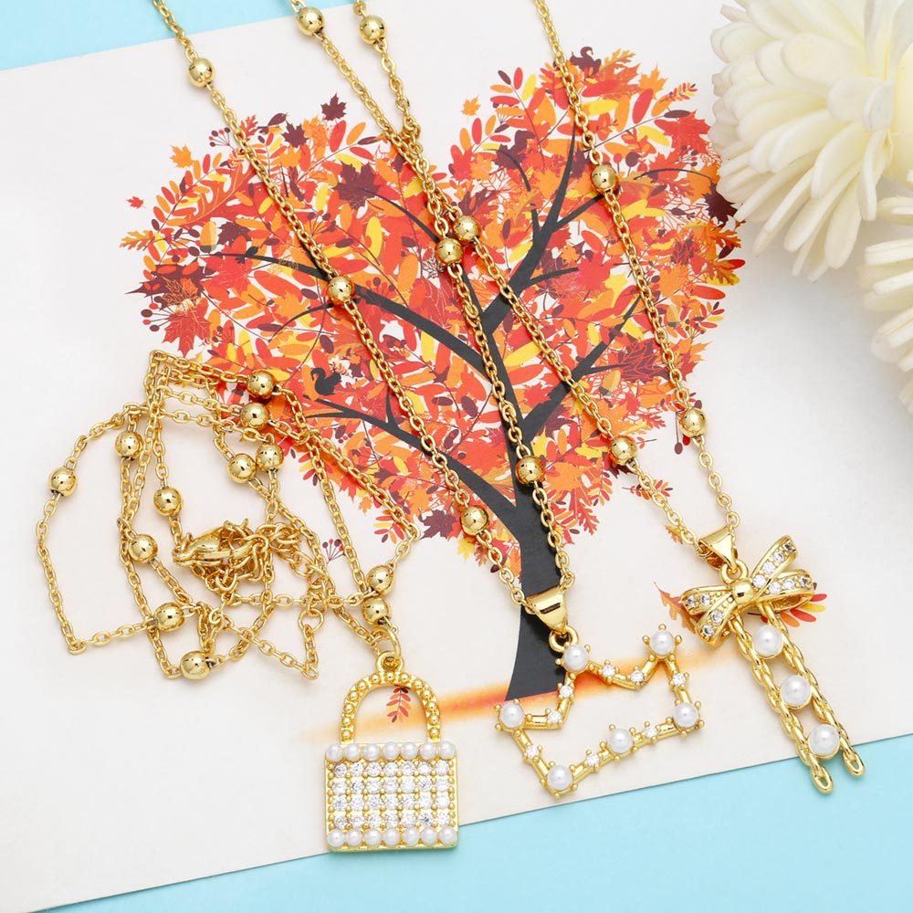European and American jewelry pearl necklace bow clavicle chain female personality niche light luxury crown pendant wholesale nkp41