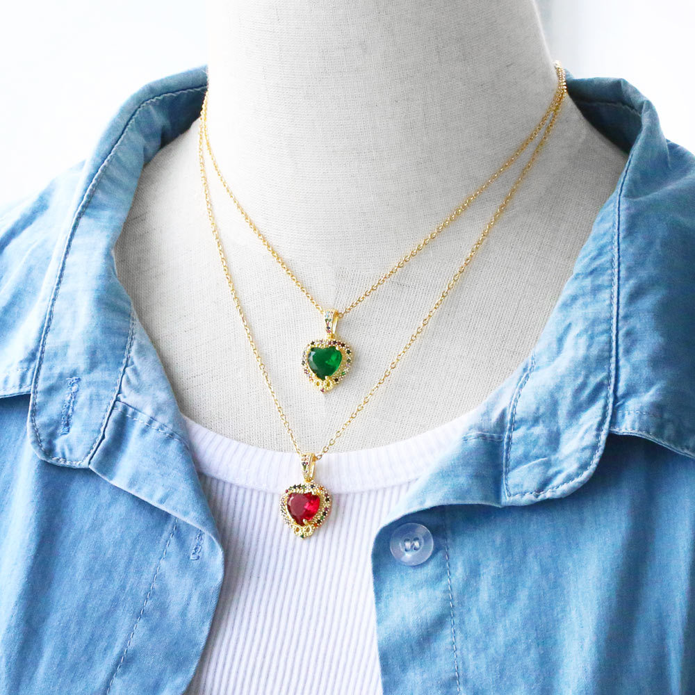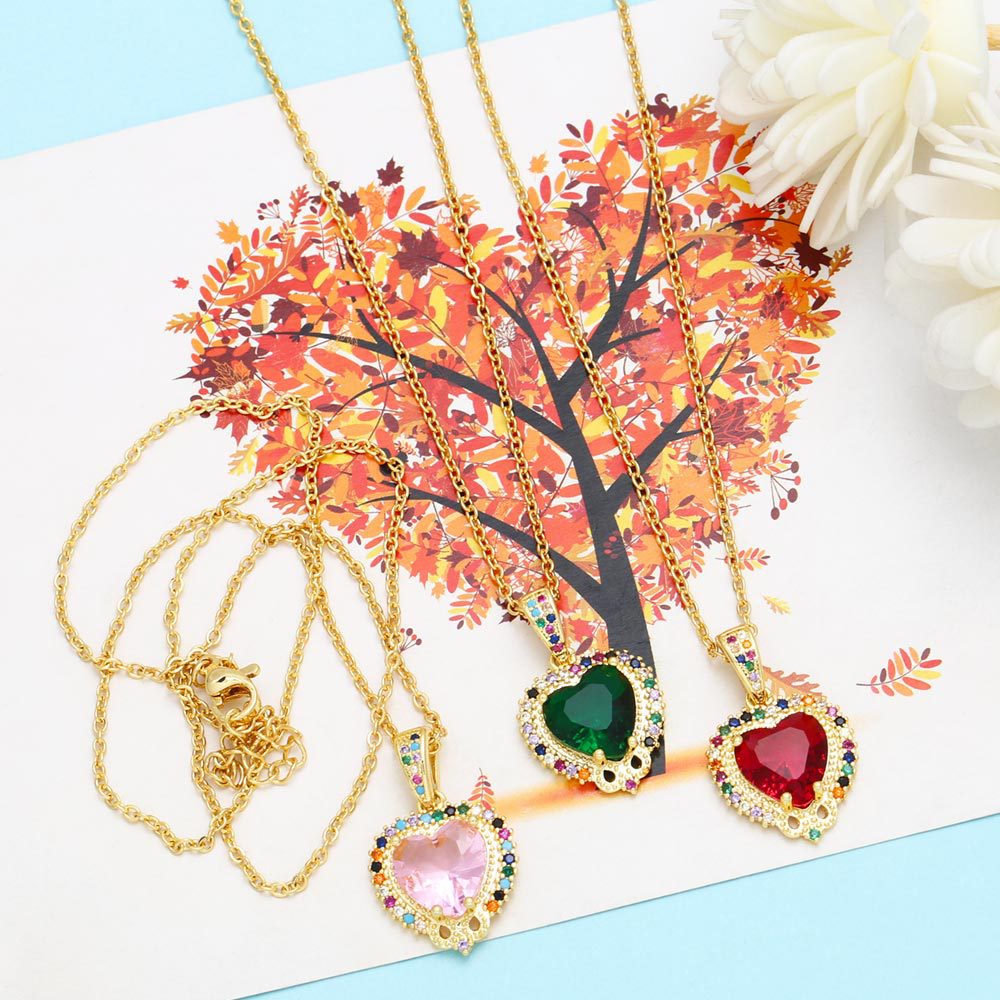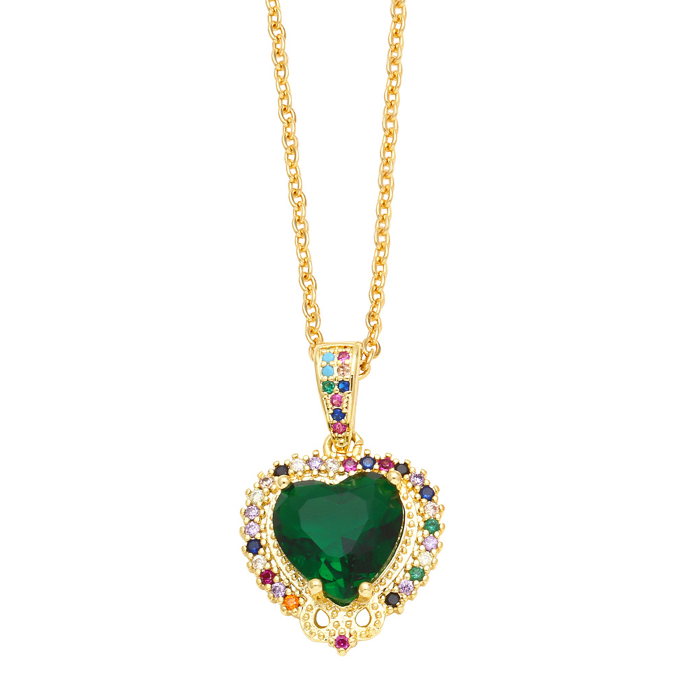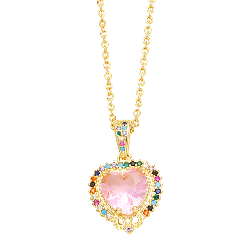 European and American jewelry personality fashion micro-inlaid colored zircon love necklace female heart-shaped clavicle chain nkr16
