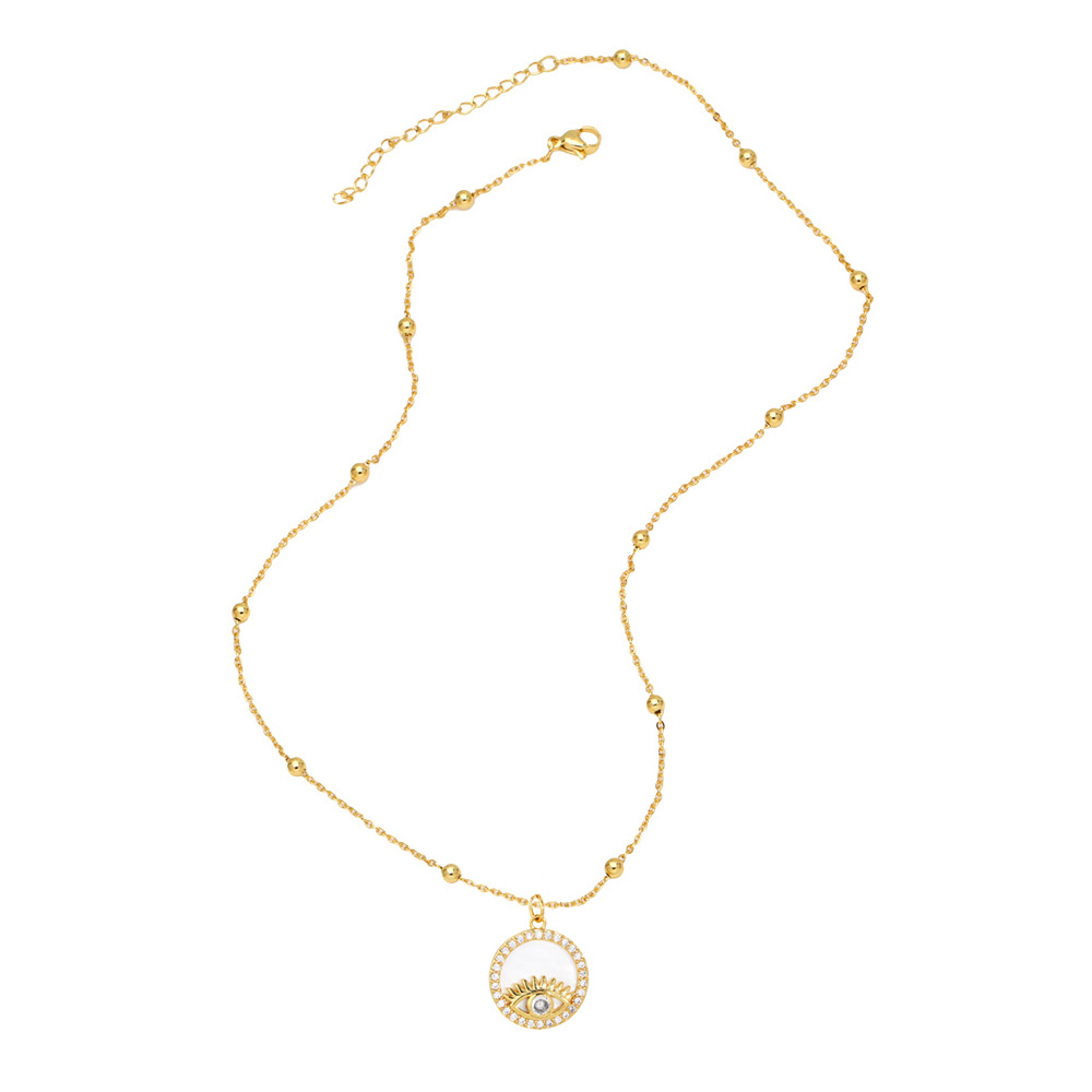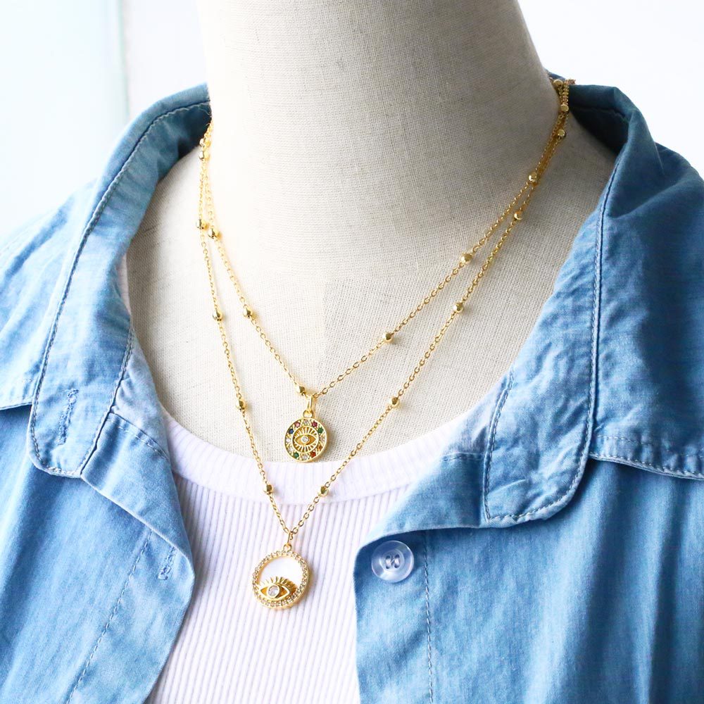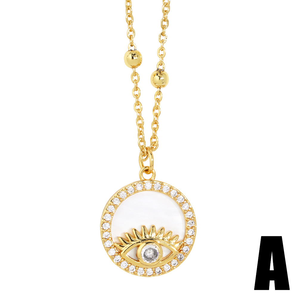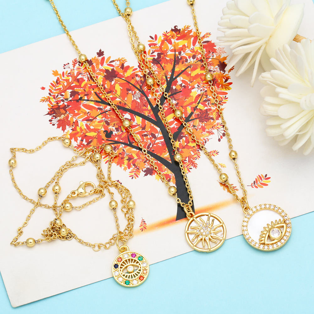 European and American jewelry personality inlaid colored zirconium devil eye necklace female round brand sun pendant necklace nkp79