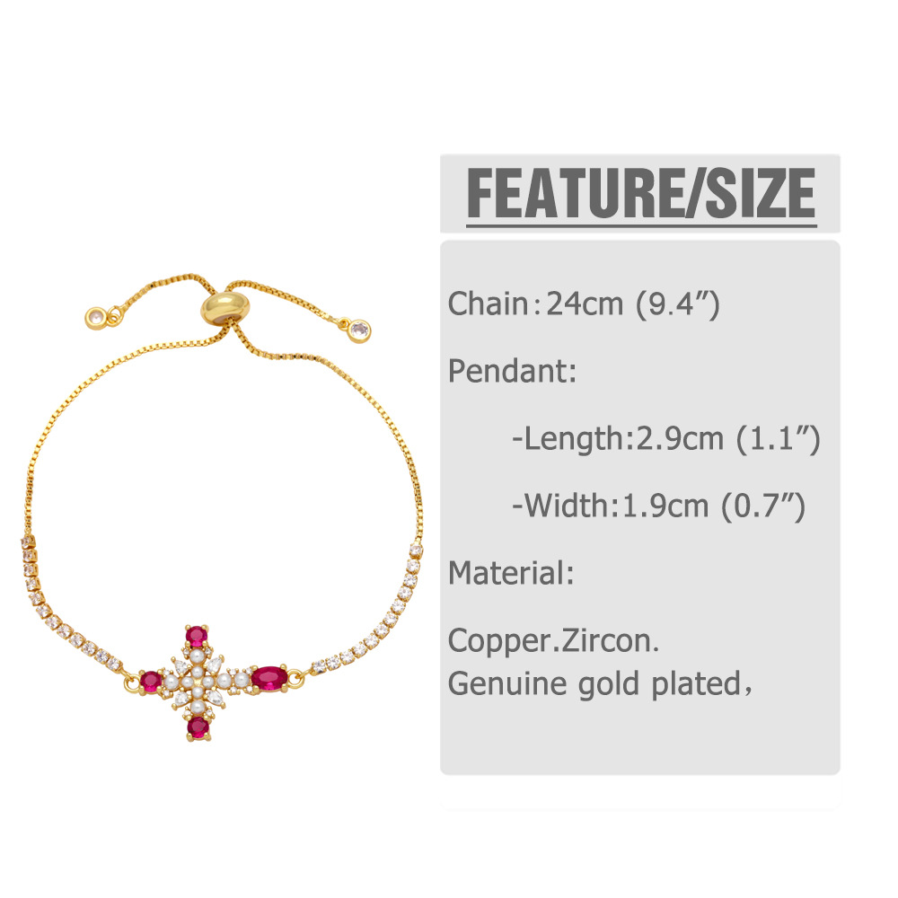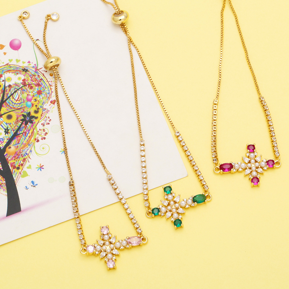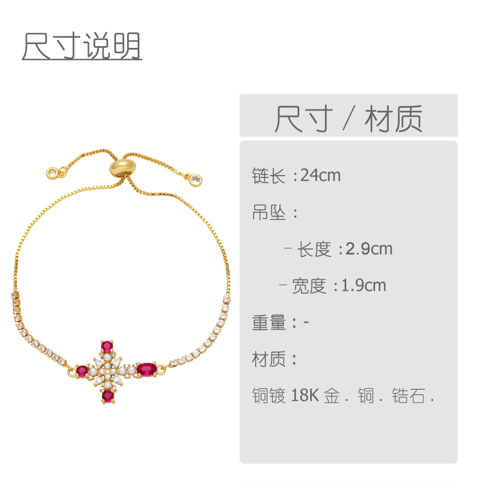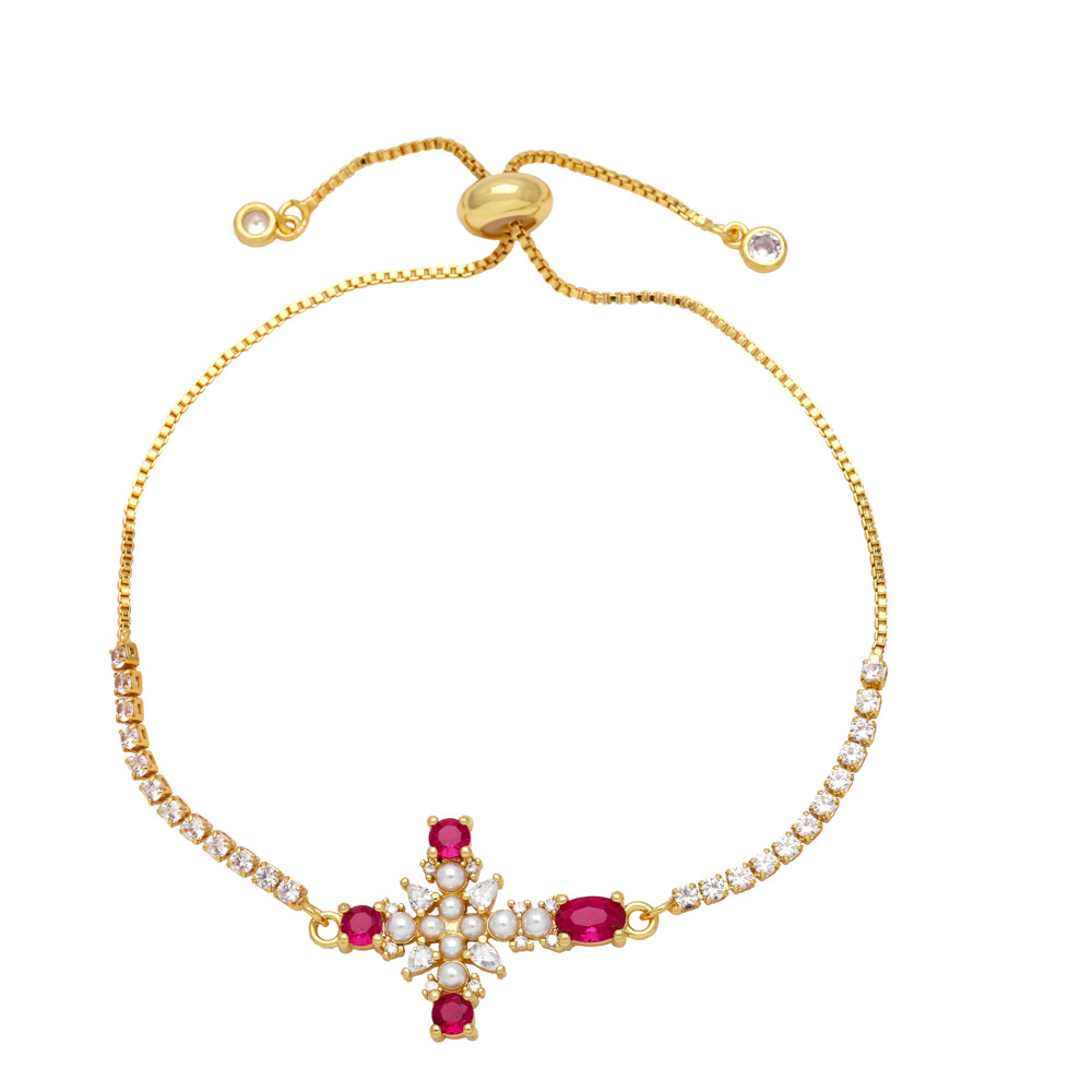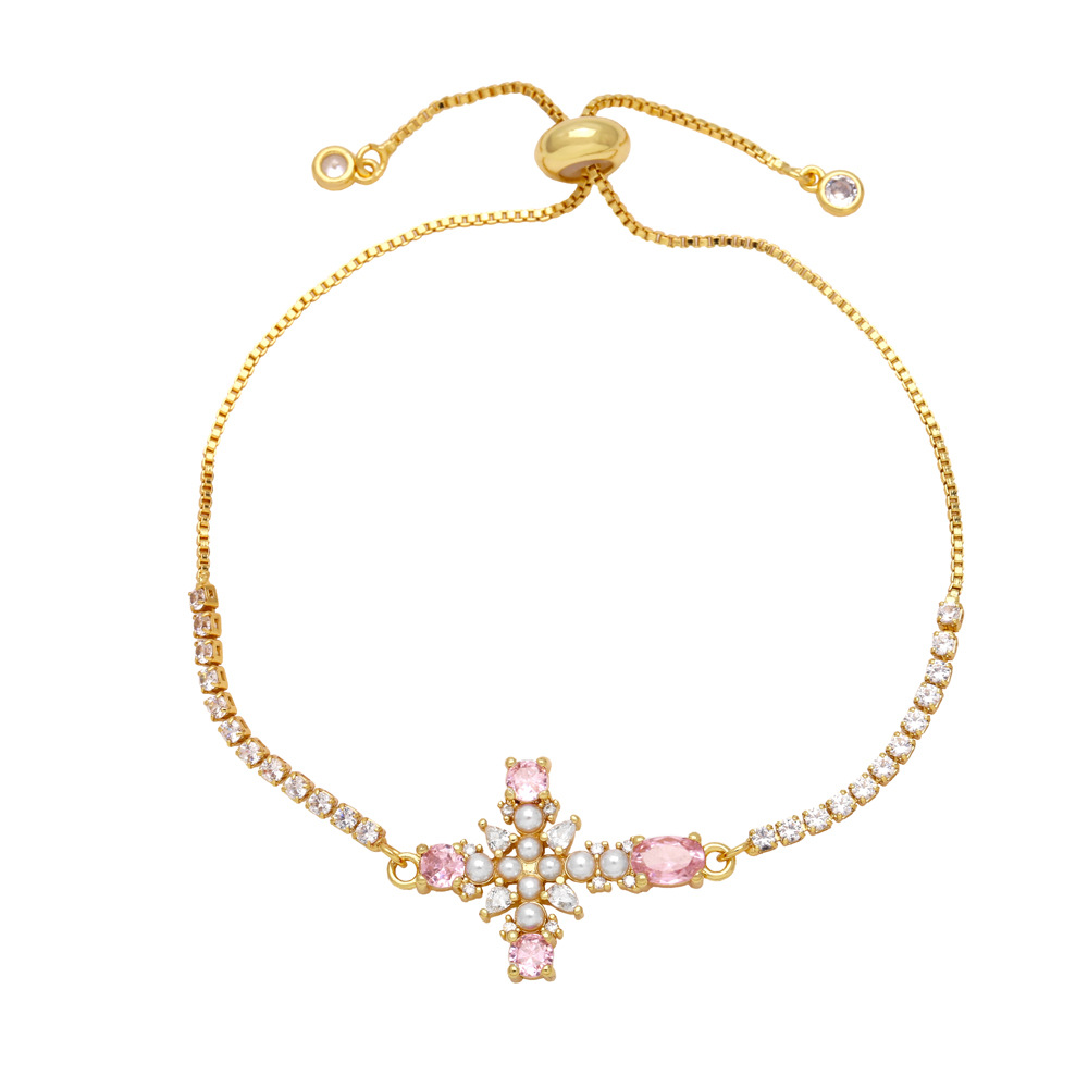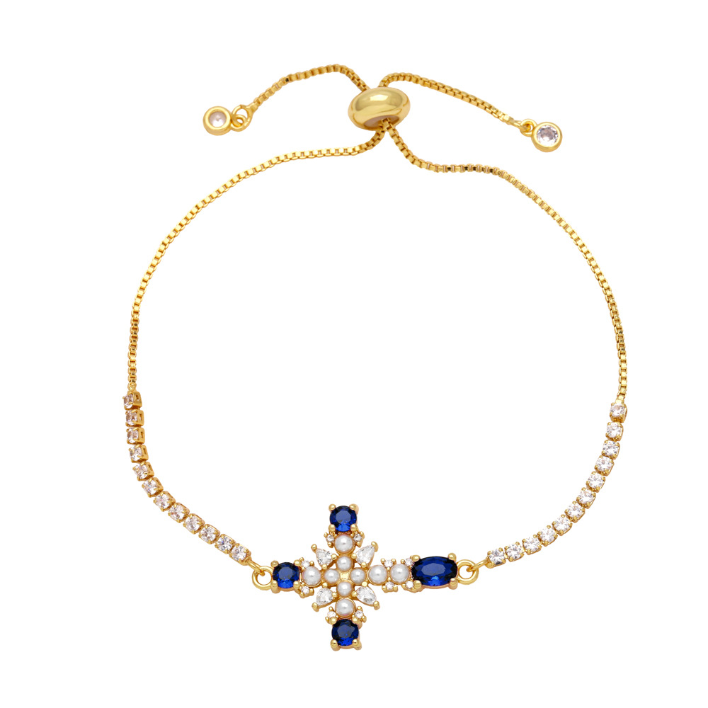 European and American jewelry personality retro micro-inlaid zircon pearl cross bracelet temperament versatile jewelry brk09