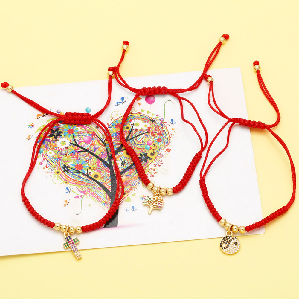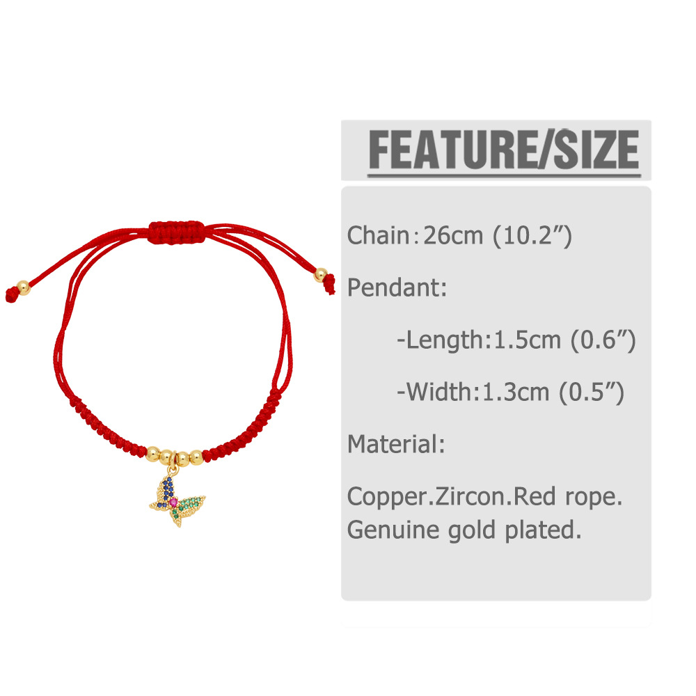 European and American jewelry personalized micro-inlaid colored zircon butterfly tree of life love pendant red rope bracelet brc82