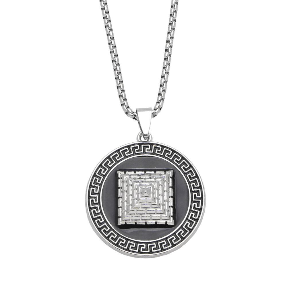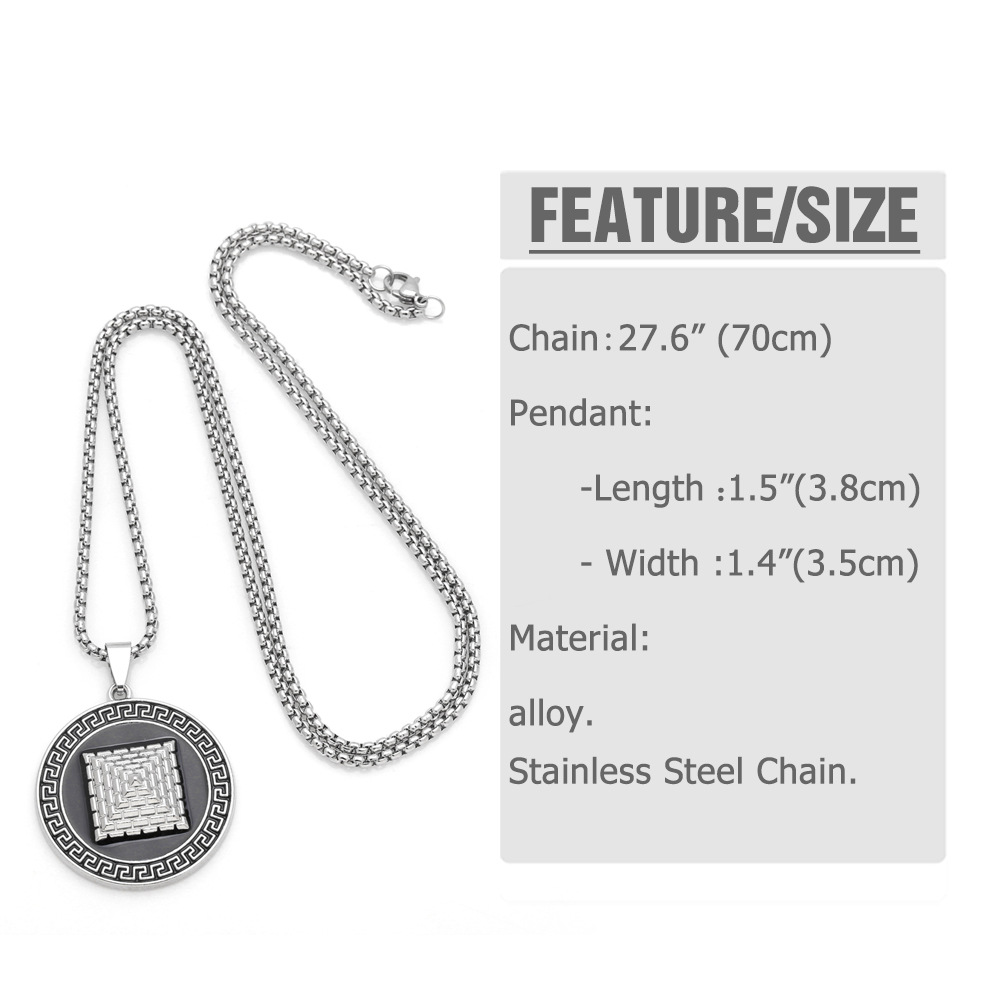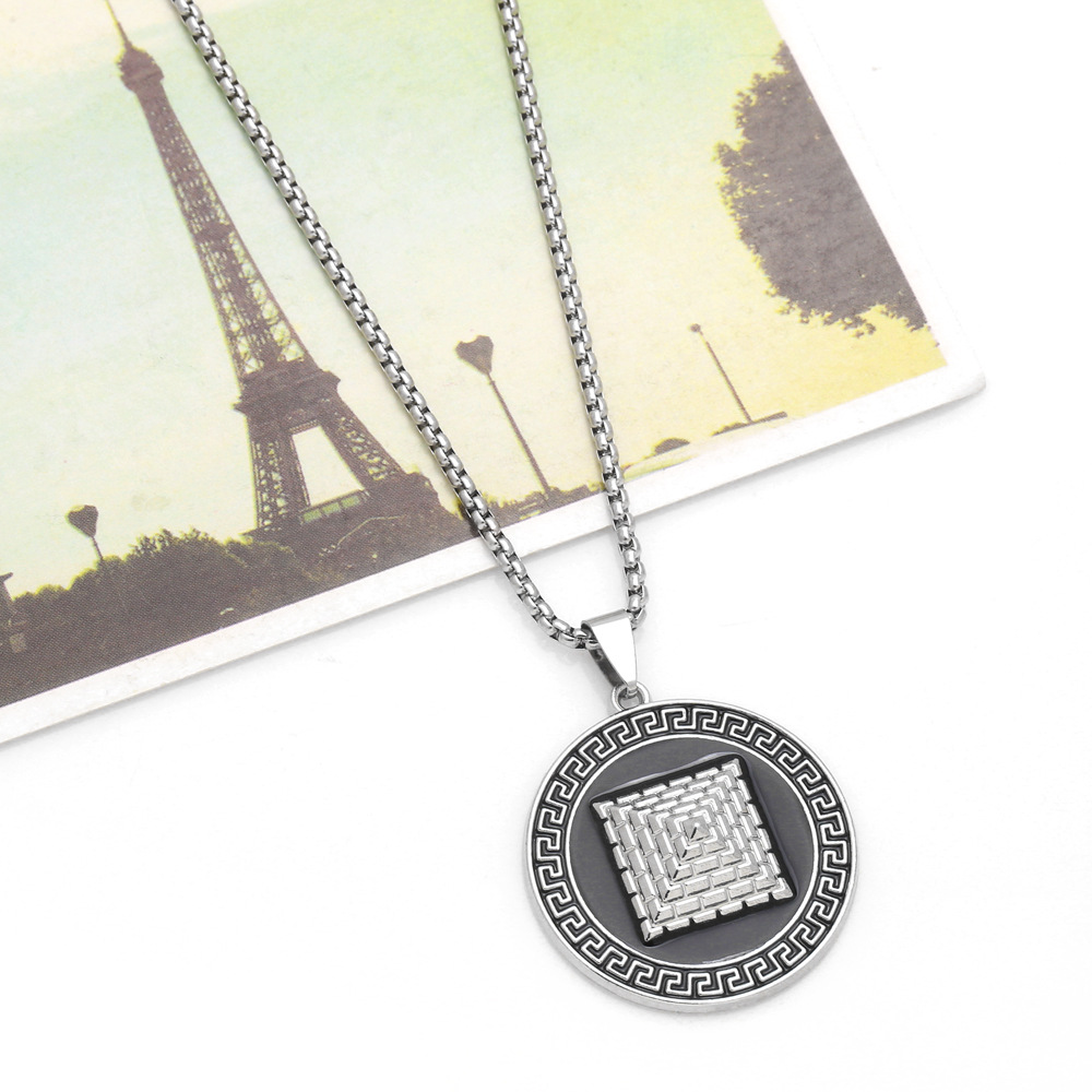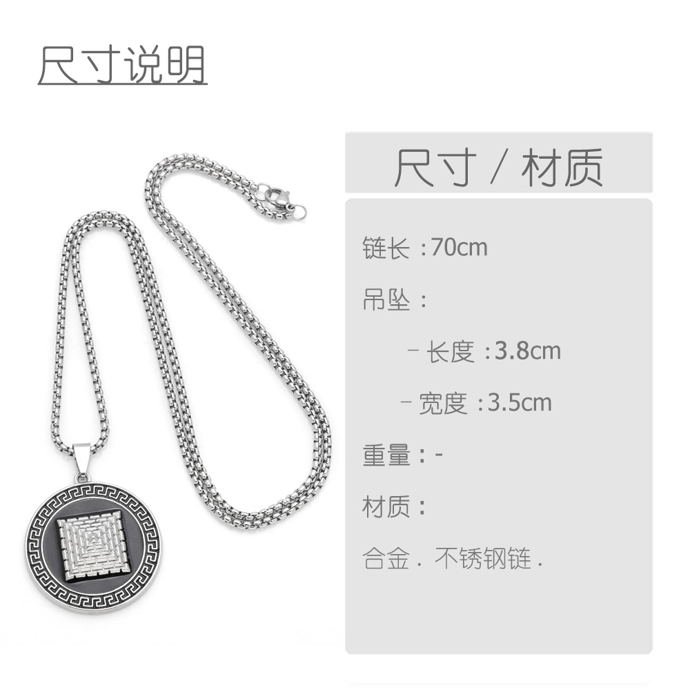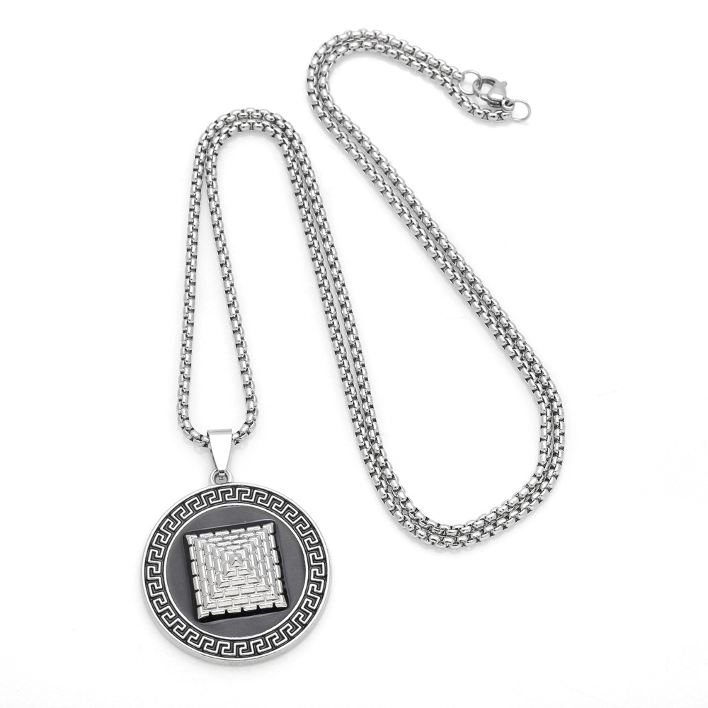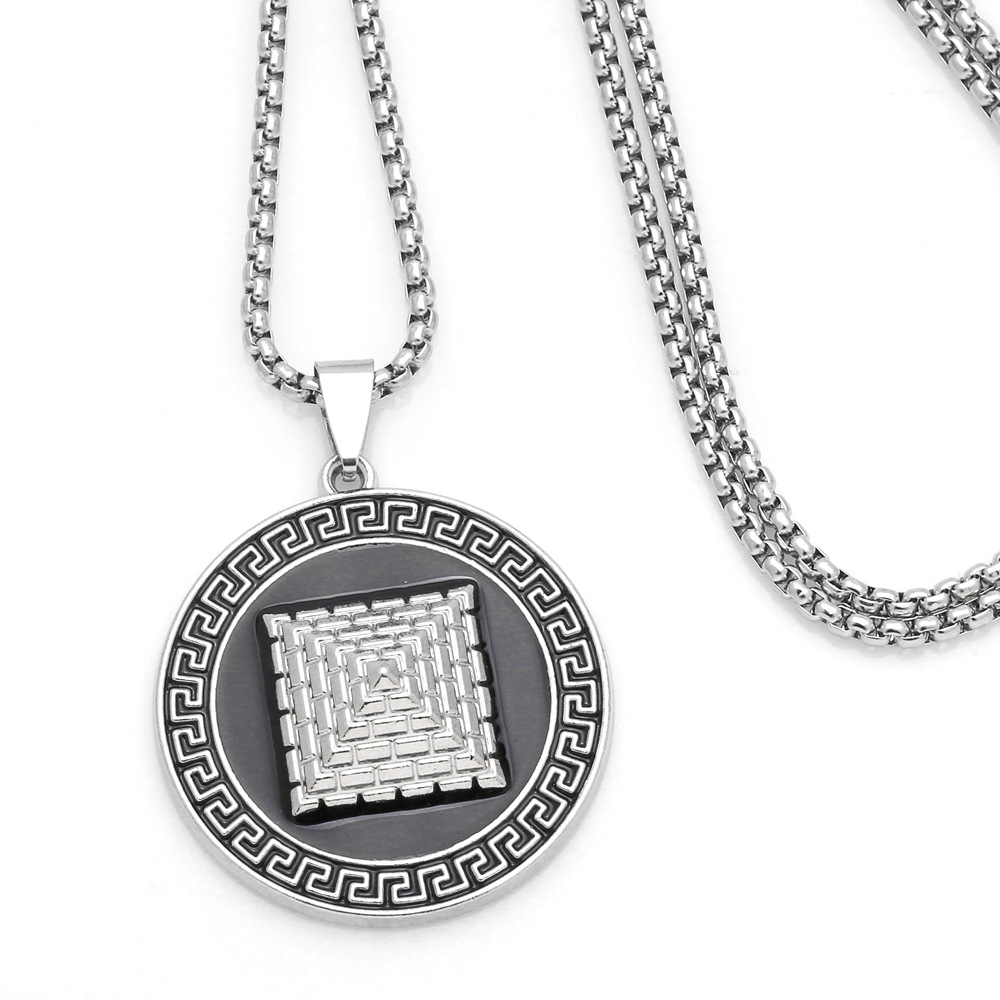 European and American jewelry punk retro round card pyramid pendant necklace hip hop cool sweater chain nka061