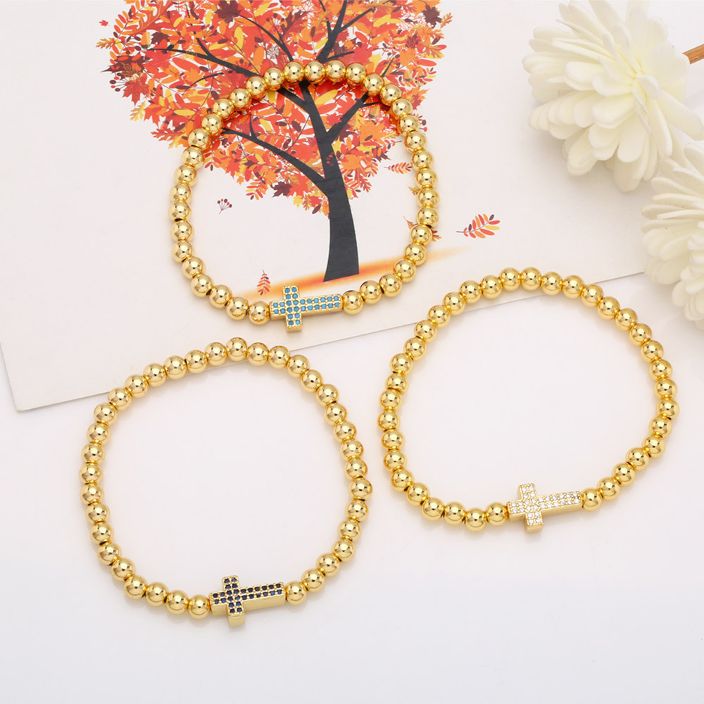 European and American jewelry retro braided beaded geometric hand jewelry niche simple cross elastic bracelet brg66