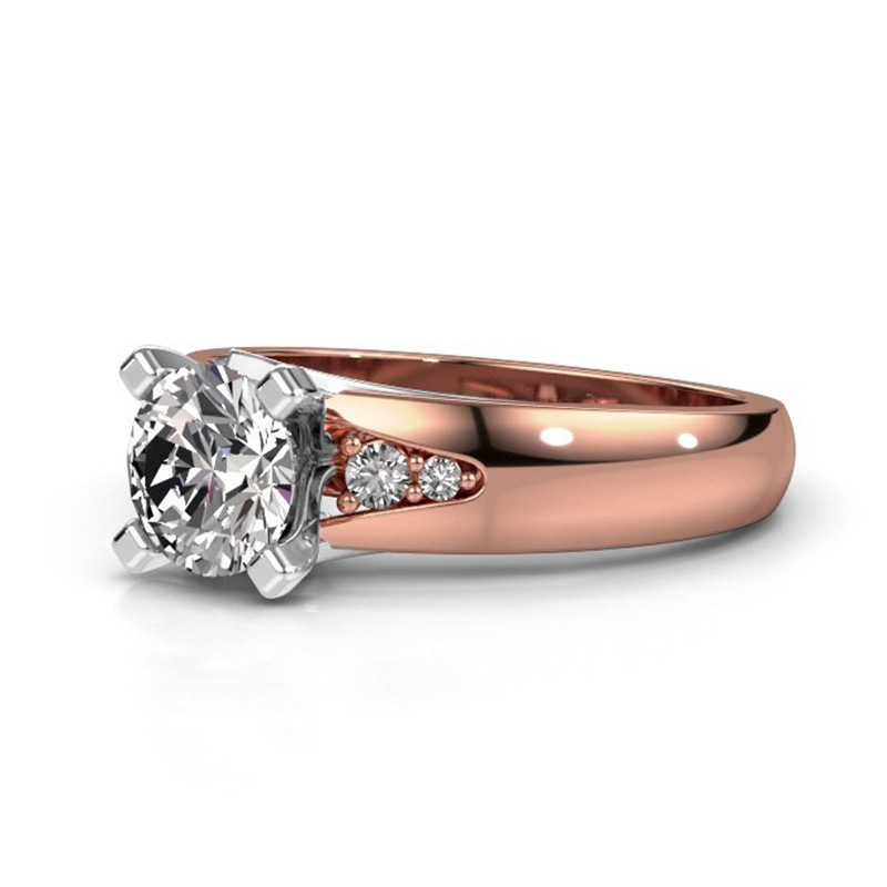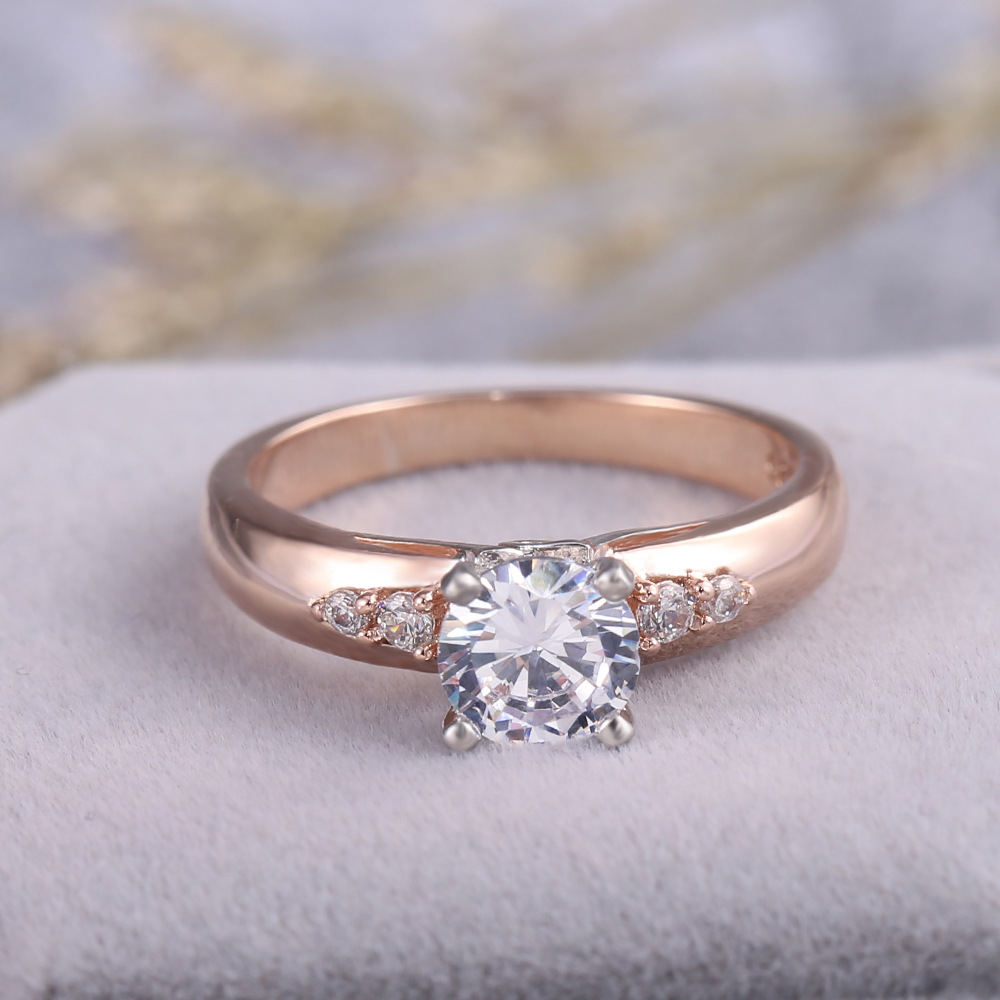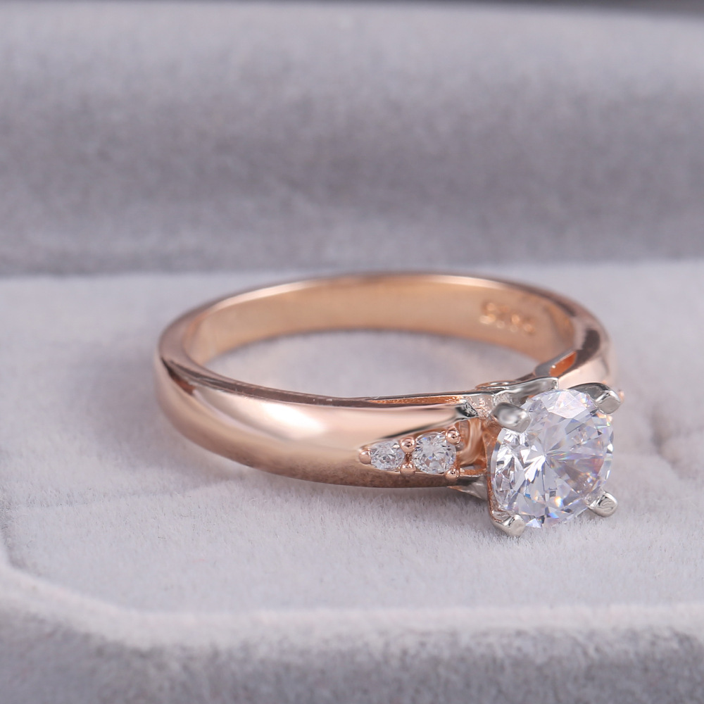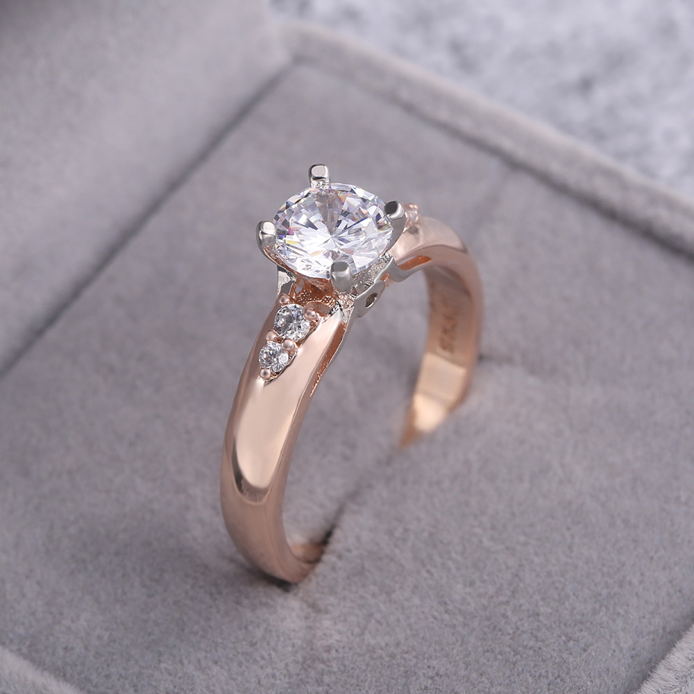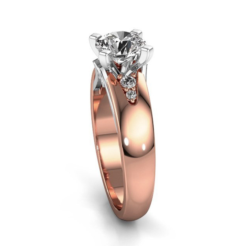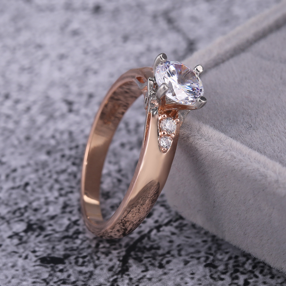 European and American jewelry rose gold four-claw inlaid zirconium diamond couple ring real gold two-tone color preservation